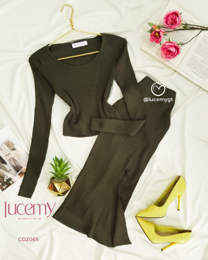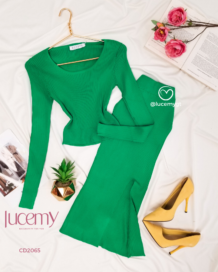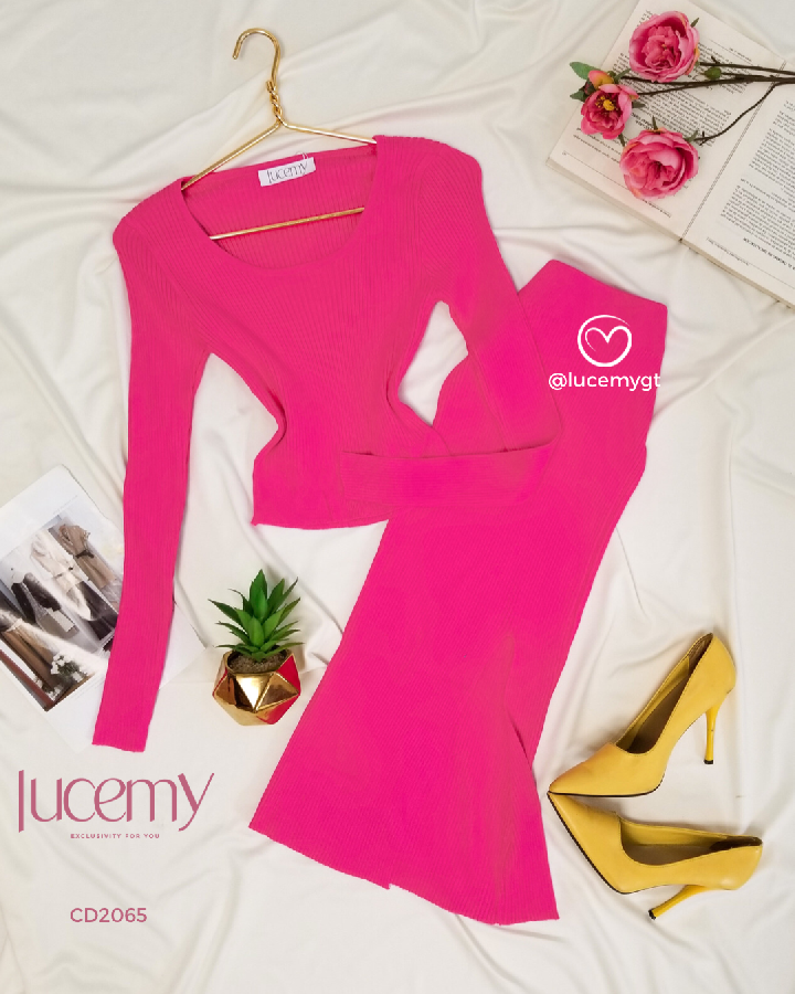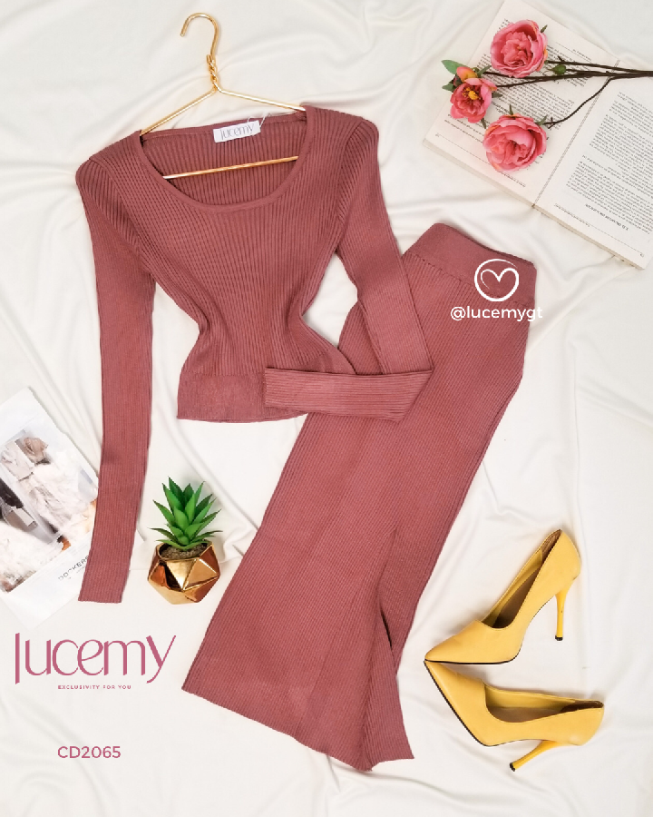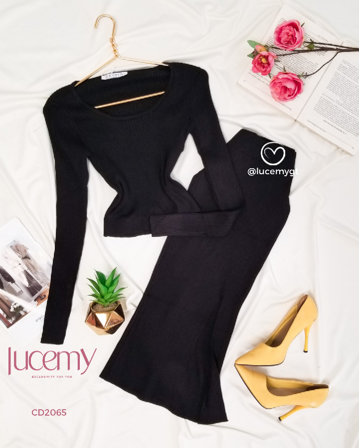 Descripción: Blusa canalada, cuello redondo, manga larga; falda cintura alta, abertura en la parte de enfrente, muy cómodo de usar