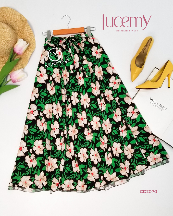 Descripción: Falda de flores, con elástico en la cintura, incluye agujeta ajustable. Promoción si llevas dos faldas a solo por Q185.00