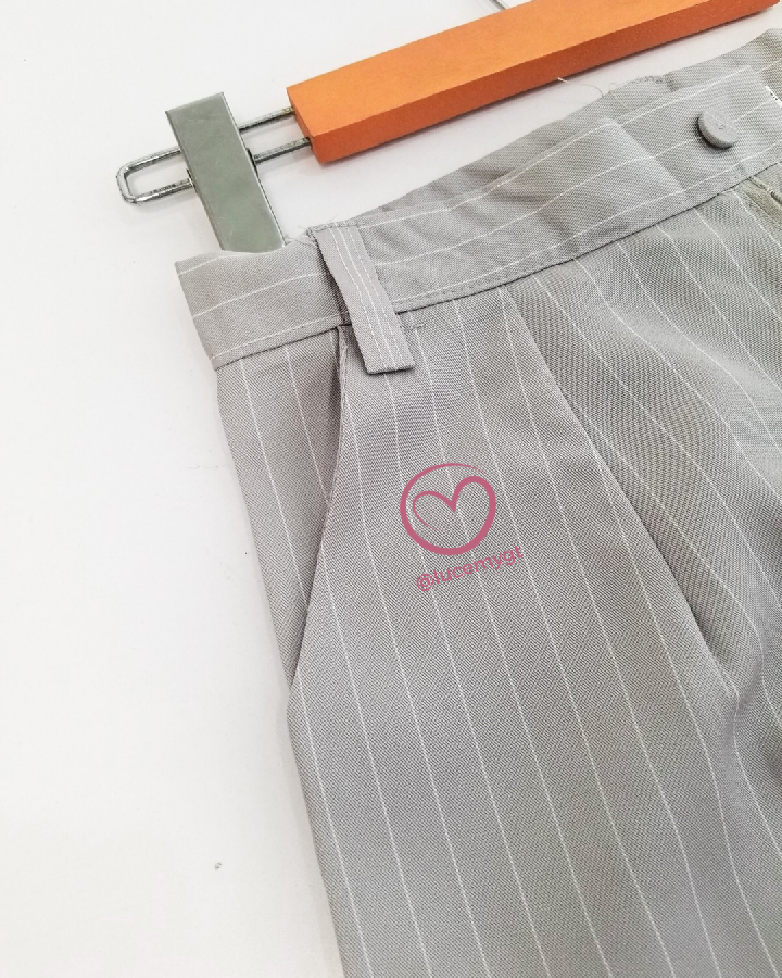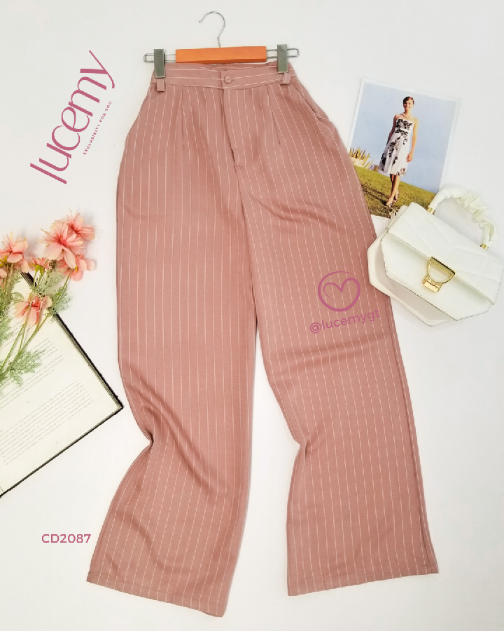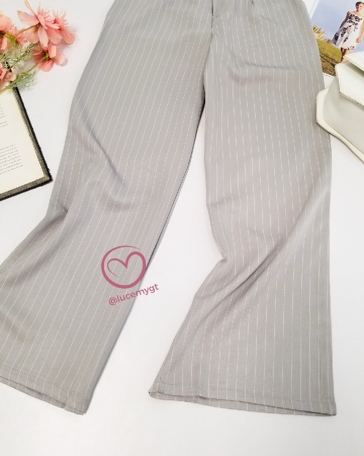 Descripción: Pantalón de Líneas, cintura alta, botón y cremallera en la parte de adelante, bolsillos a los lados.