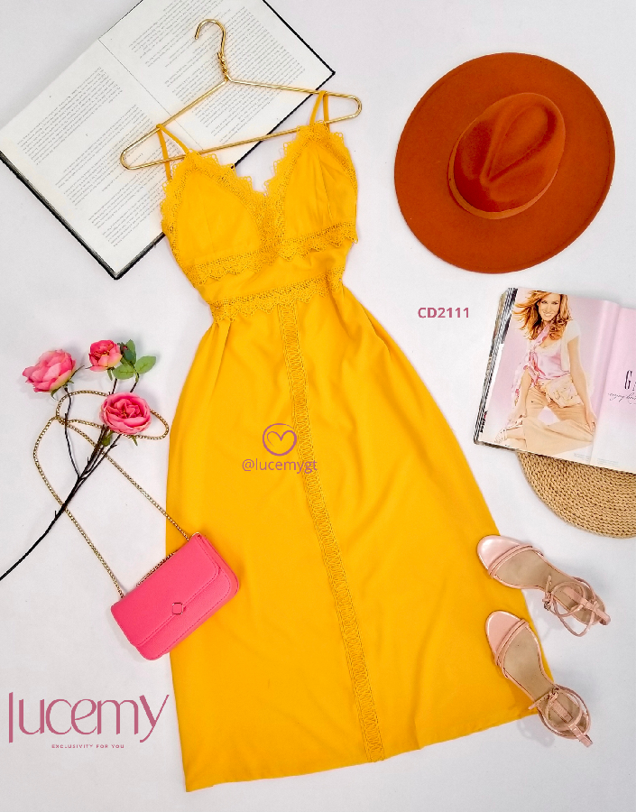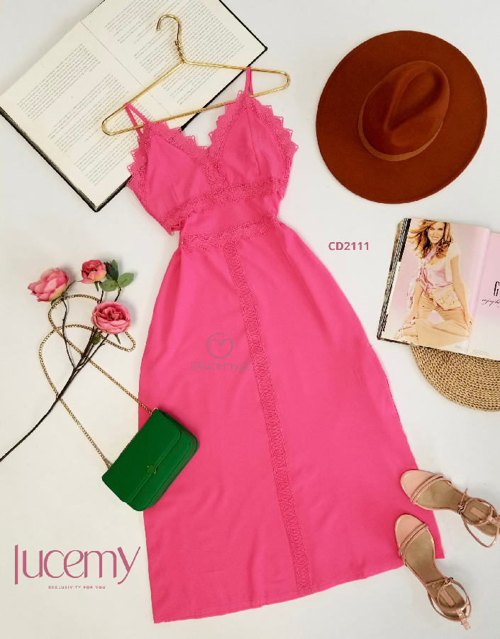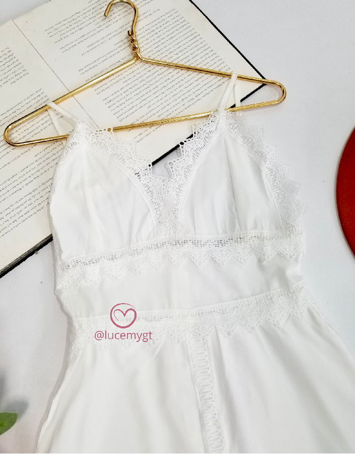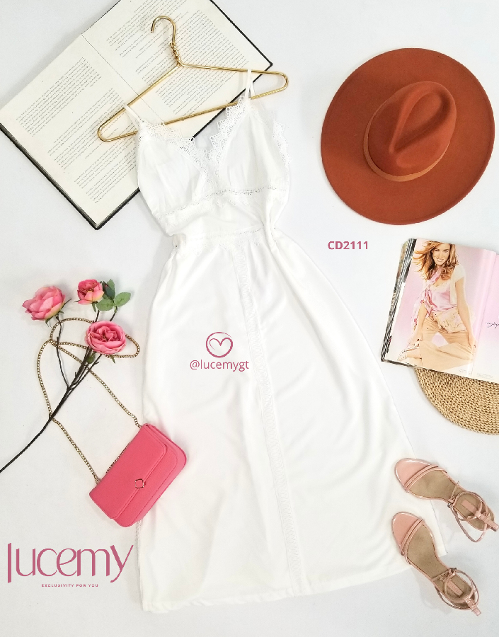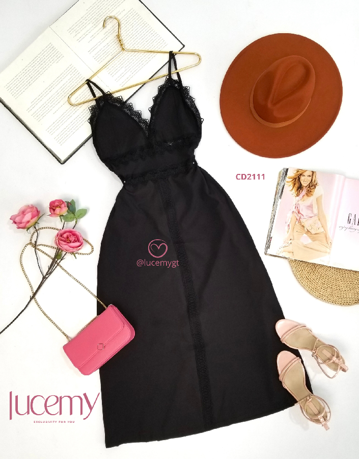 Descripción: Vestido semi casual, escote v, con encaje, tirantes ajustables, cremallera invisible en la parte de atrás