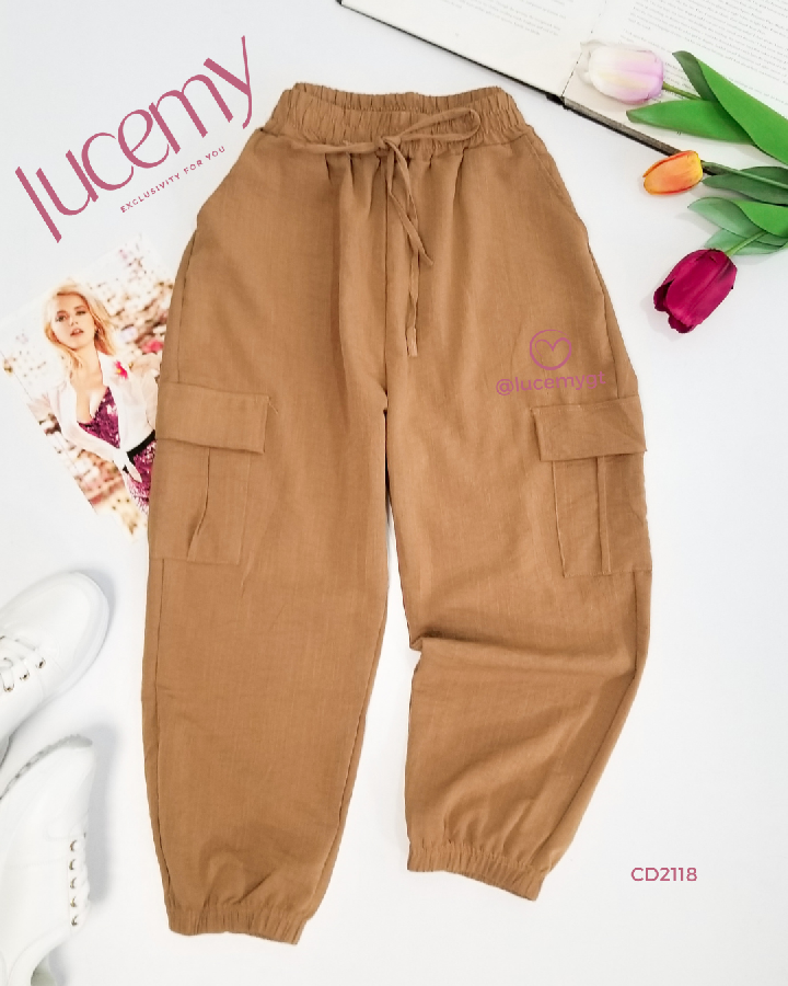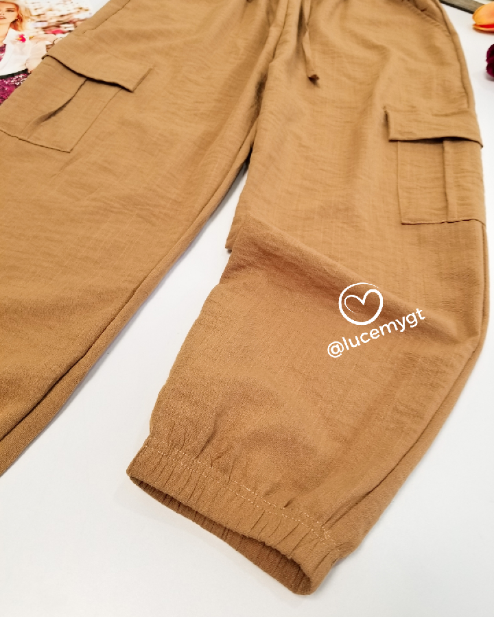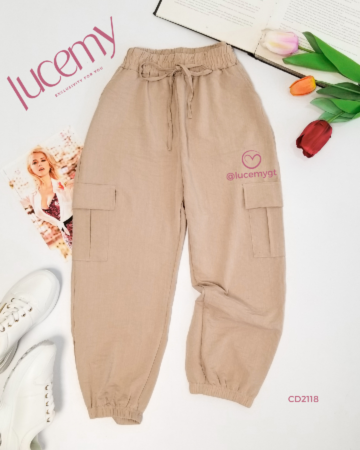 Descripción: Pantalón cargo, cintura elástica, bolsillos a los lados, elástico en la tobillera.