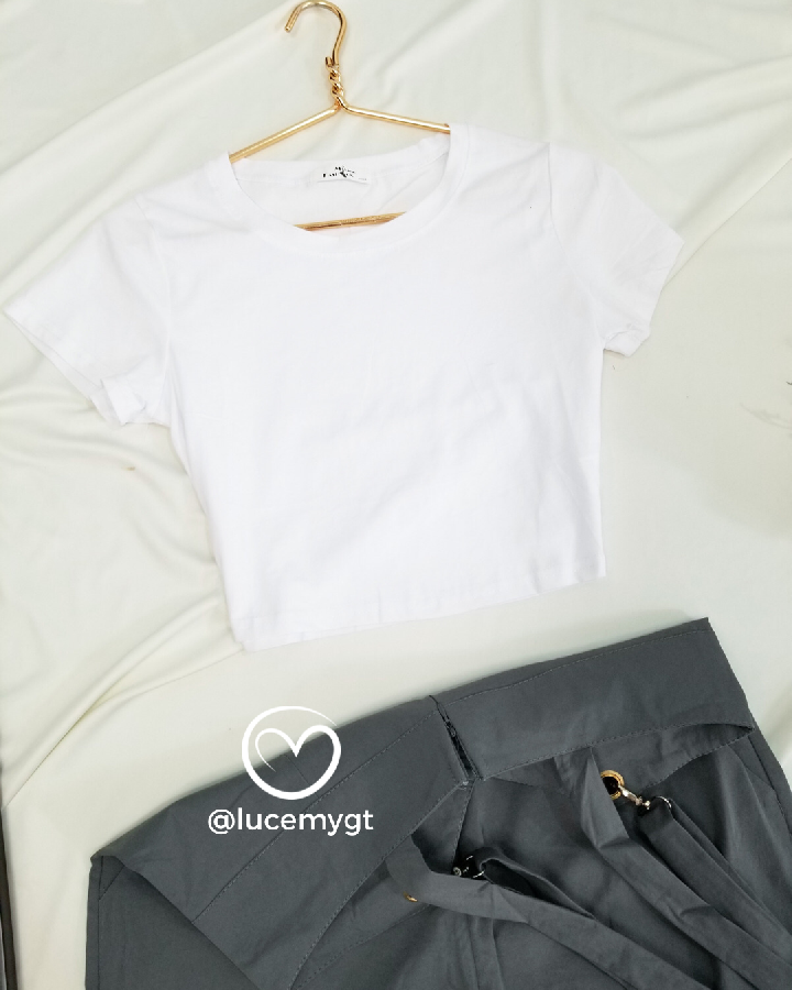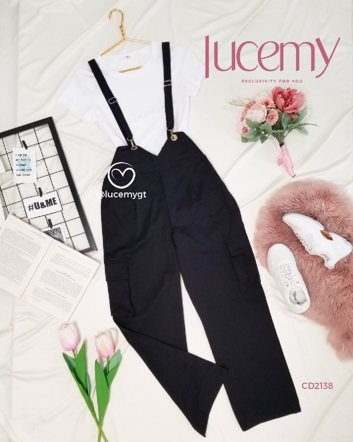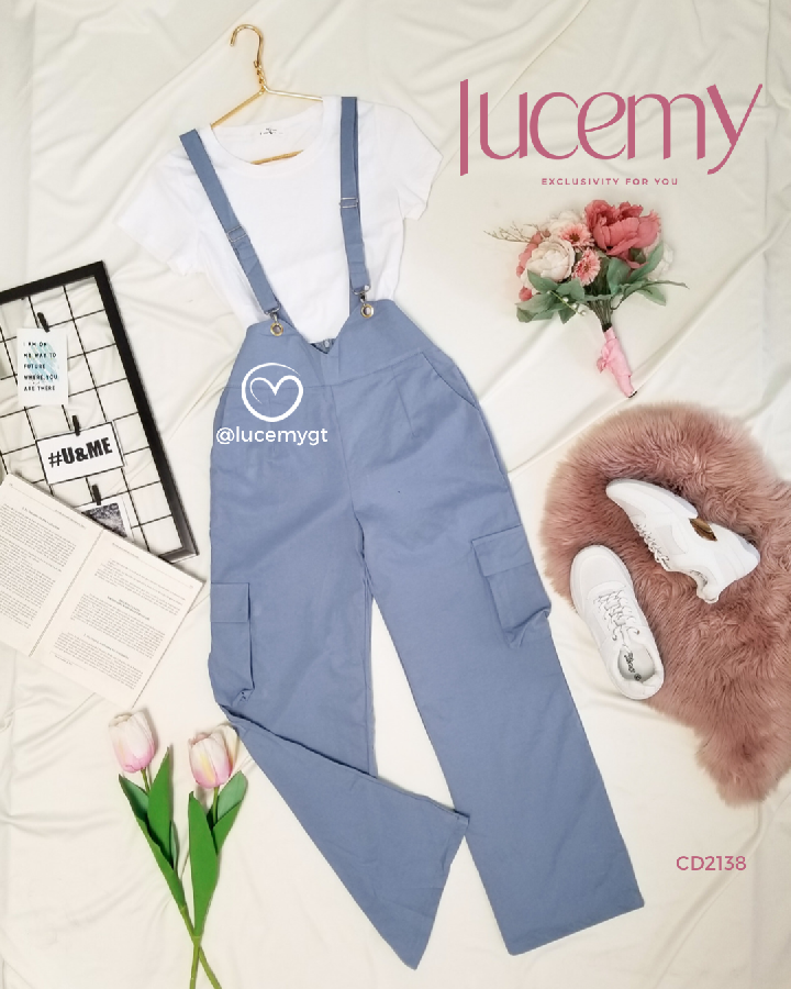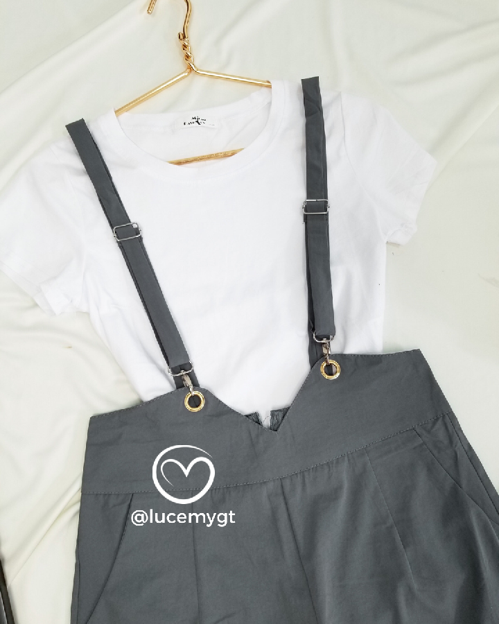 Descripción: Blusa cuello redondo, manga corta color blanco; pantalón tipo overol tirante ajustables, bolsillos a los lados, cremallera invisible en la parte de atrás
