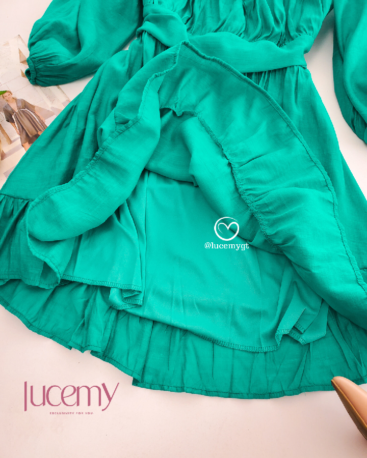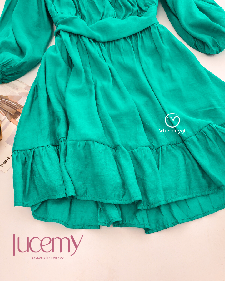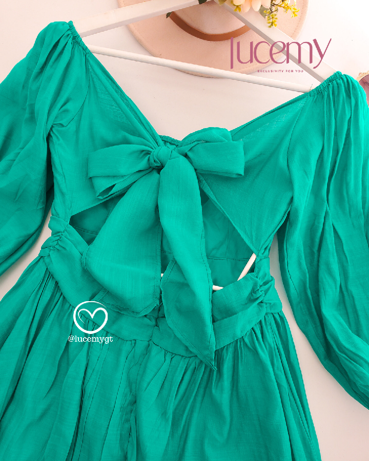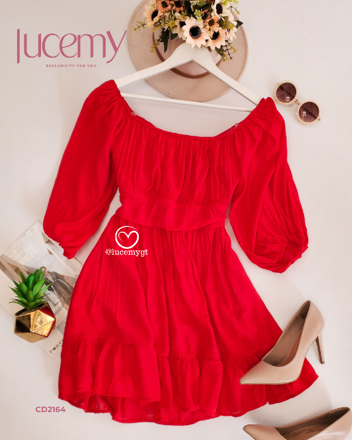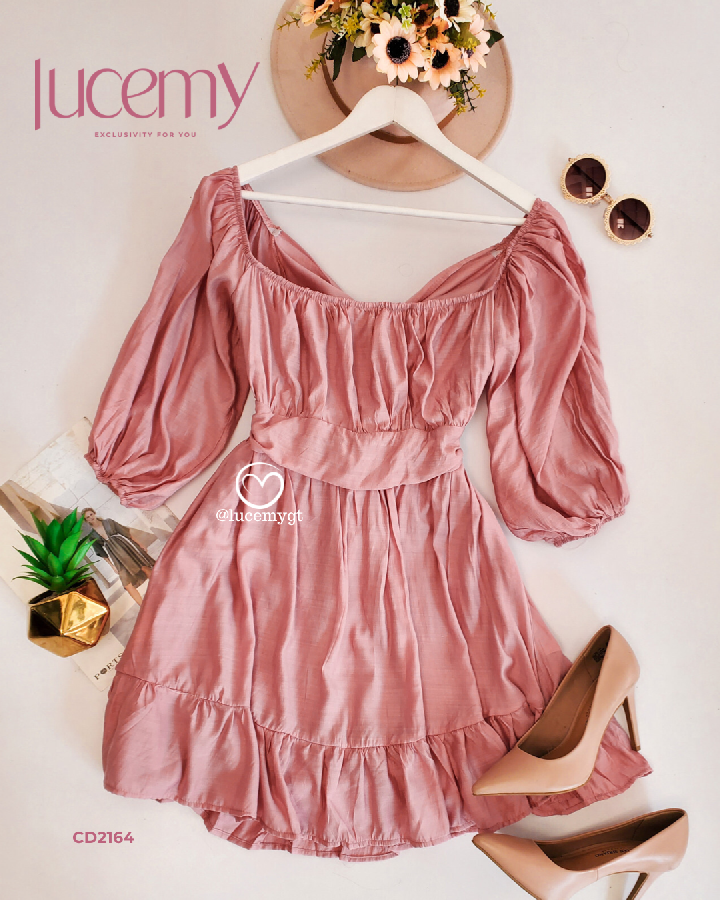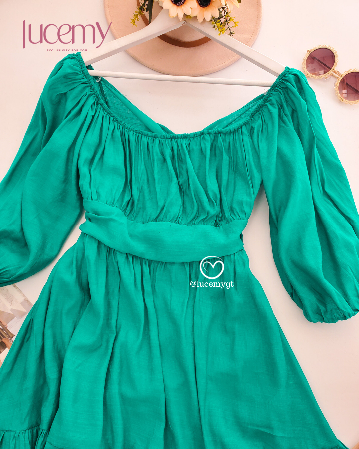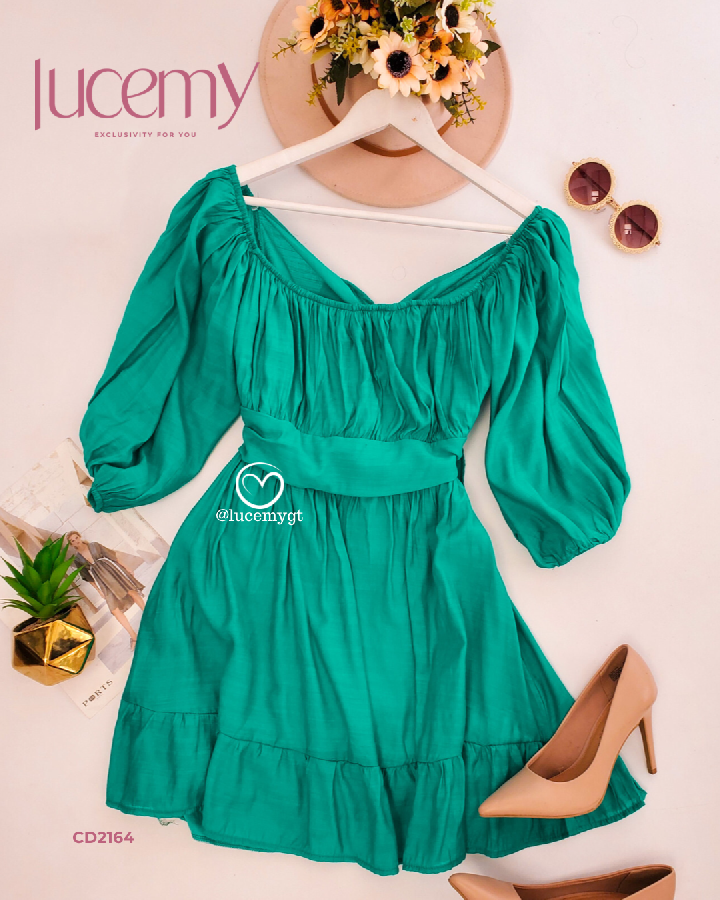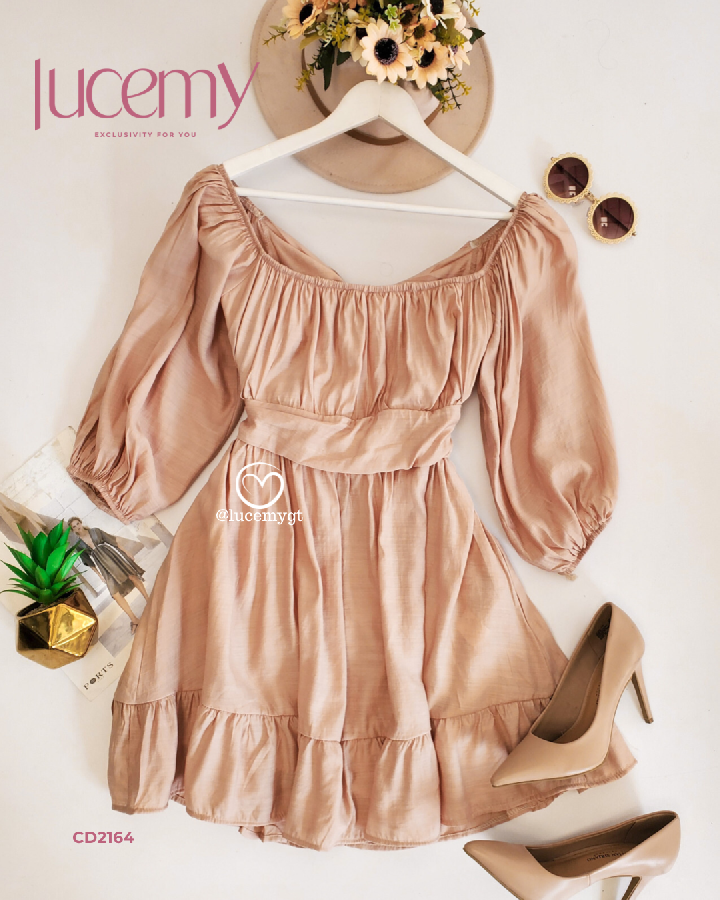 Descripción: Vestido off shoulder, manga 3/4, cremallera invisible en la parte de atrás, agujetas ajustables a la espalda.