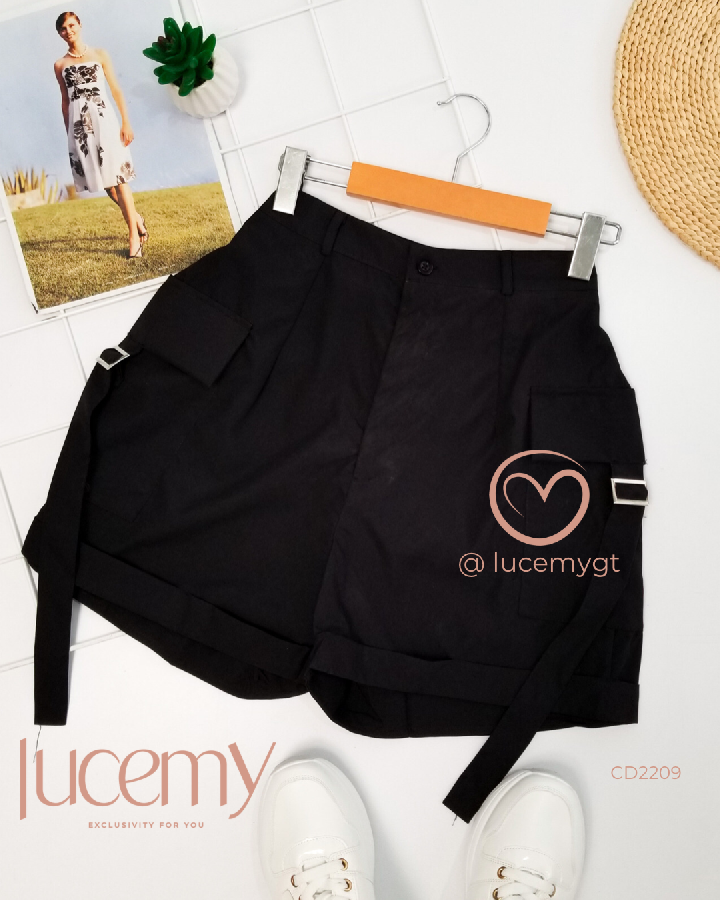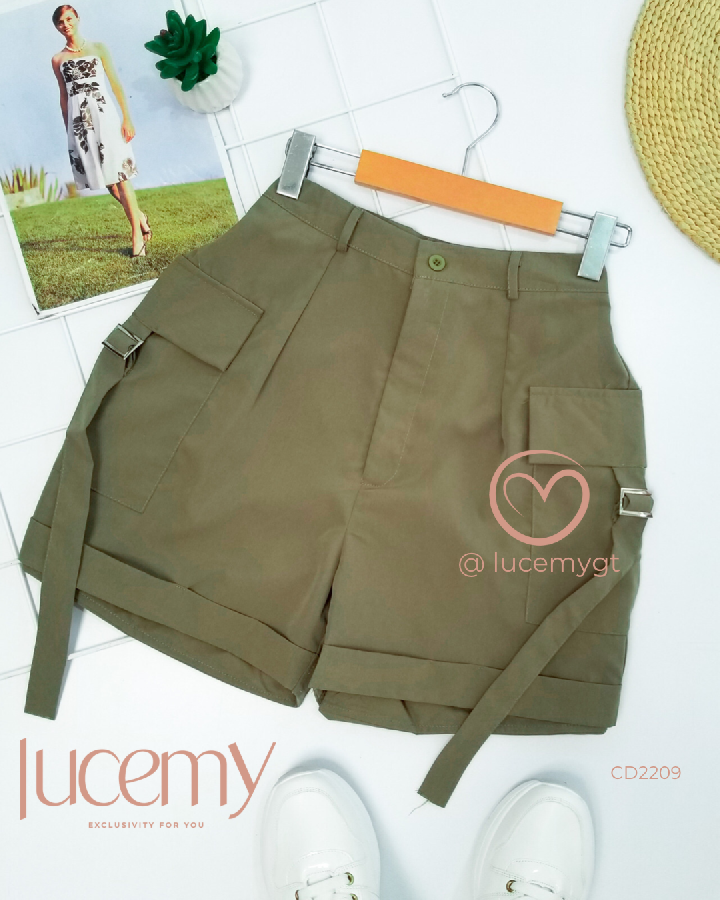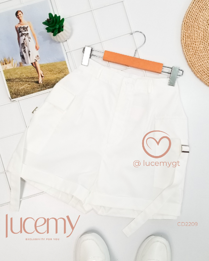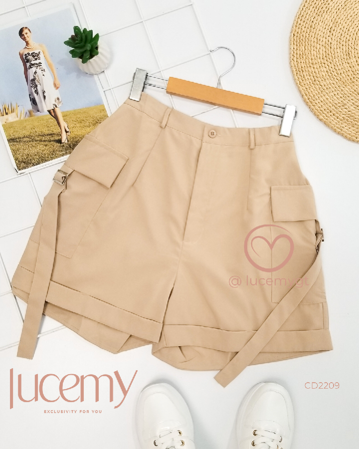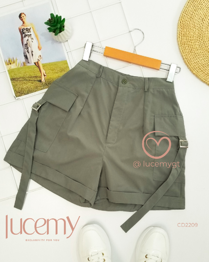Descripción: Short Casual, cintura alta, botón en la parte de enfrente y cremallera, bolsos a los lados.