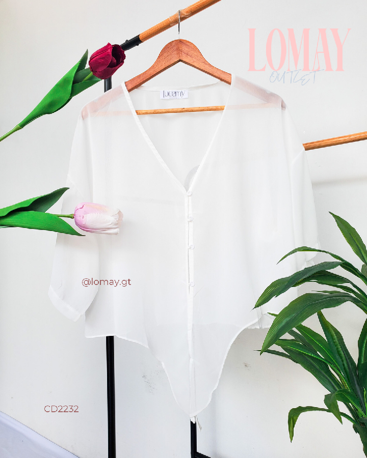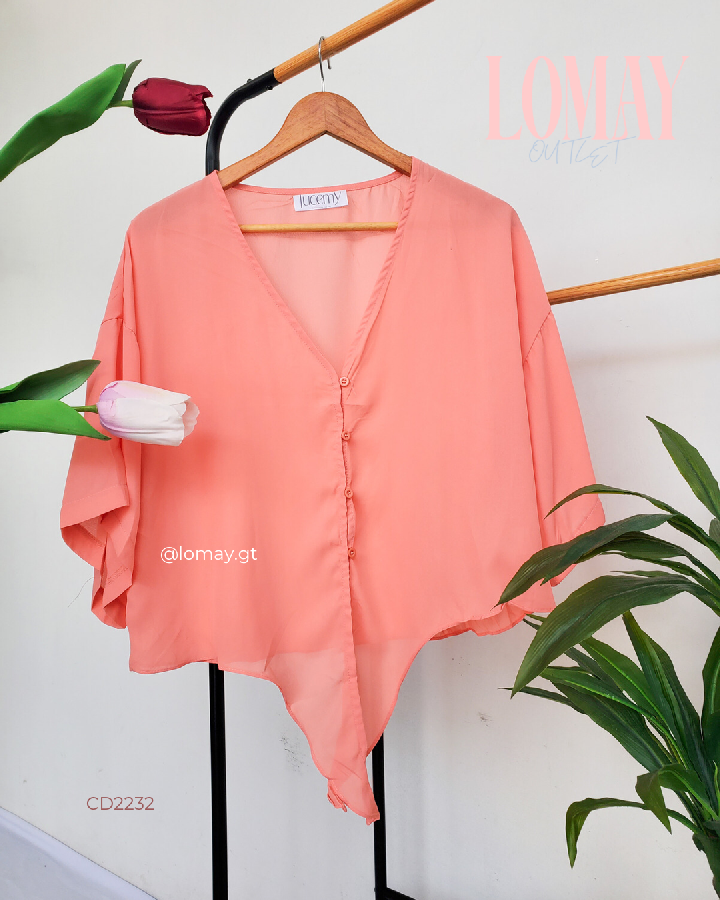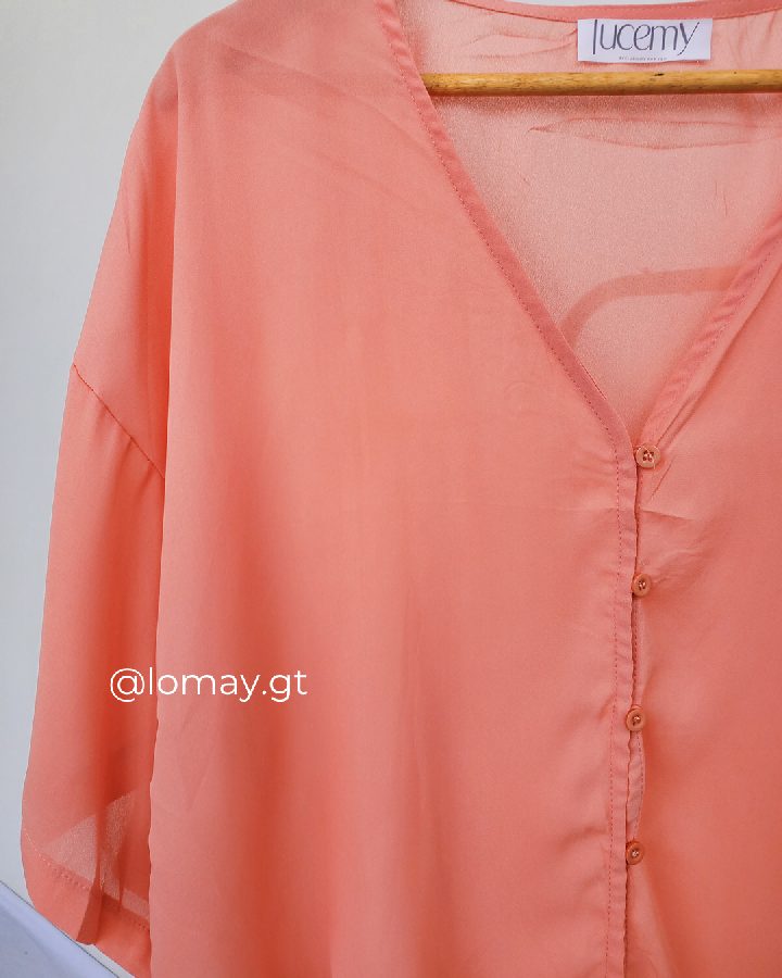 Descripción: Blusa Casual, escote V, manga corta, nudo delantero, botones en la parte de enfrente.