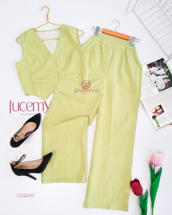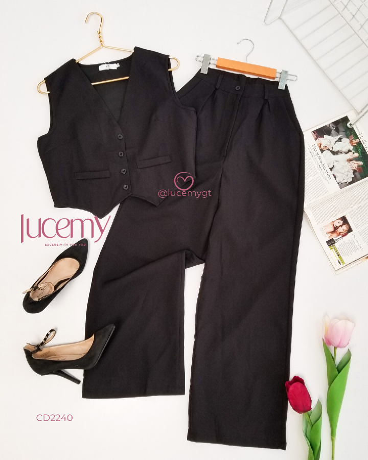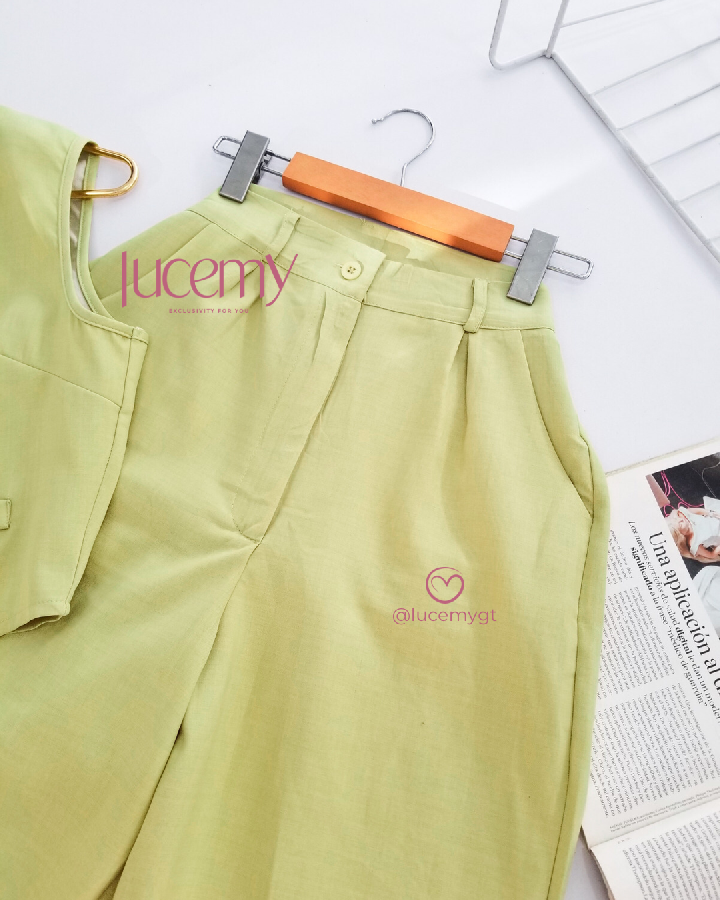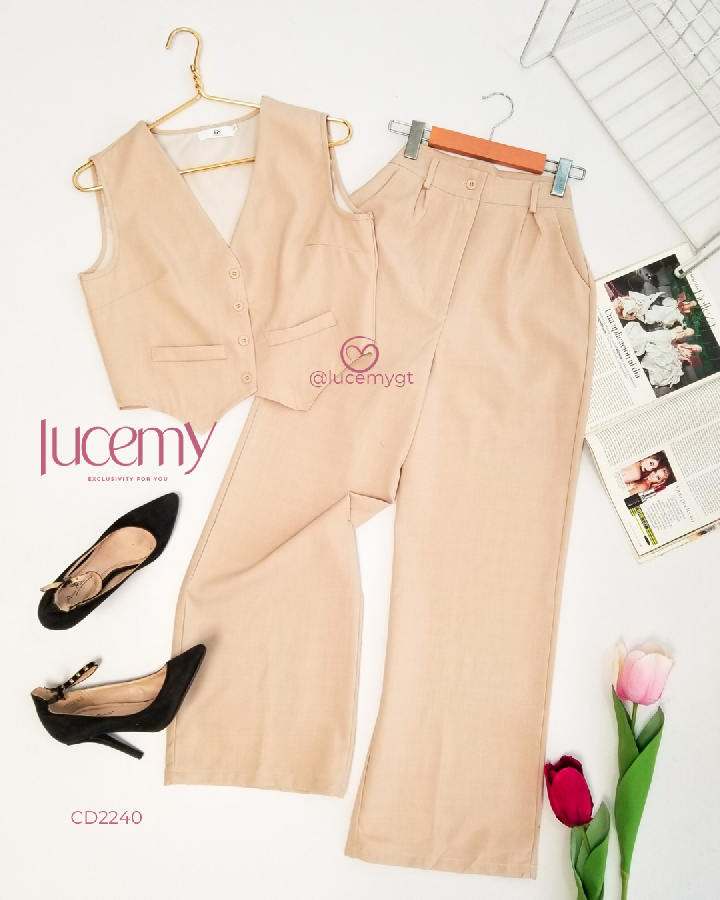 Descripción: Chaleco casual, escote V, botones en la parte de enfrente, pantalón cintura alta, botón en la parte de enfrente, cremallera en la parte de enfrente.