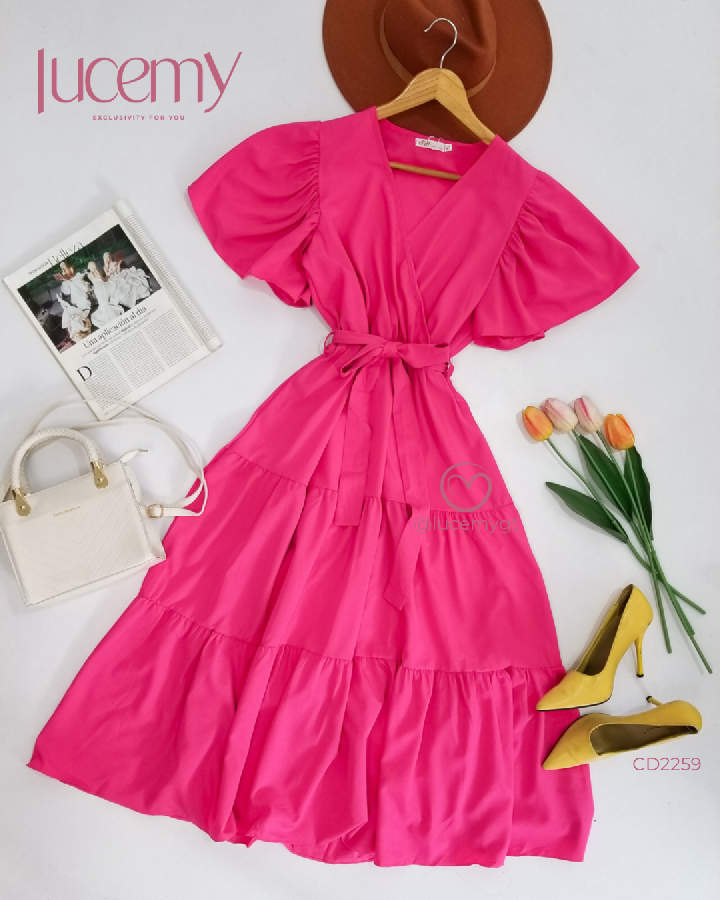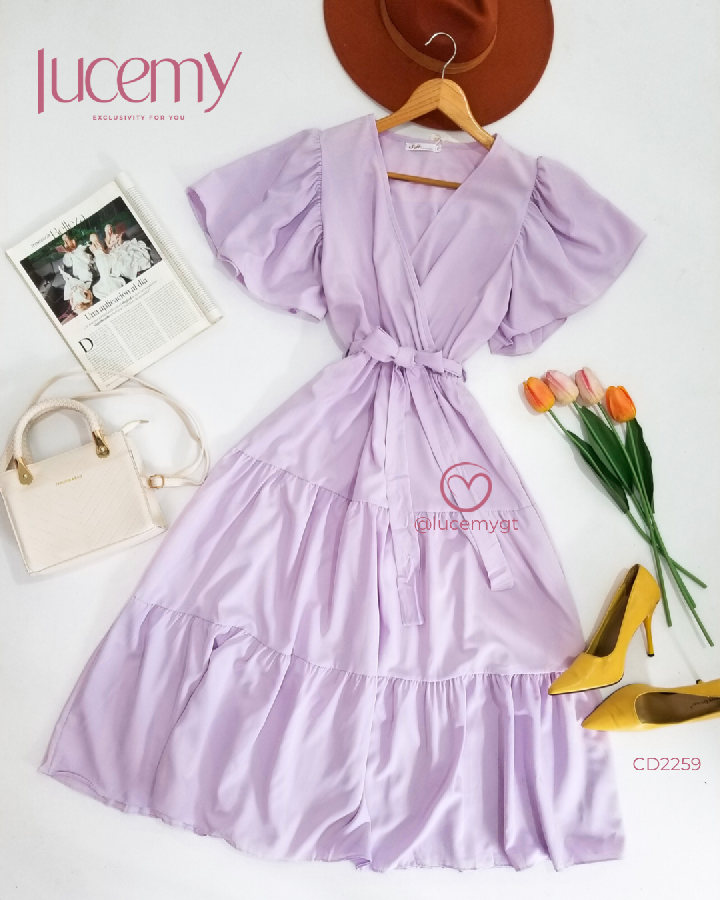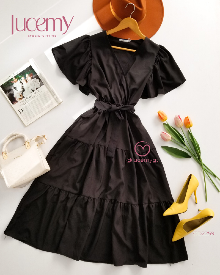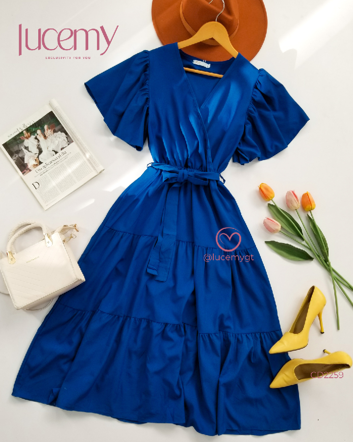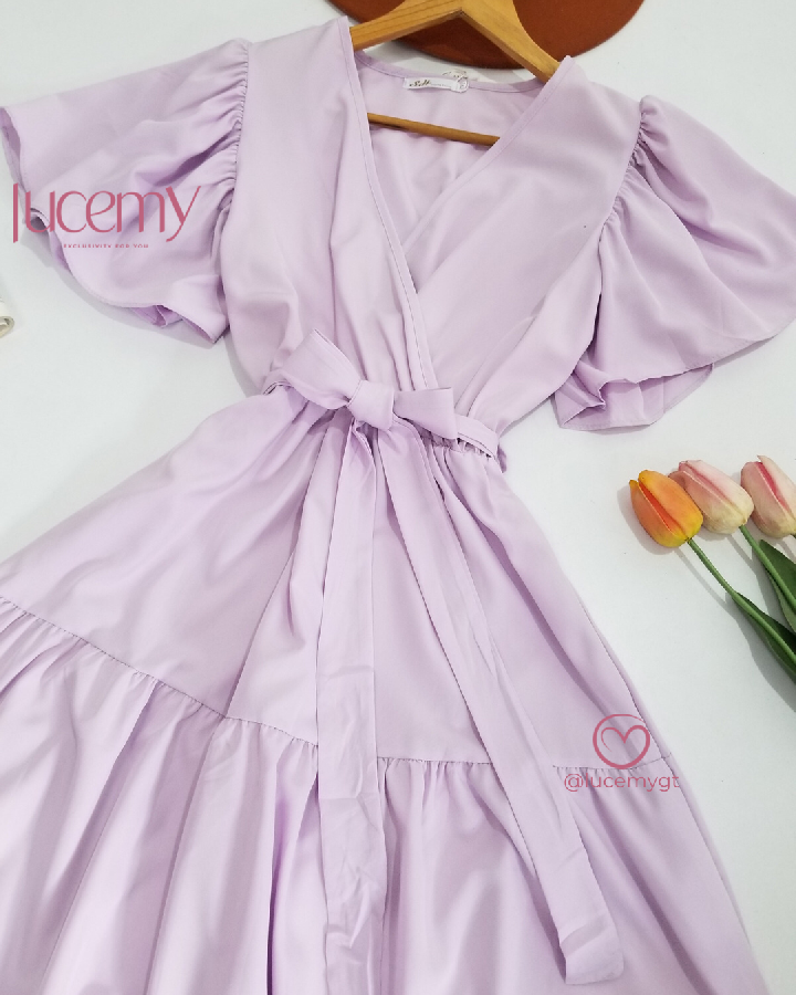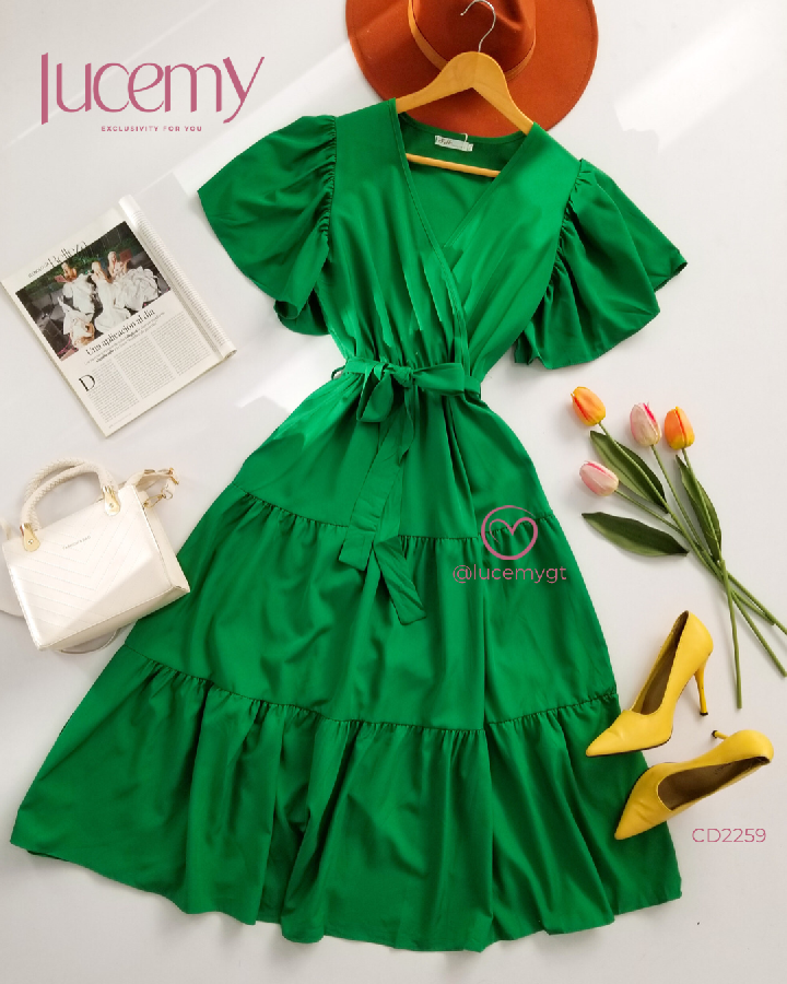 Descripción: Vestido Casual, escote V, manga de mariposa, cuenta con tres tiempos fácil de combinar.