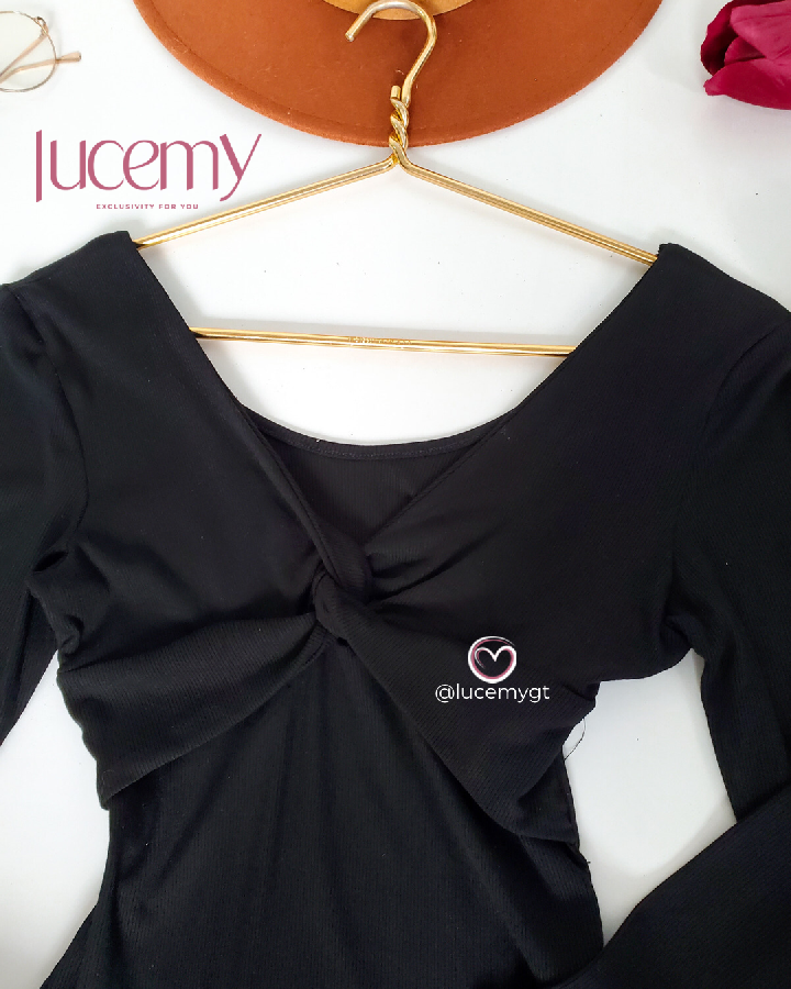 Descripción: Body Casual, escote V, nudo delantero, manga larga, muy cómodo.