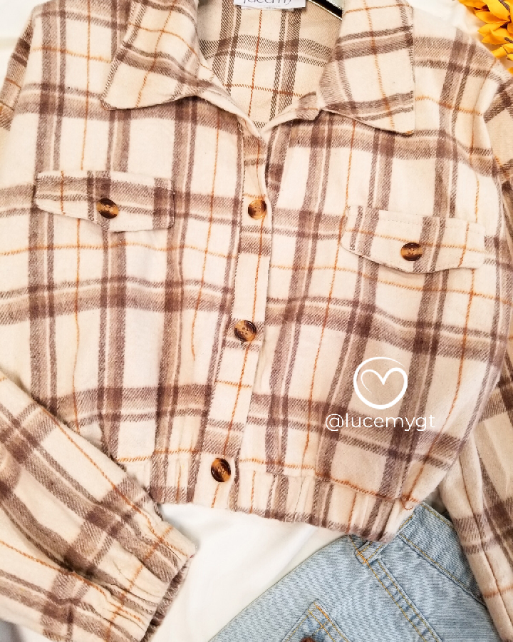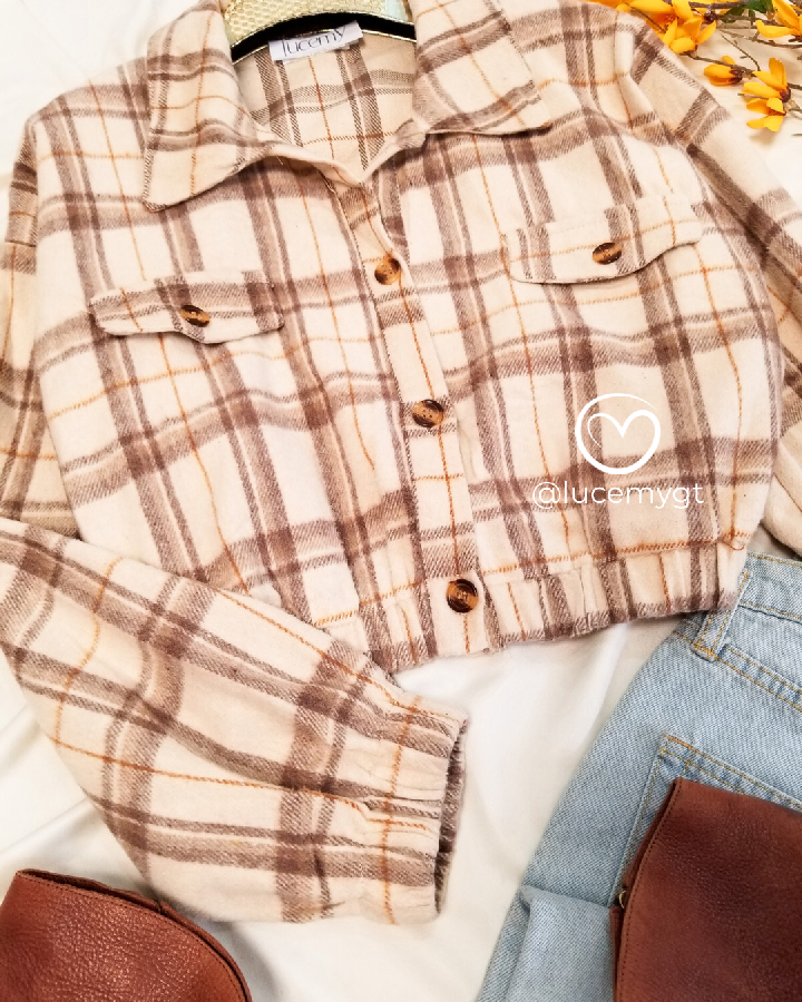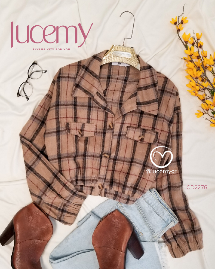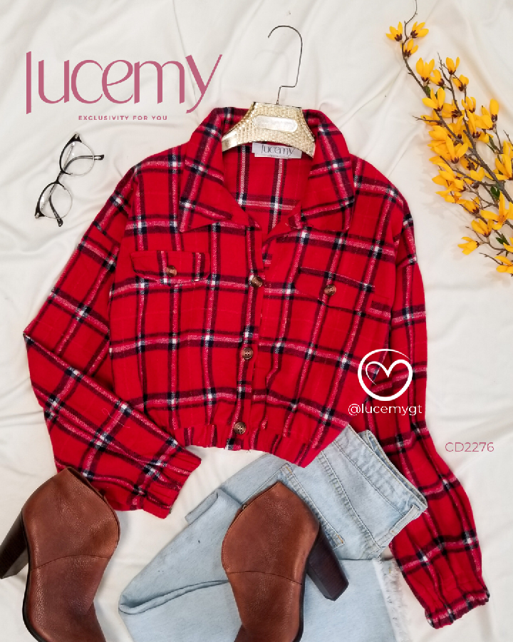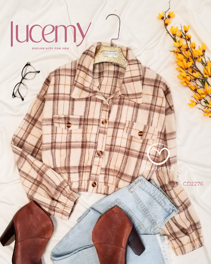 Descripción: Chaqueta Cuadros, cuello camisero, simulación de bolsillo en la parte de enfrente, manga larga elástico en las muñequeras, elástico en la cintura.