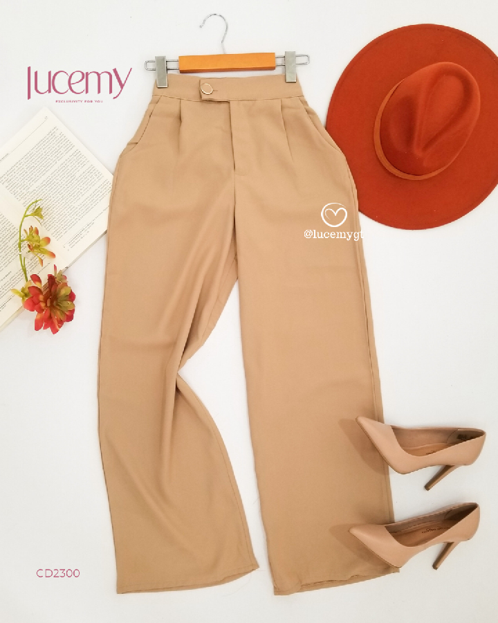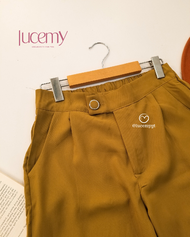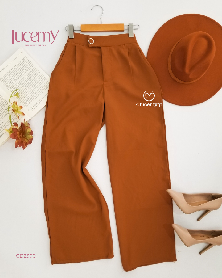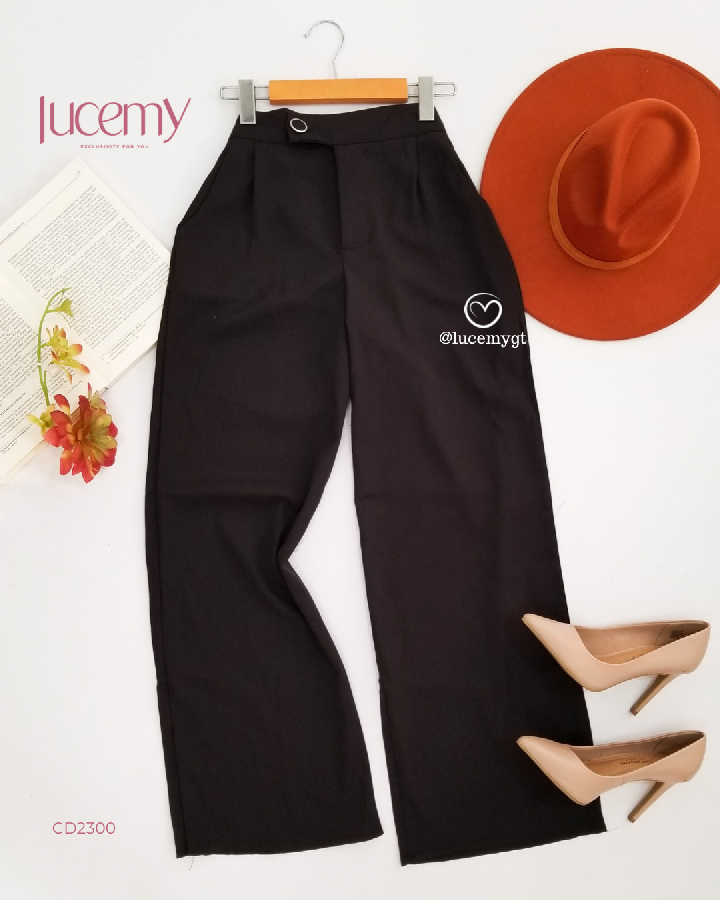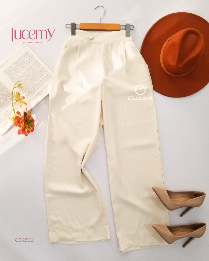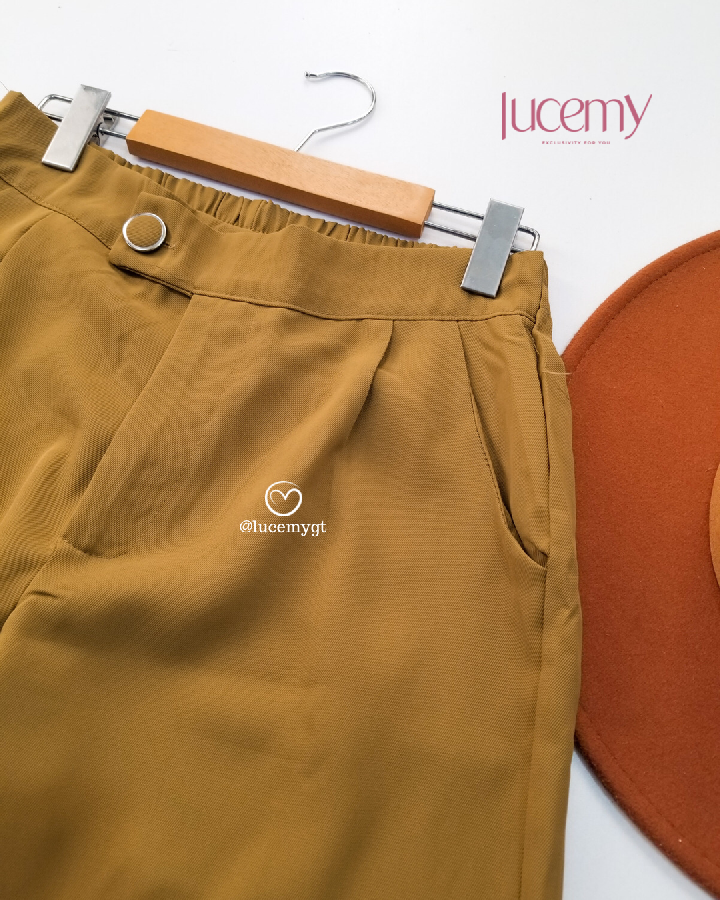 Descripción: Pantalón casual, botón y cremallera en la parte de enfrente, bolsillos a los lados, pinzas en la parte de enfrente, elástico en la parte de atrás
