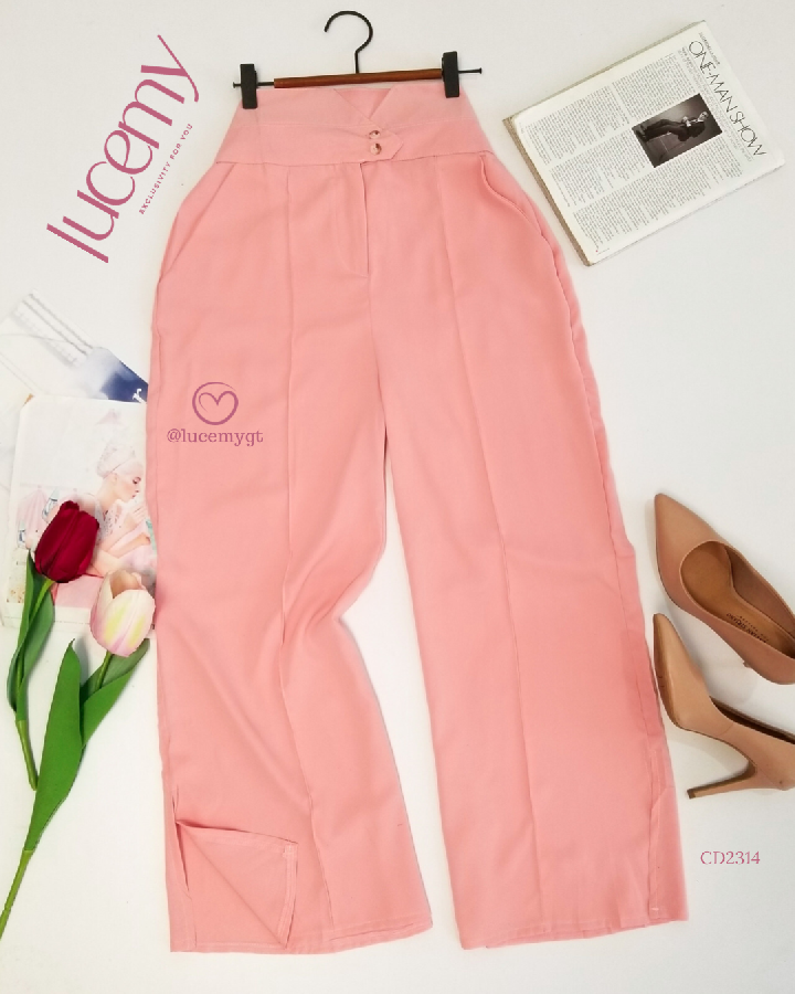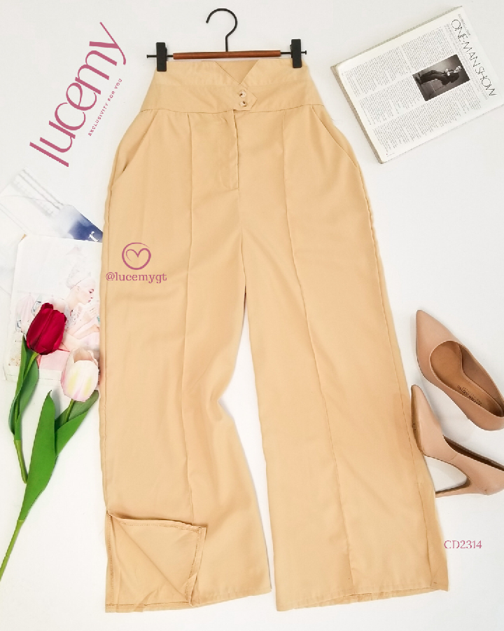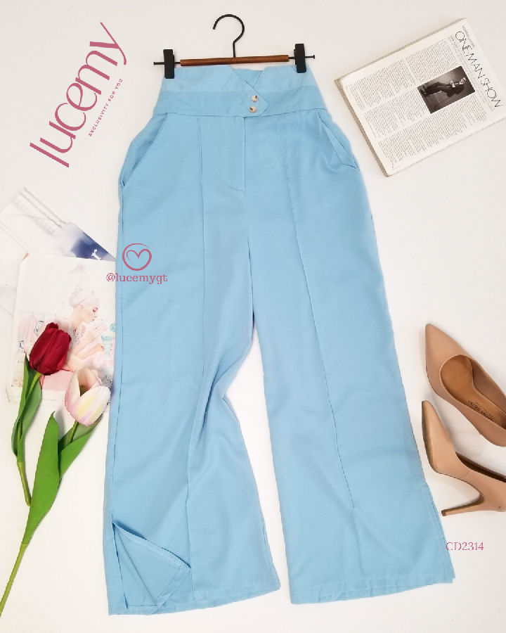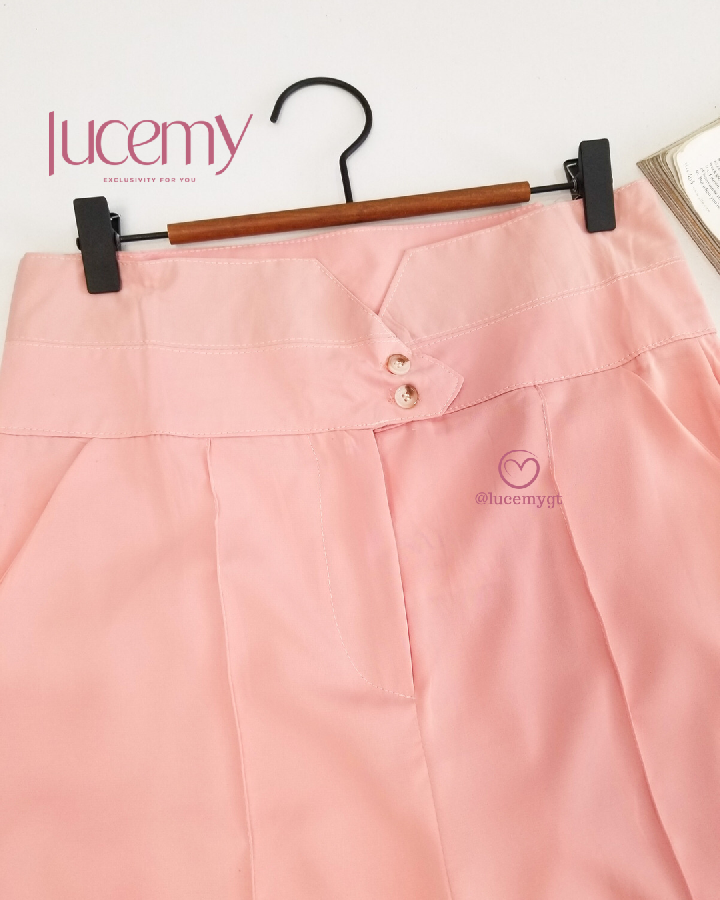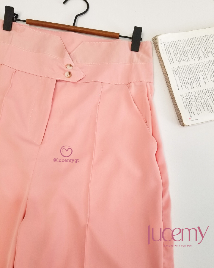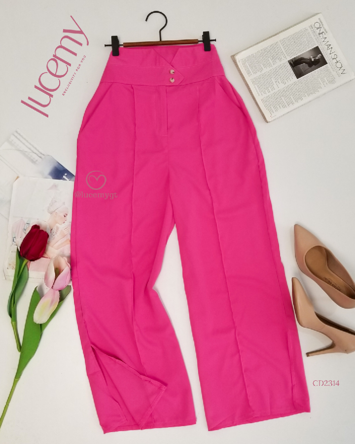 Descripción: pantalón cintura alta, bolsillos a los lados, botones en la parte de enfrente.