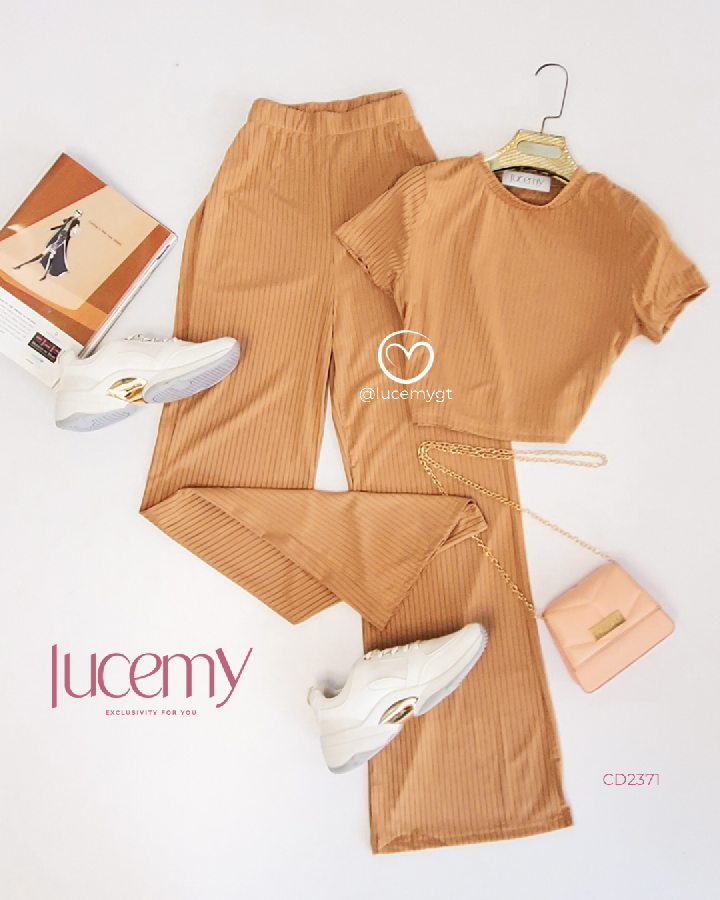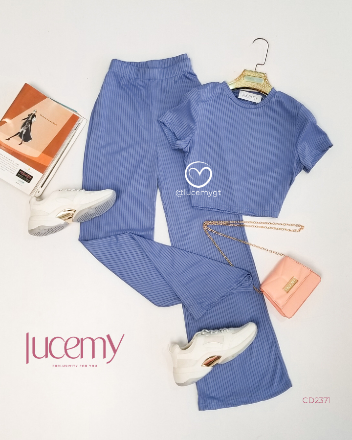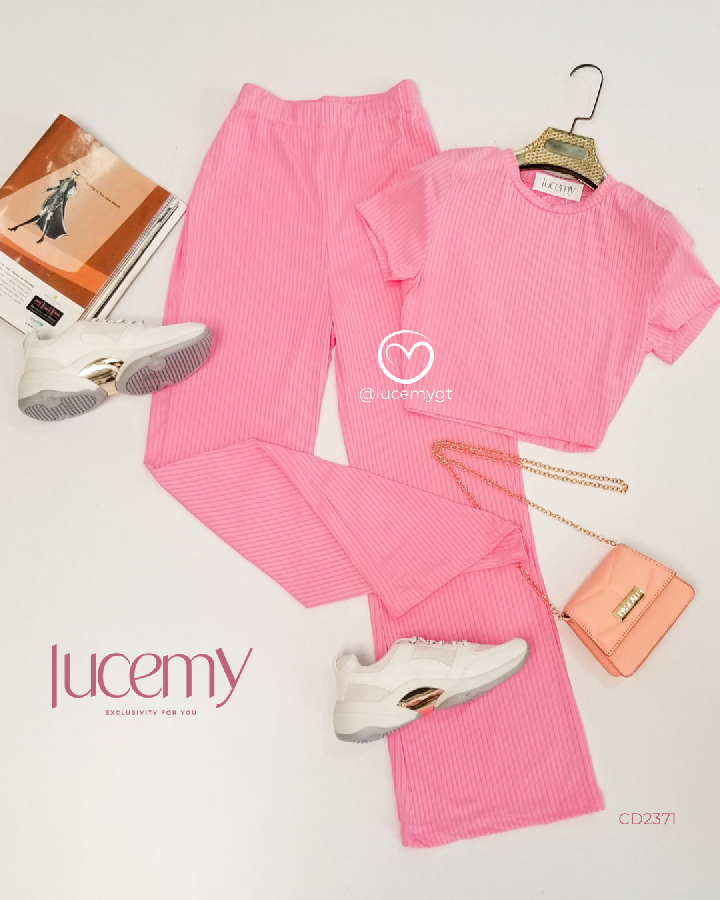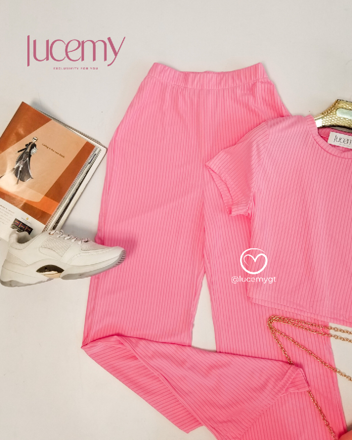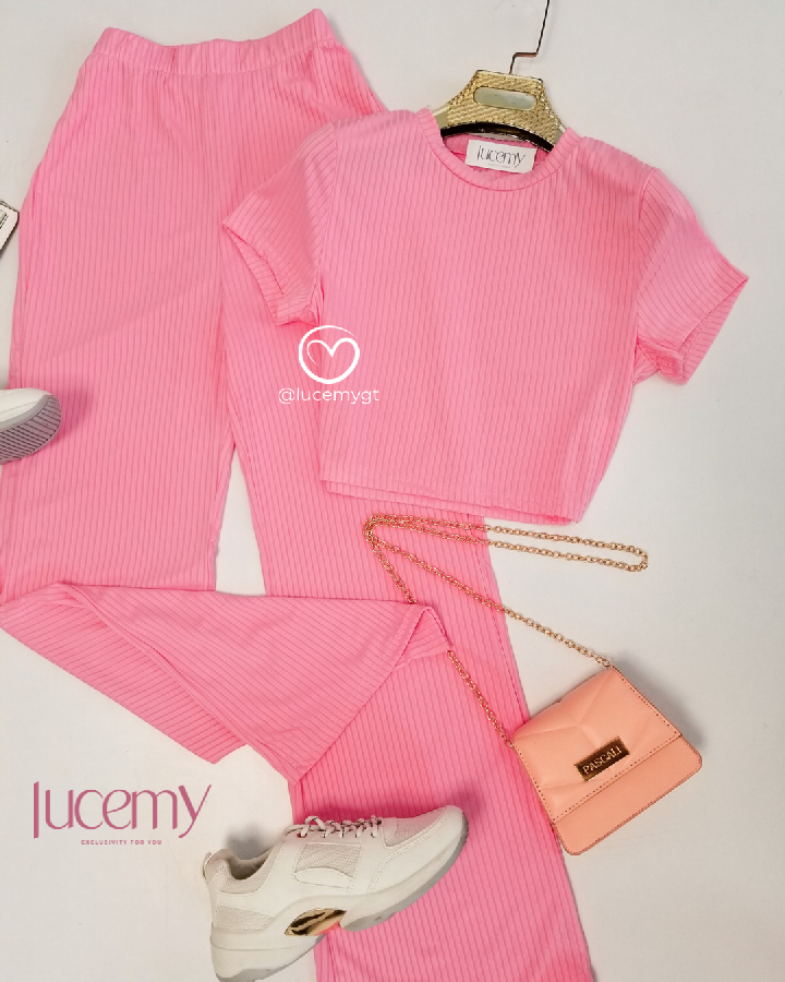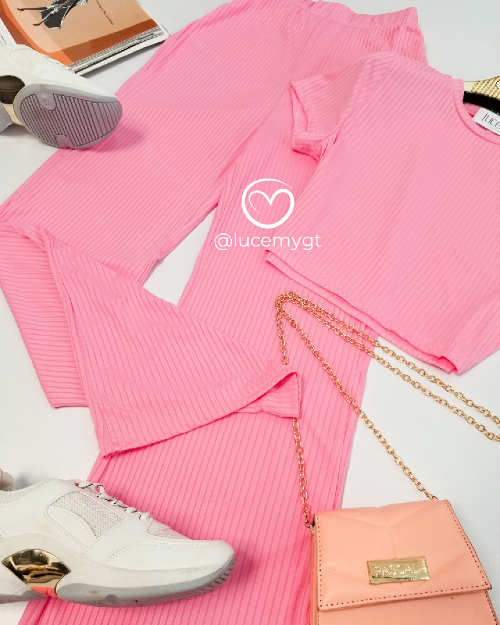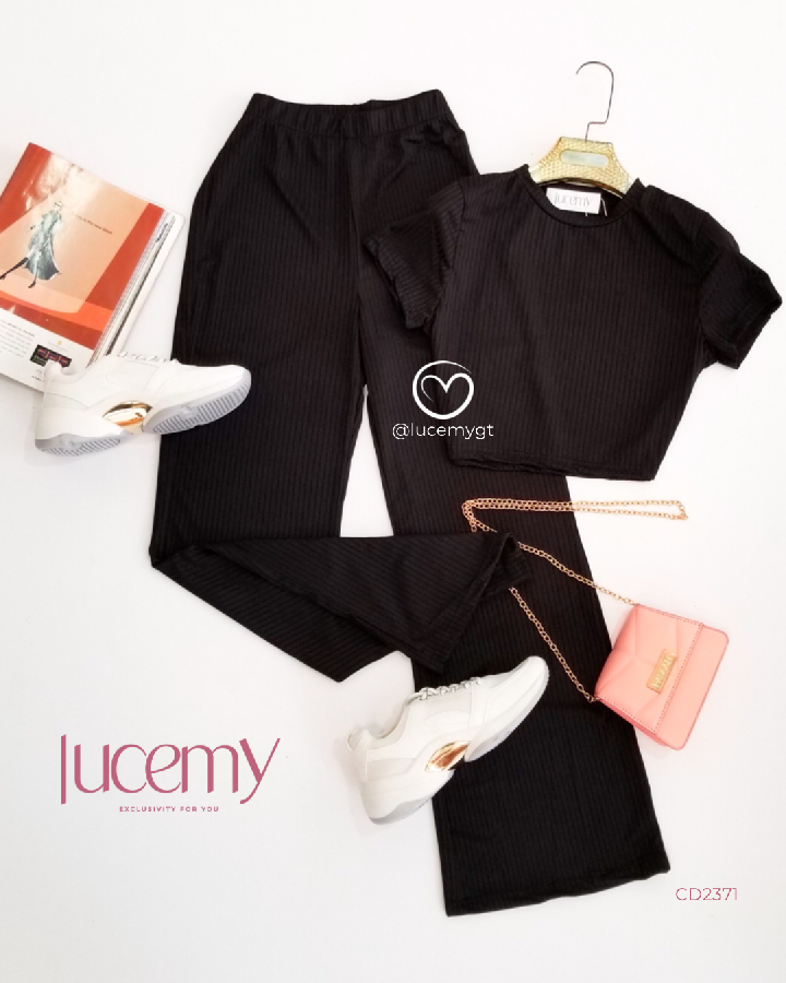 Descripción: Blusa cuello redondo, manga corta, pantalón cintura alta