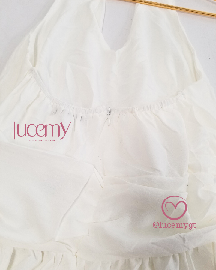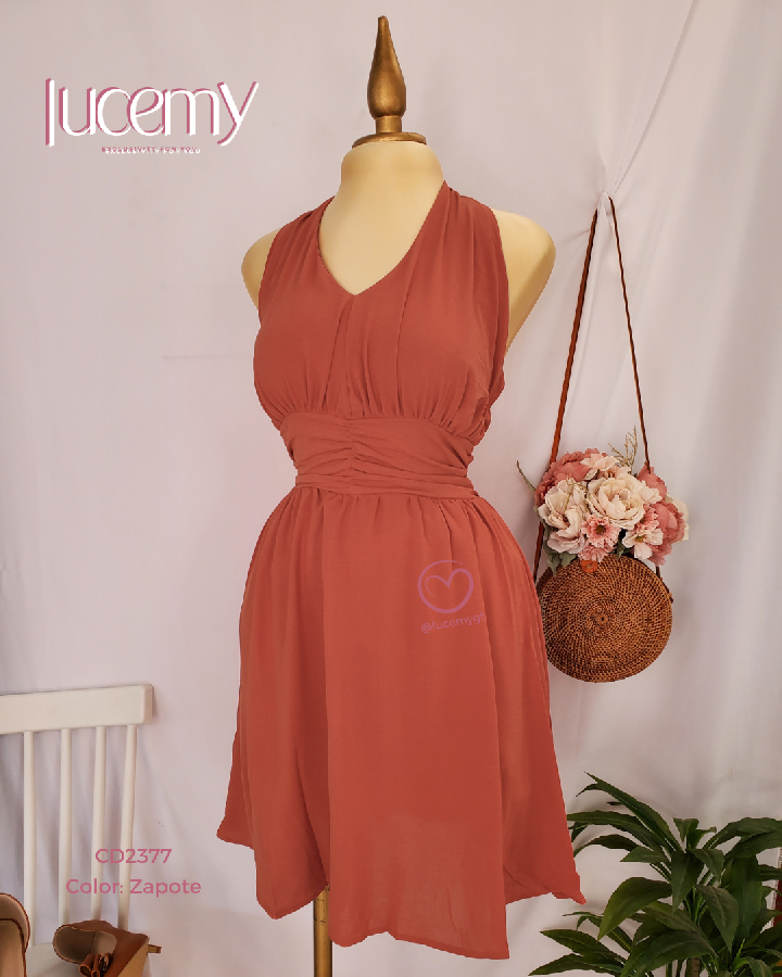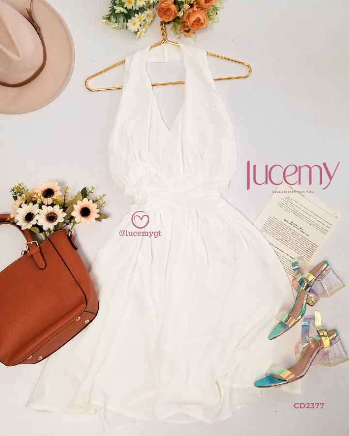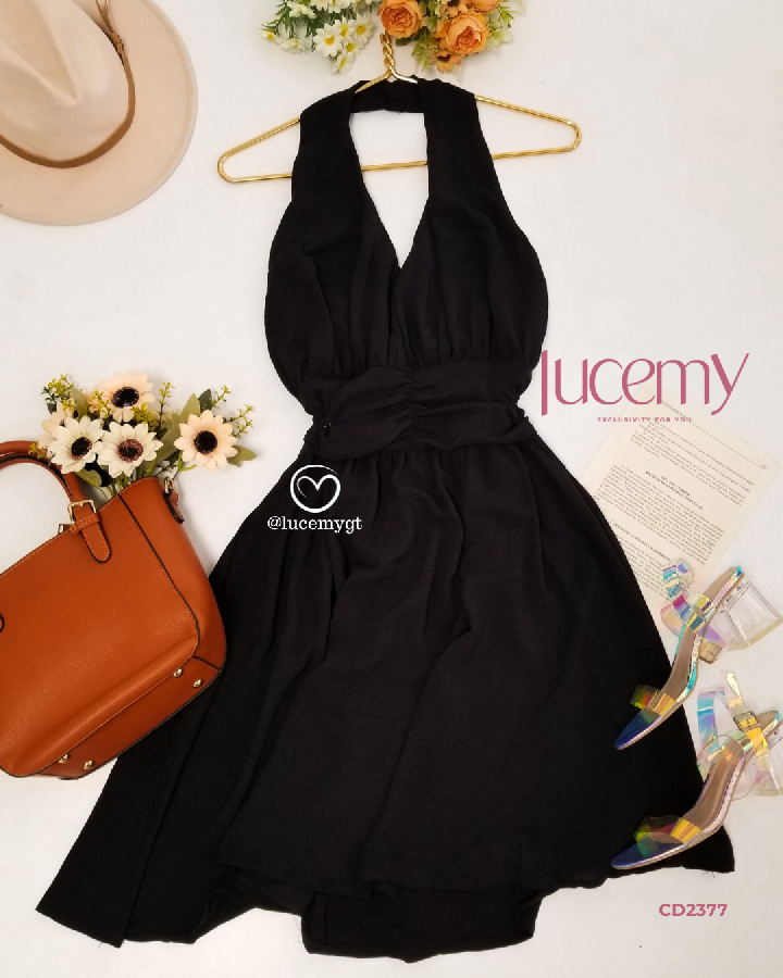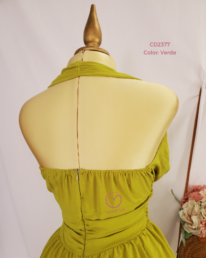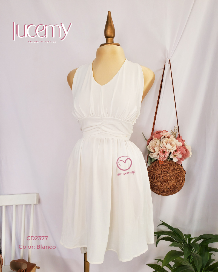 Descripción: Vestido casual con escote v en la parte de enfrente, cremallera en la parte de atrás, con elástica