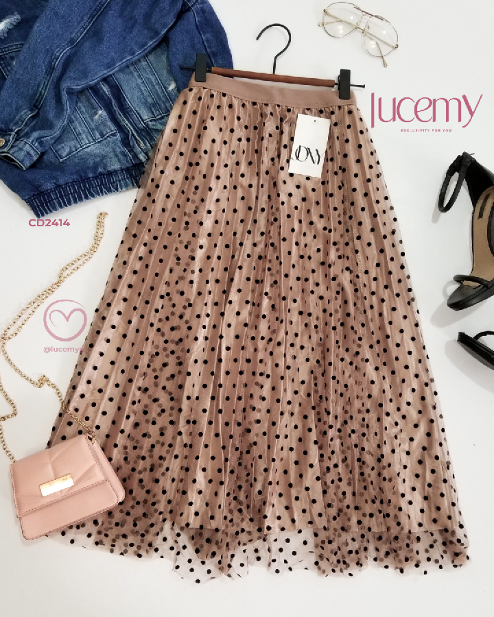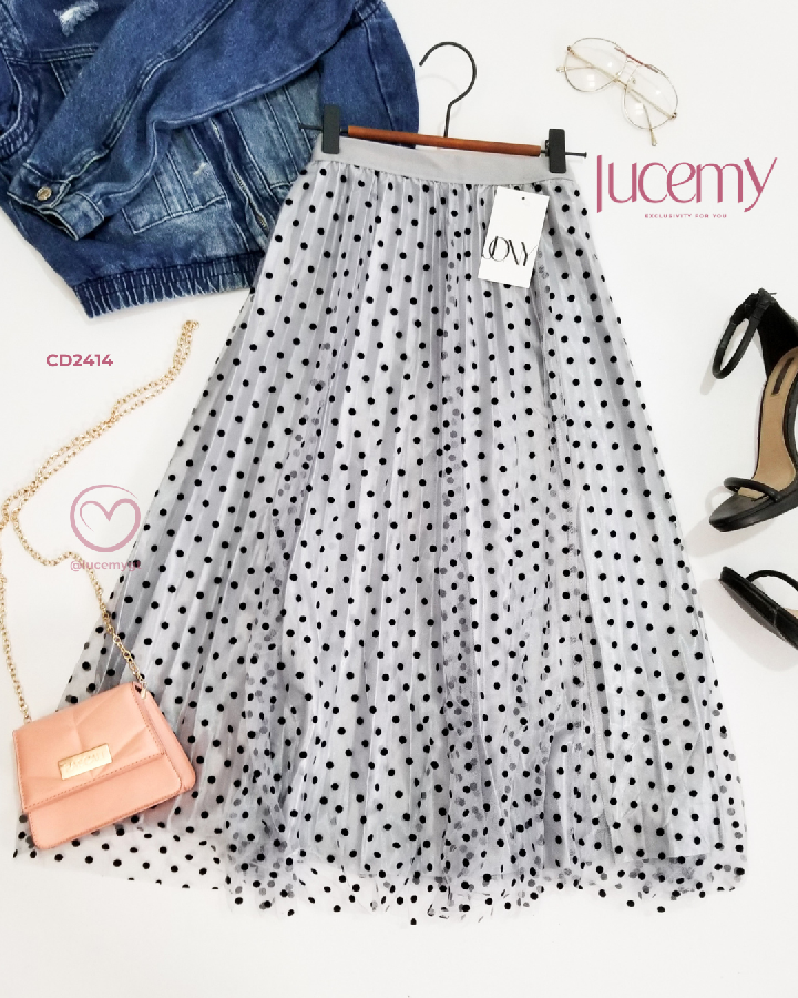 Descripción: Falda de Puntos, elástico en la cintura, es reversible, no te puede faltar