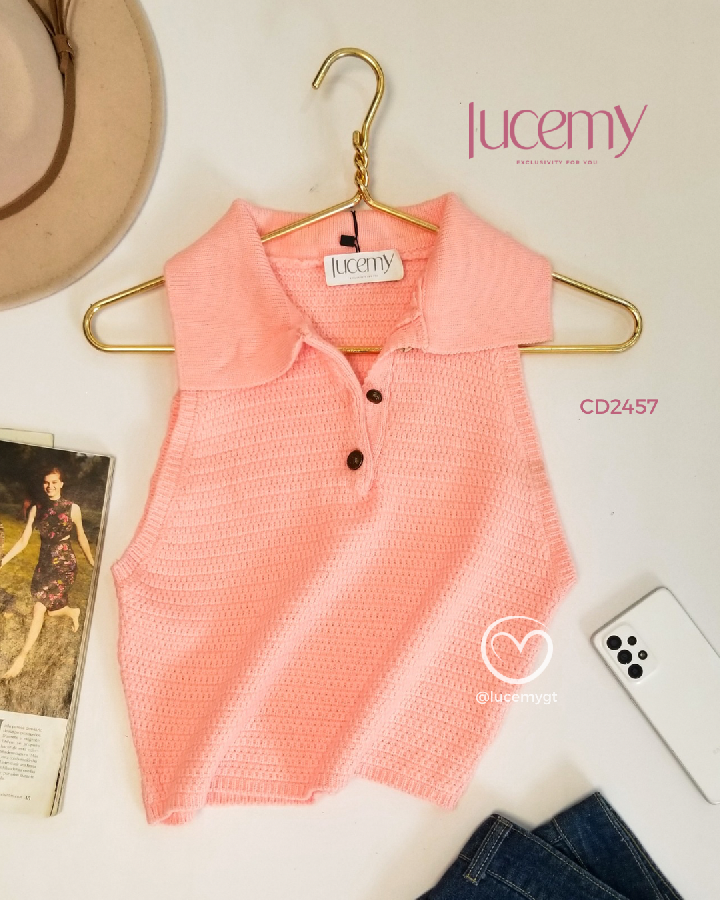 Descripción: Blusa Tejida, cuello camisero, sin mangas, botones en la parte de enfrente. Promoción llévate dos blusas a solo Q155.00