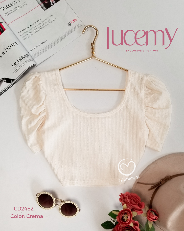 Descripción: Blusa Casual, cuello redondo, mangas de princesa.