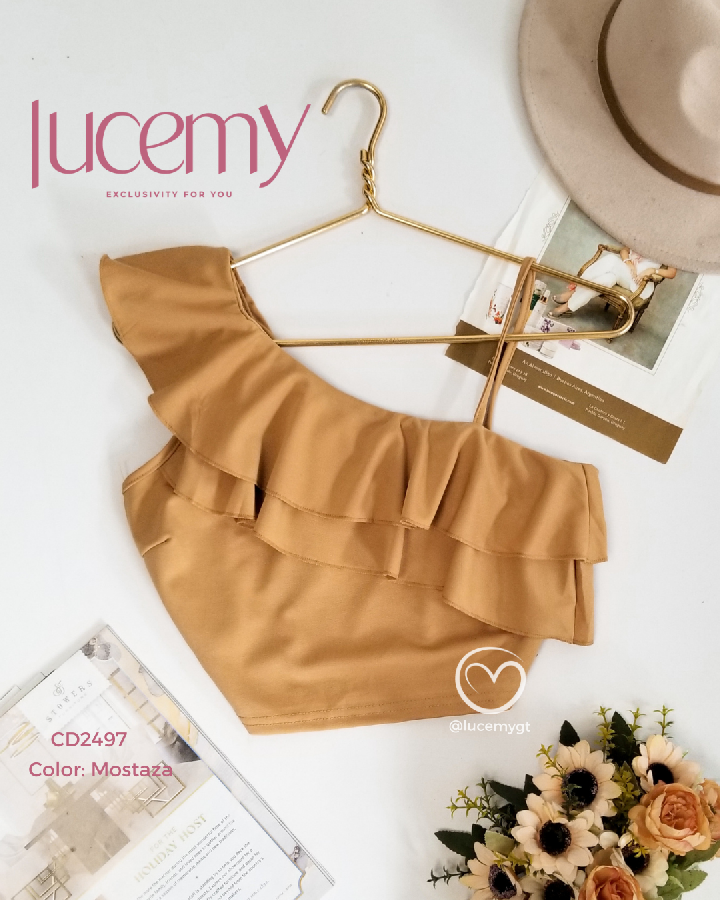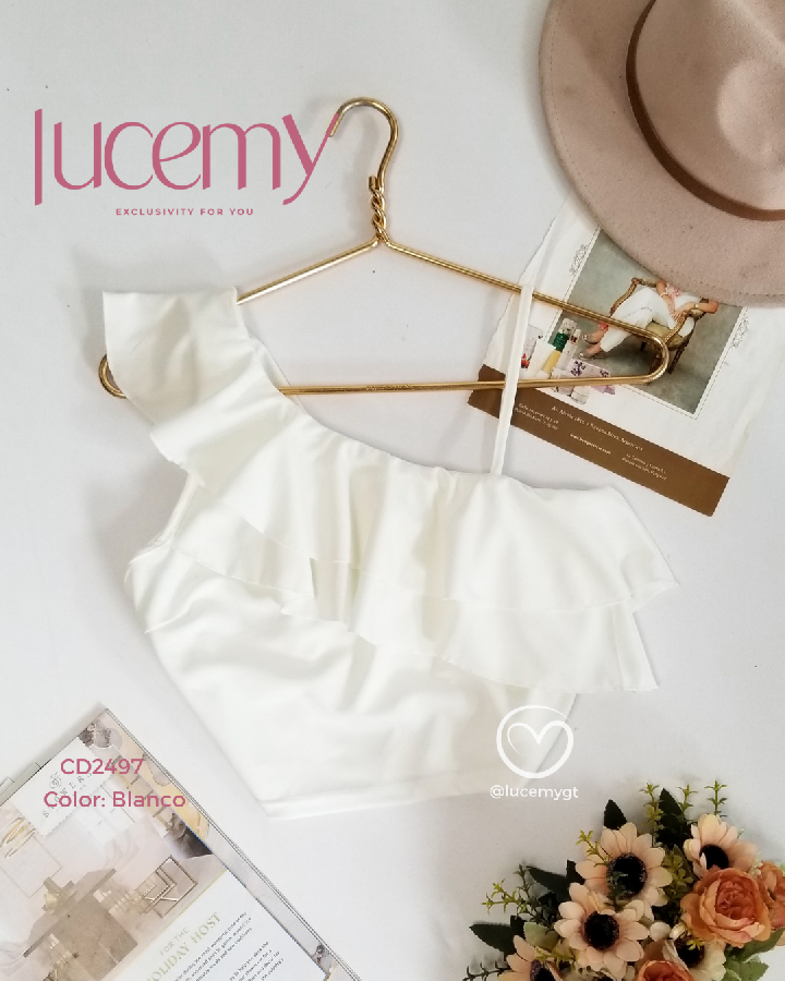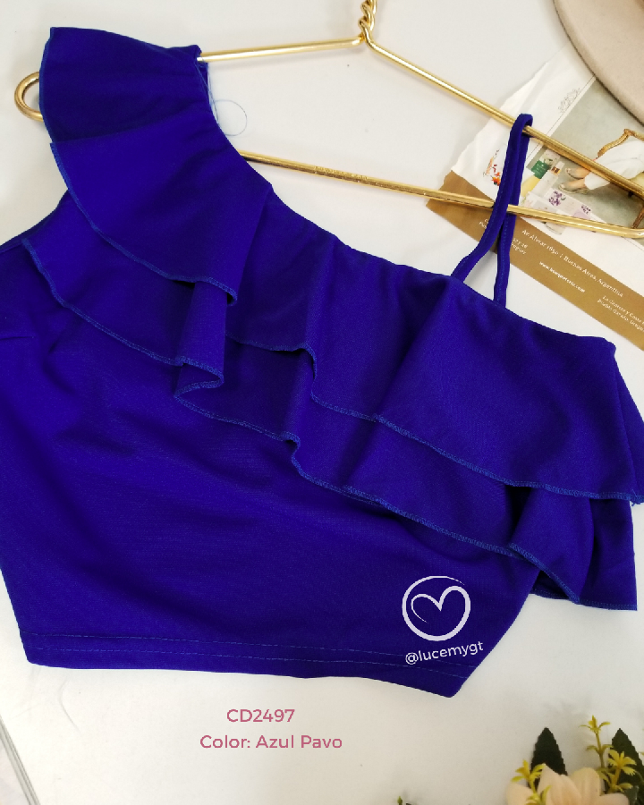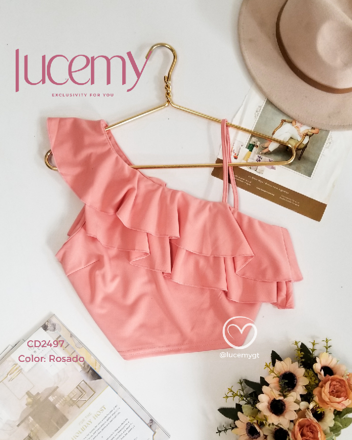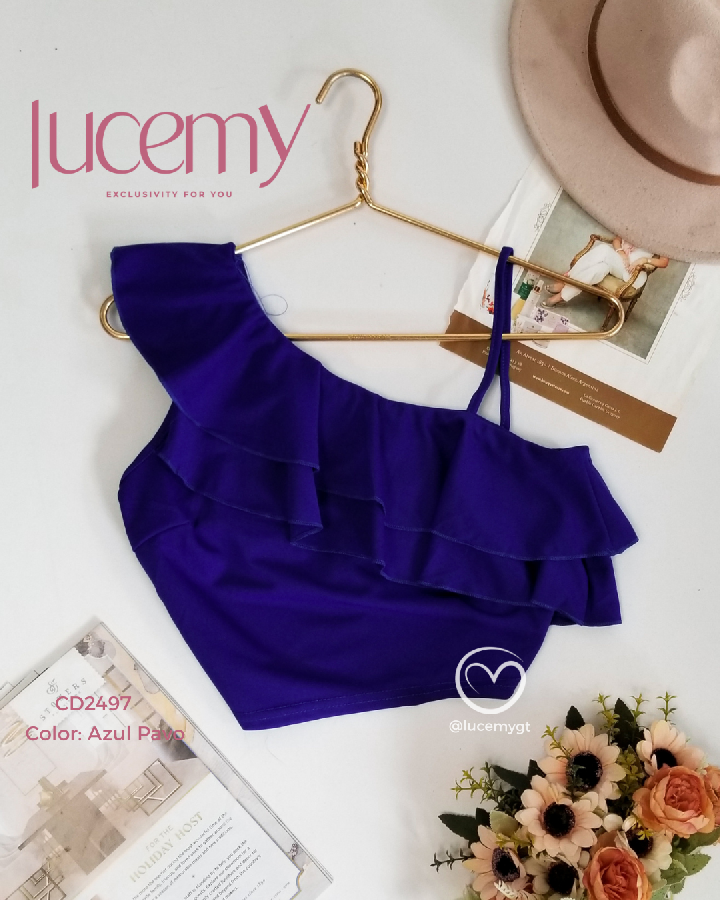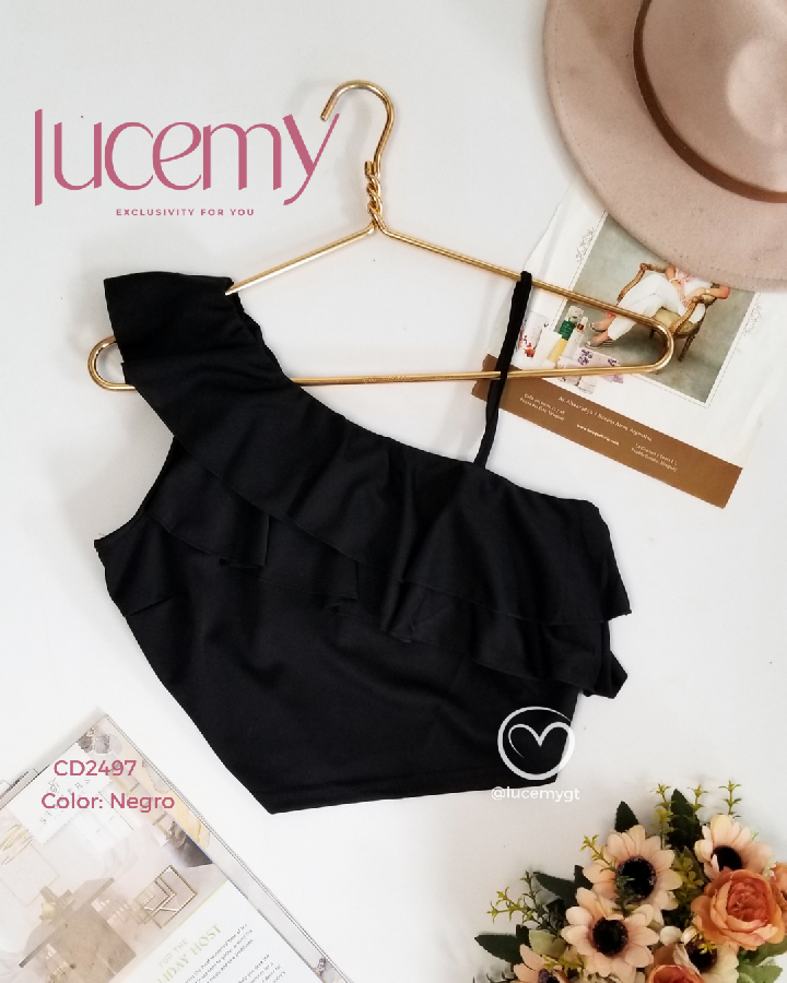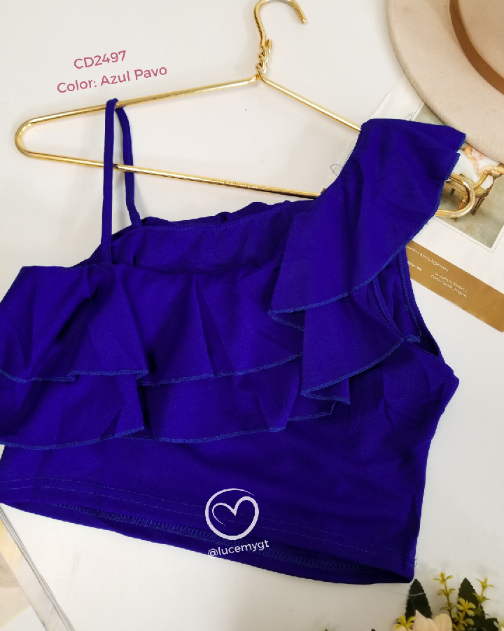 Descripción: Blusa Asimétrica, sin manga tirante de un lado, doble vuelito, muy linda y fácil de combinar. Promoción si llevas dos blusas a solo Q155.00