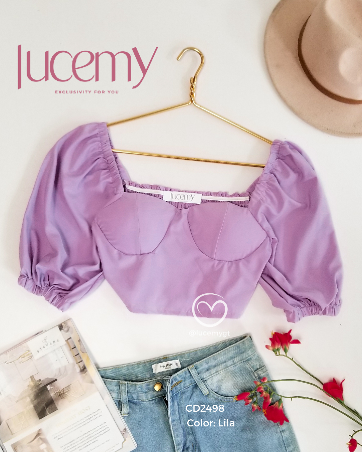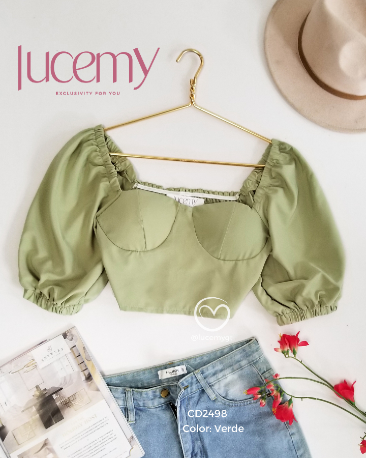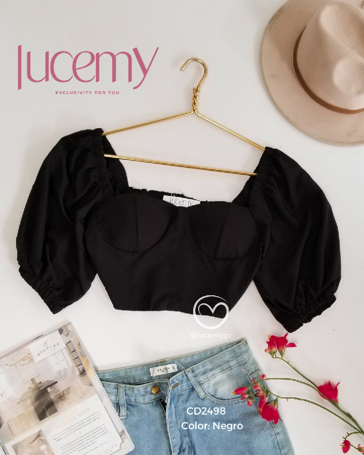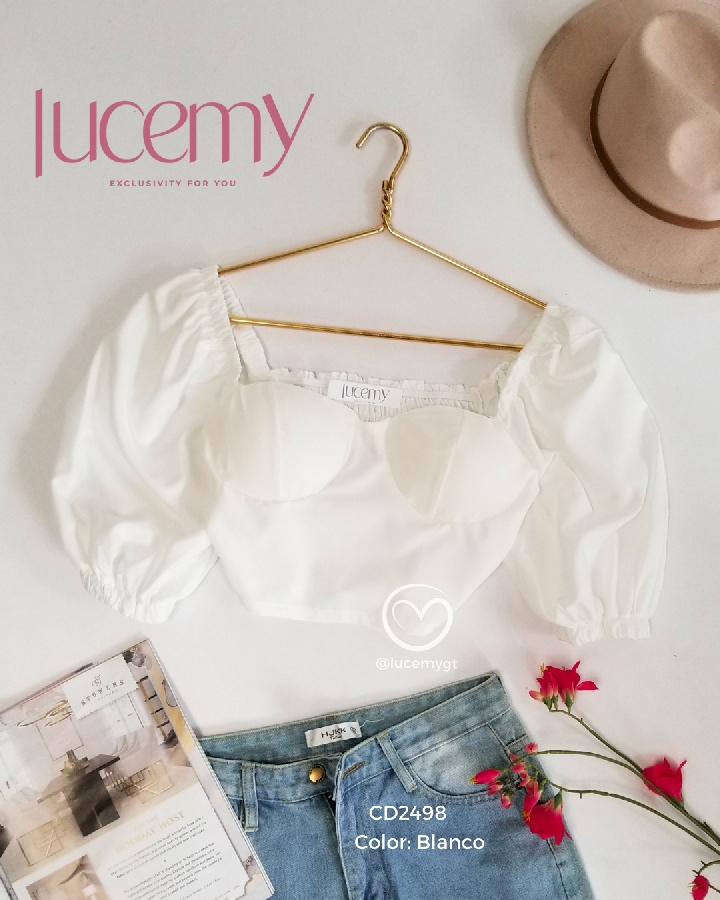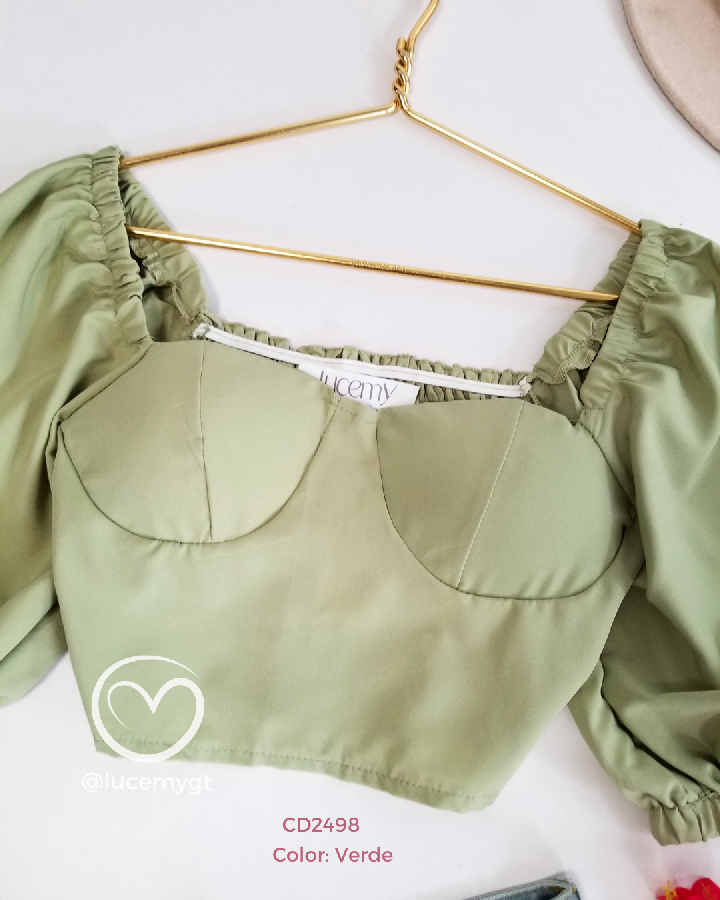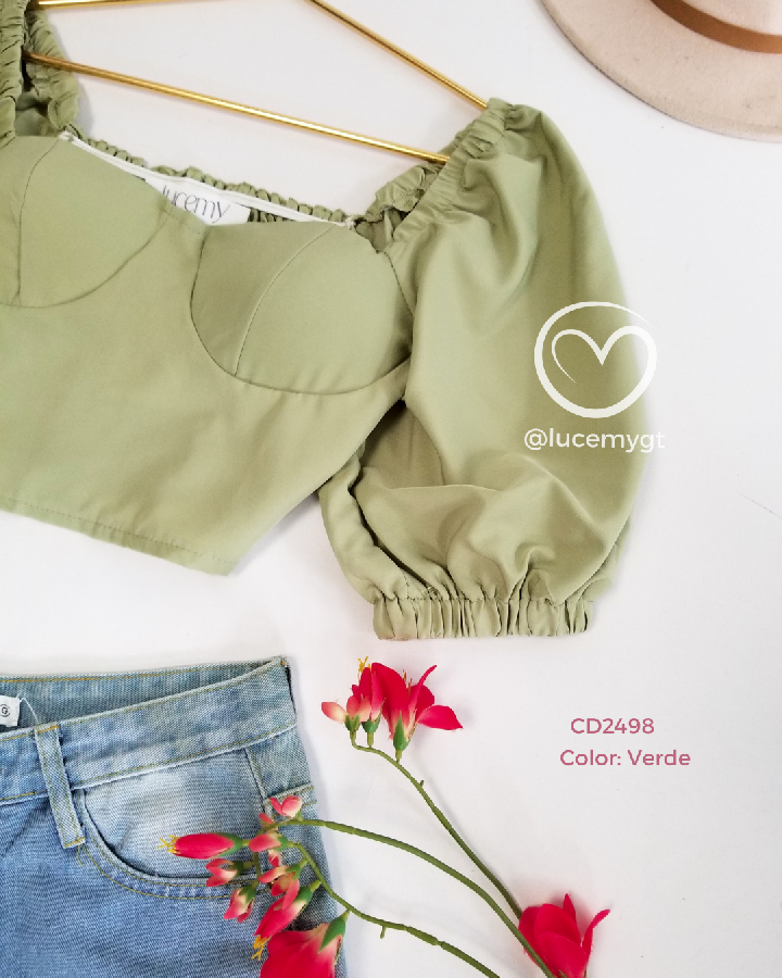 Descripción: Blusa Casual, escote corazón, corpiño, manga 3/4 con elástico, fruncida en la parte de atrás.