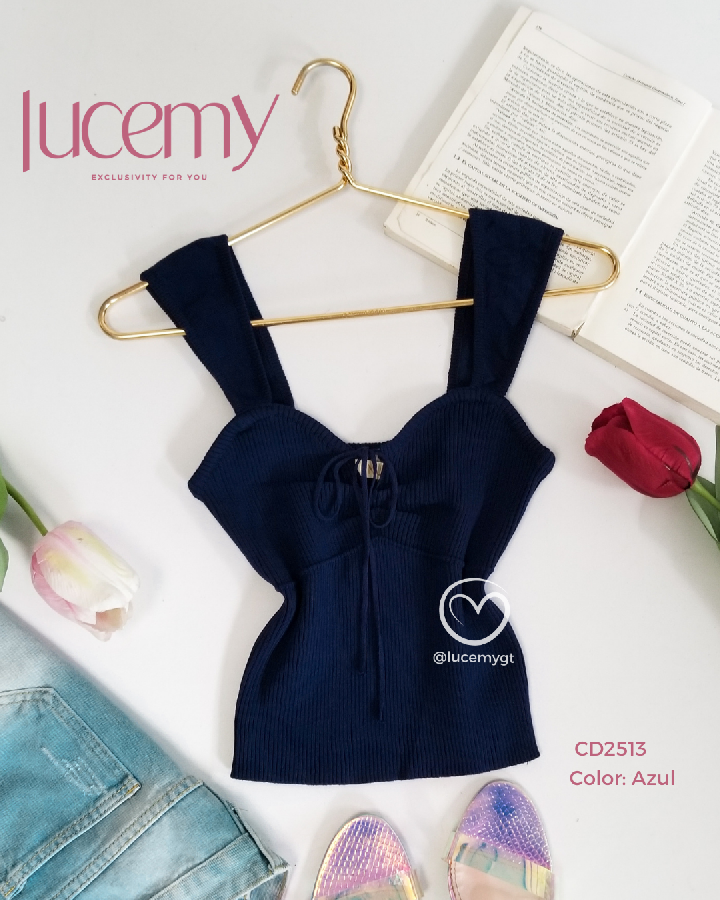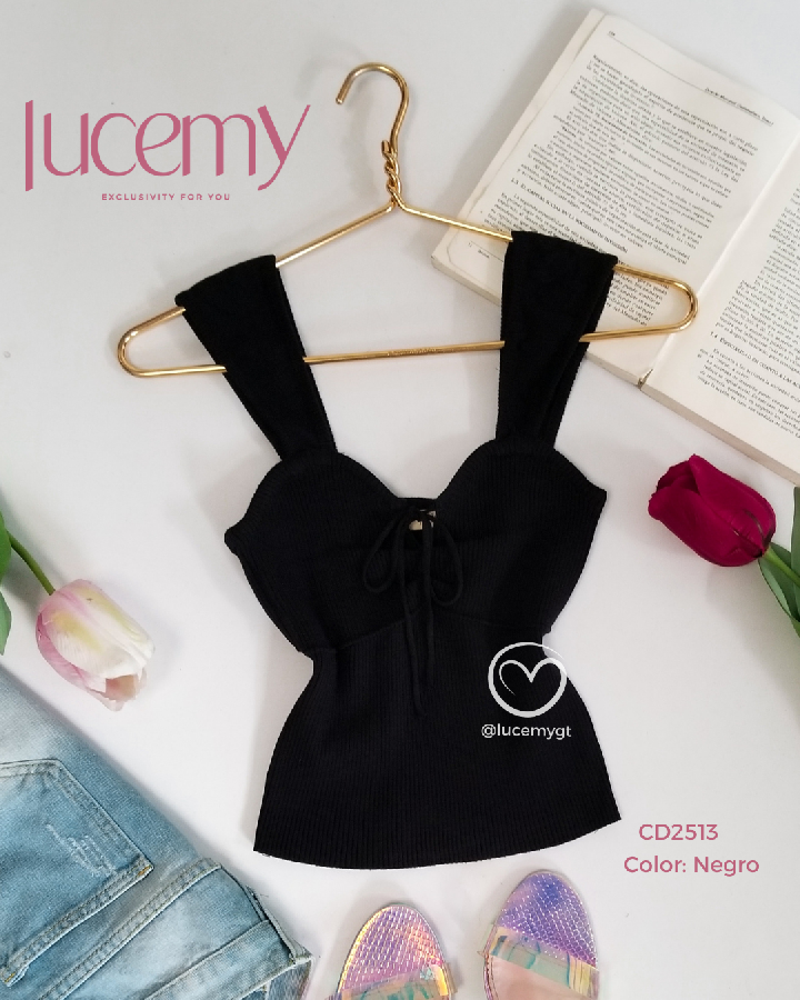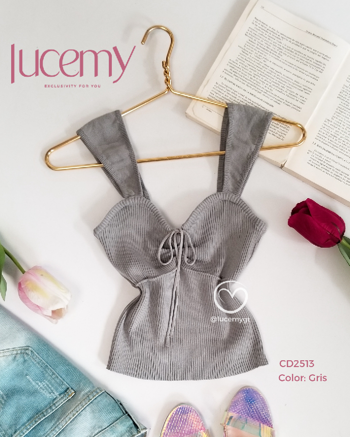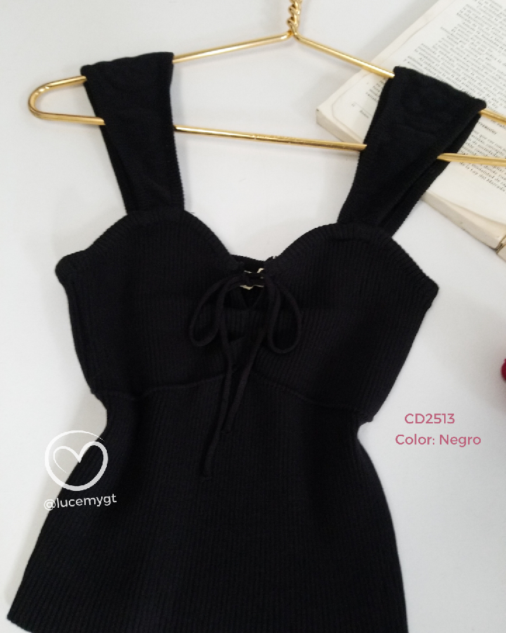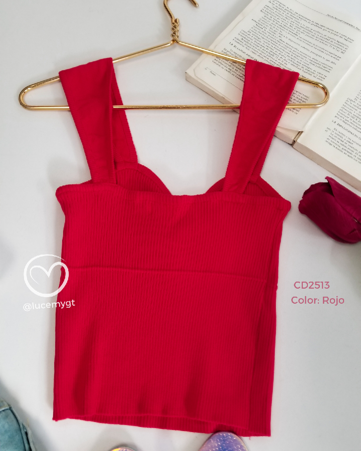 Descripción: Blusa casual, escote corazón, tirantes gruesos, textura canalada