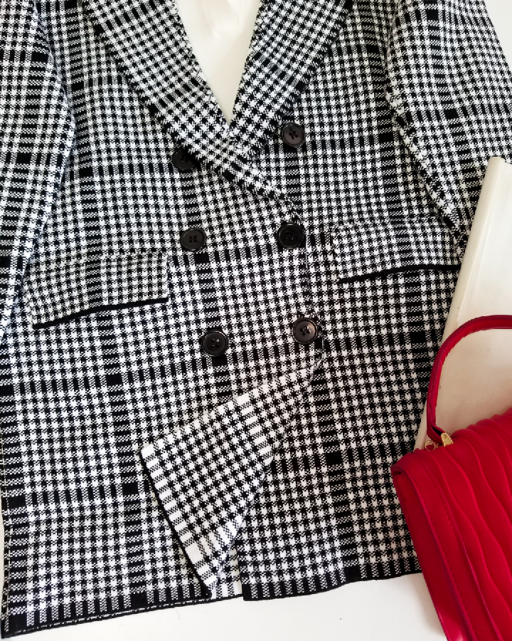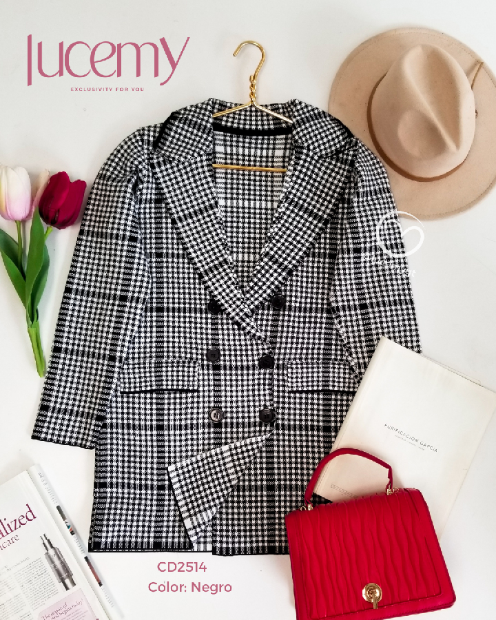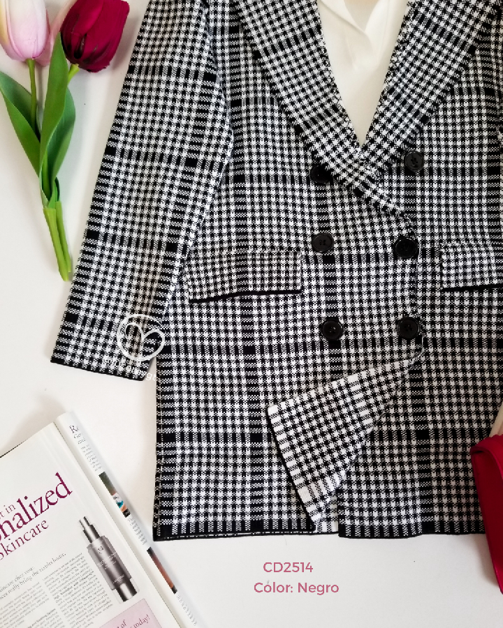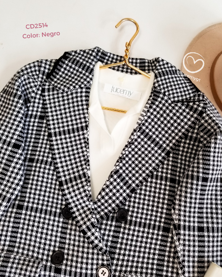 Descripción: Cárdigan cuadros, cuello de solapa, manga larga, muy versátil al combinar.