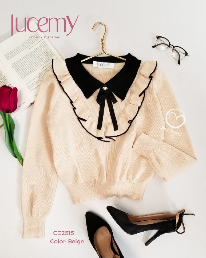 Descripción: Blusa Vintage, con un estilo original y casual, manga larga, listón en la parte de enfrente, textura canalada estreche.
