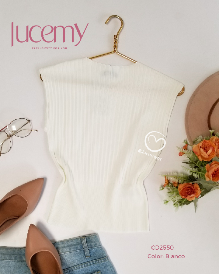 Descripción: Blusa canalada, cuello u, sin mangas, muy cómoda y versátil de usar.