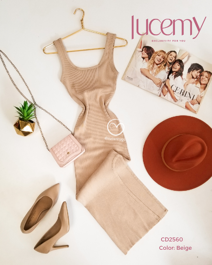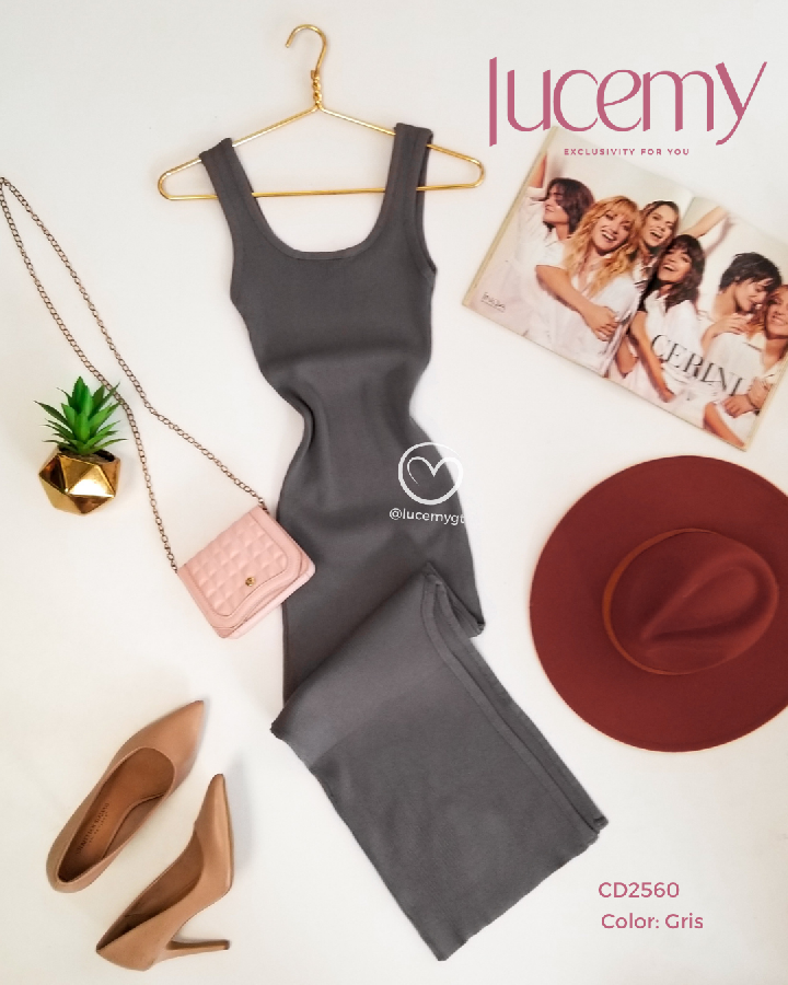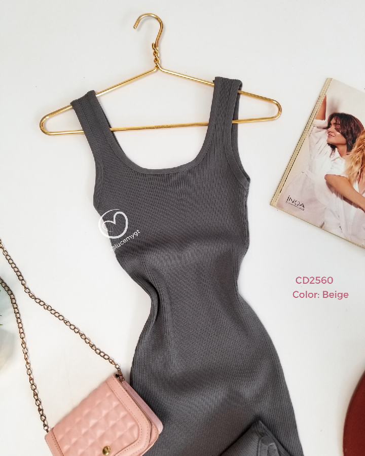 Descripción: Vestido tallado, tirantes, textura canalada