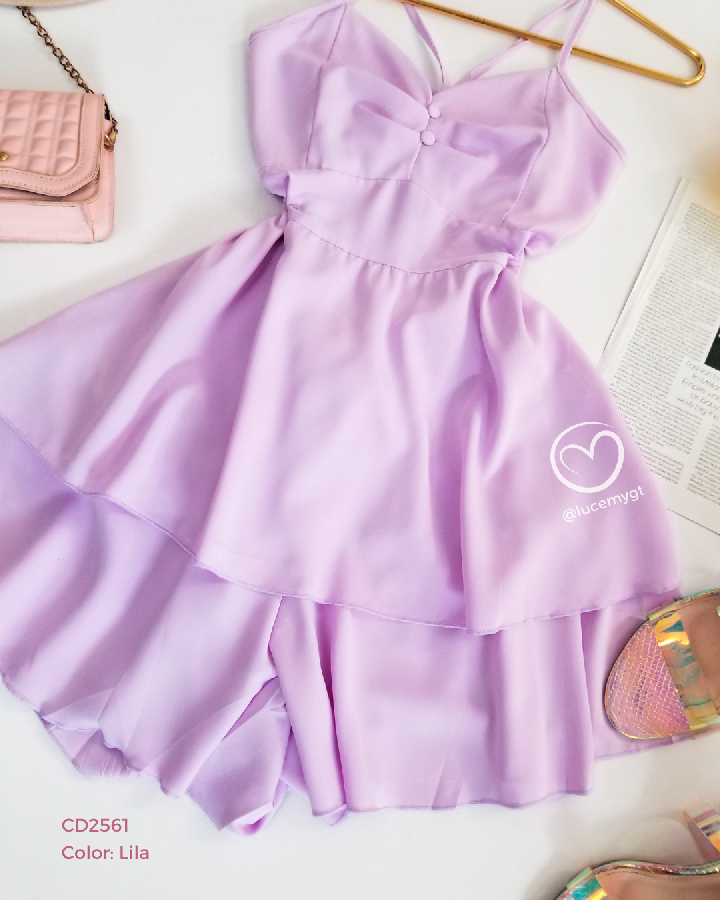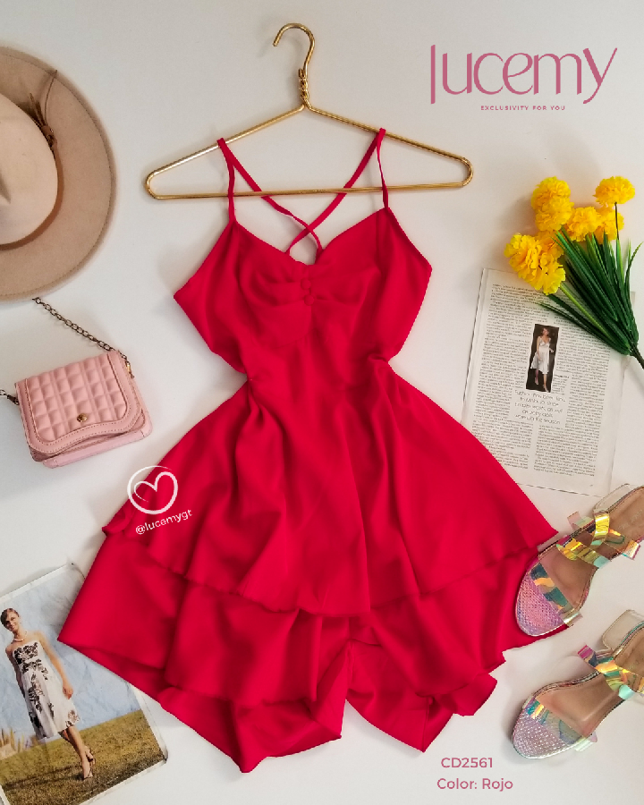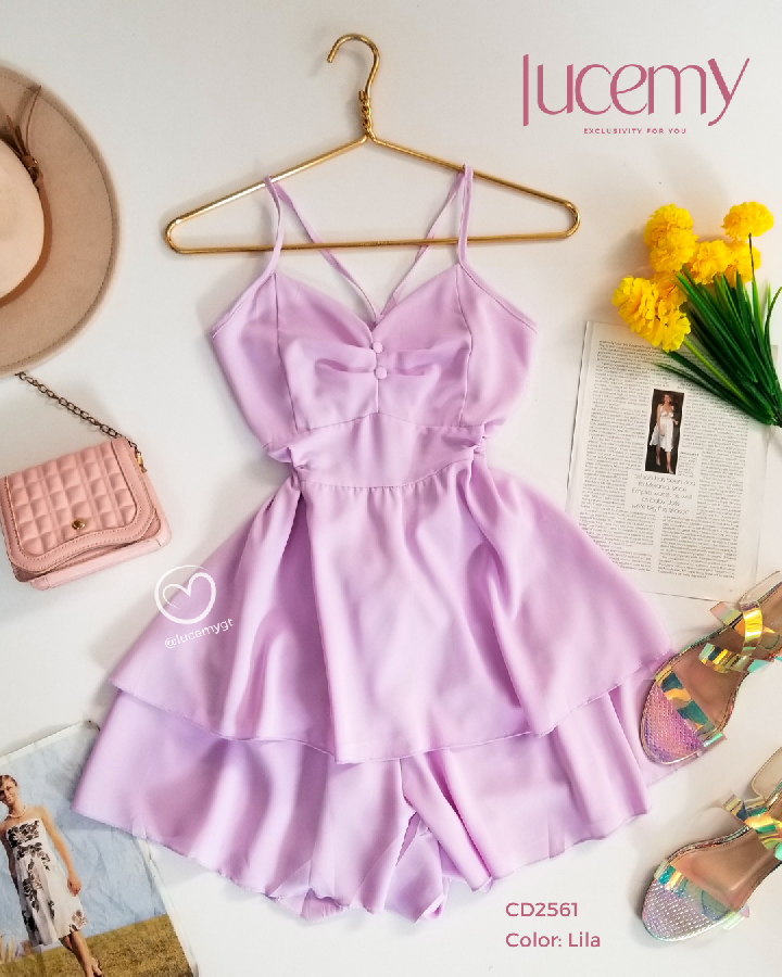 Descripción: Romper Unicolor, tirantes, escote corazón, elástico en la cintura en la parte de atrás