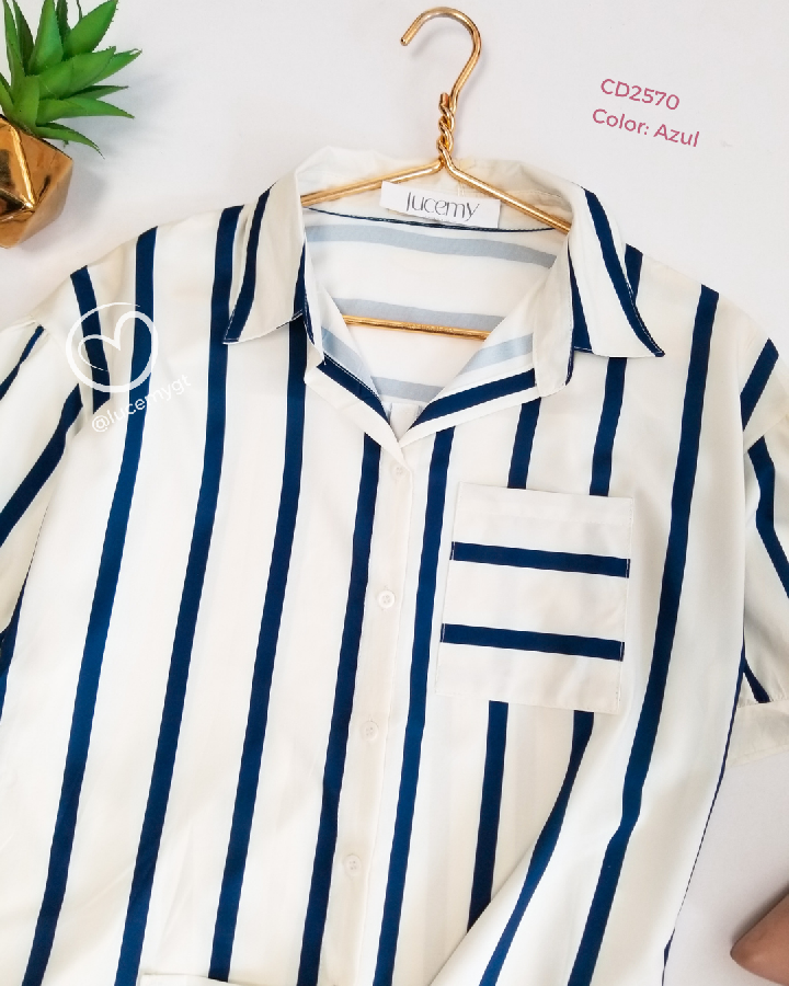 Descripción: Blusa Líneas, cuello camisero, manga corta, botones en la parte de enfrente. promoción si llevas dos blusas a solo por Q185.00