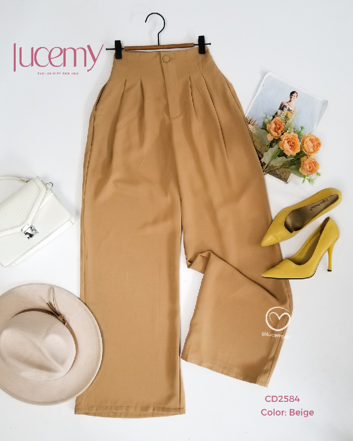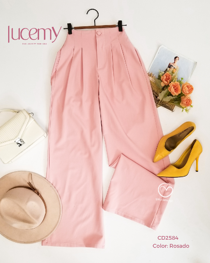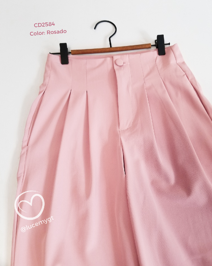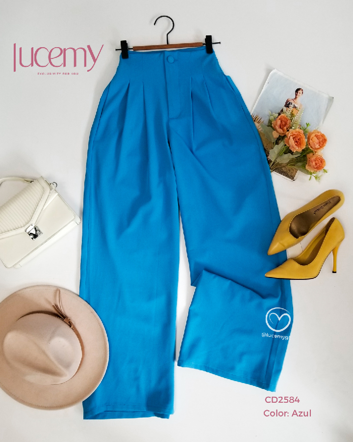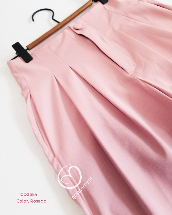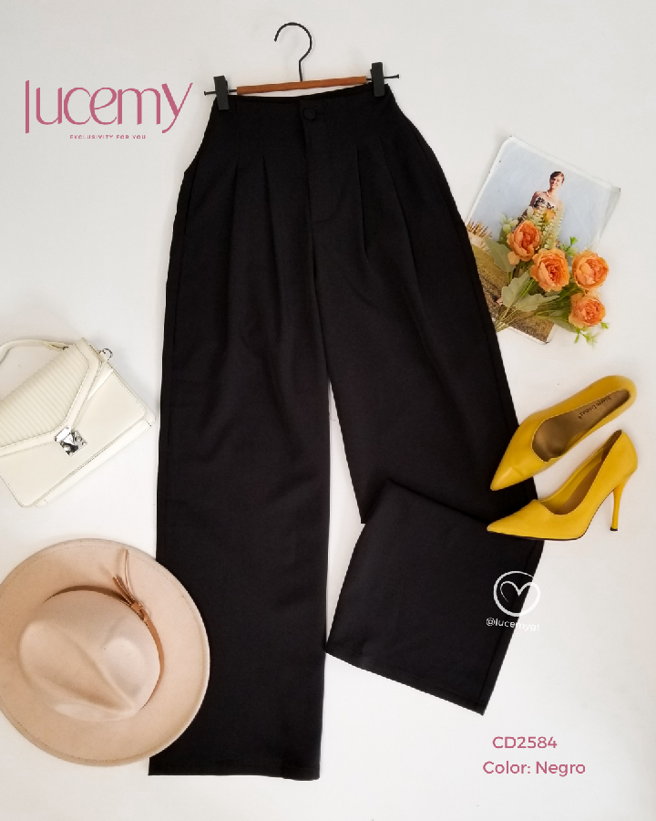 Descripción: Pantalón Palazo, cintura alta, botón forrado, bolsillos a los lados