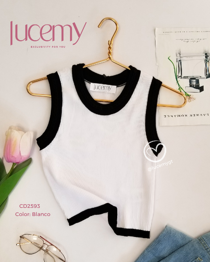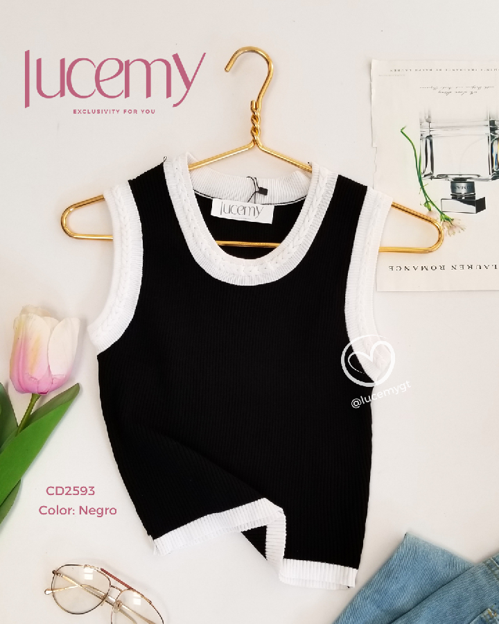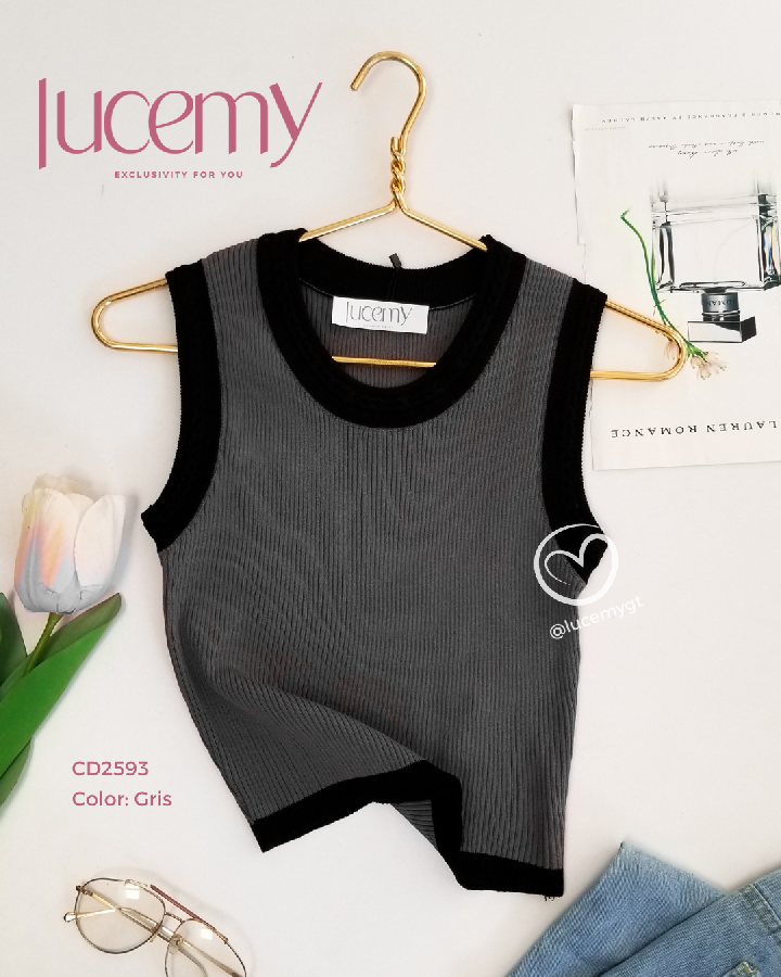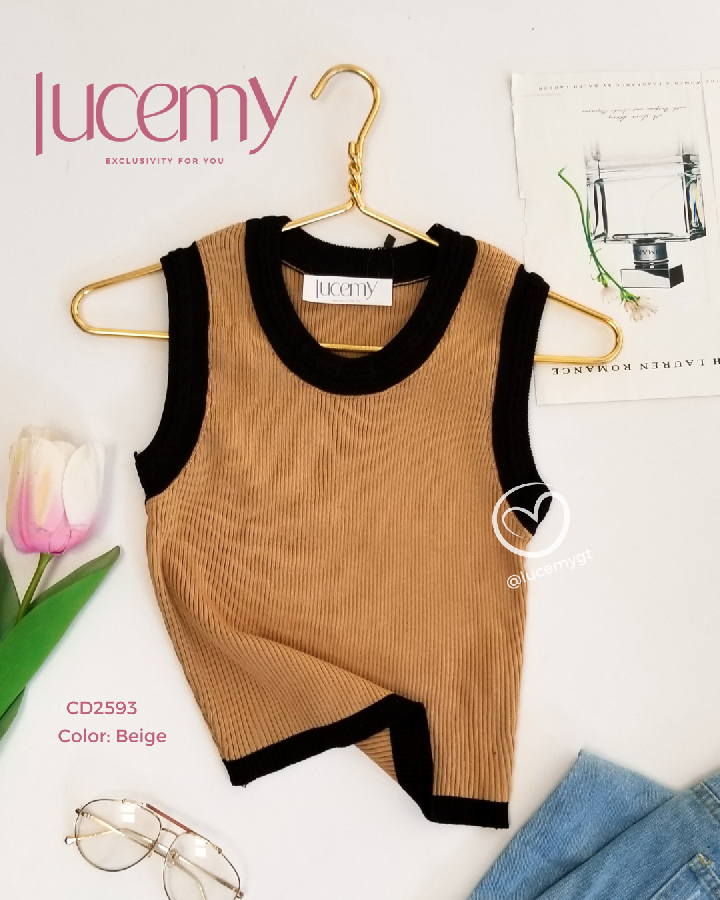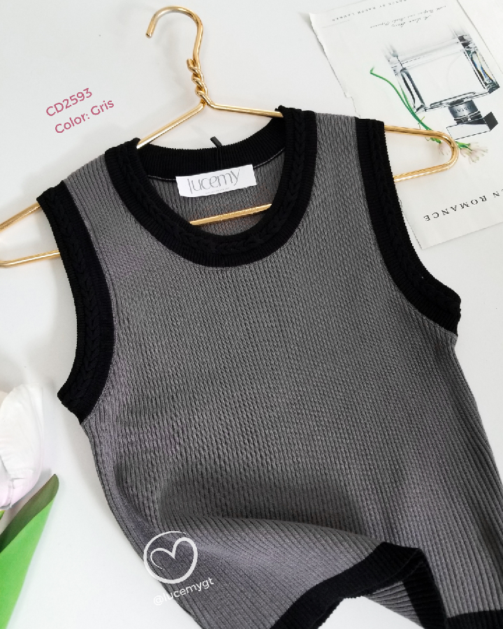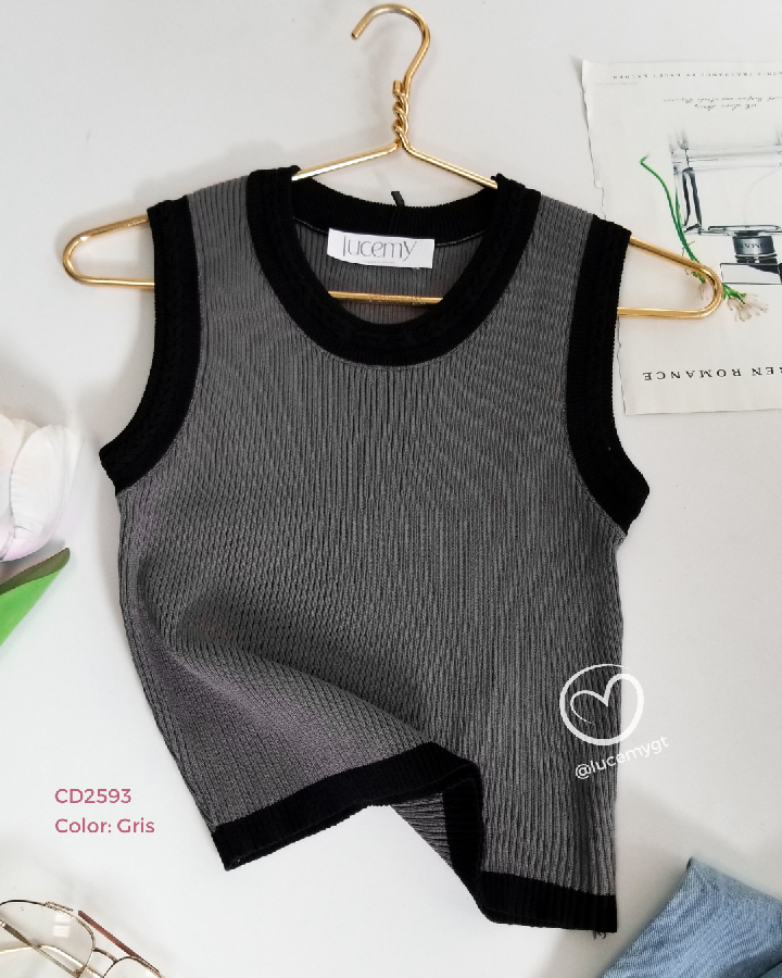 Descripción: Blusa Casual, con diseño de trenzas, sin mangas, textura canalada
