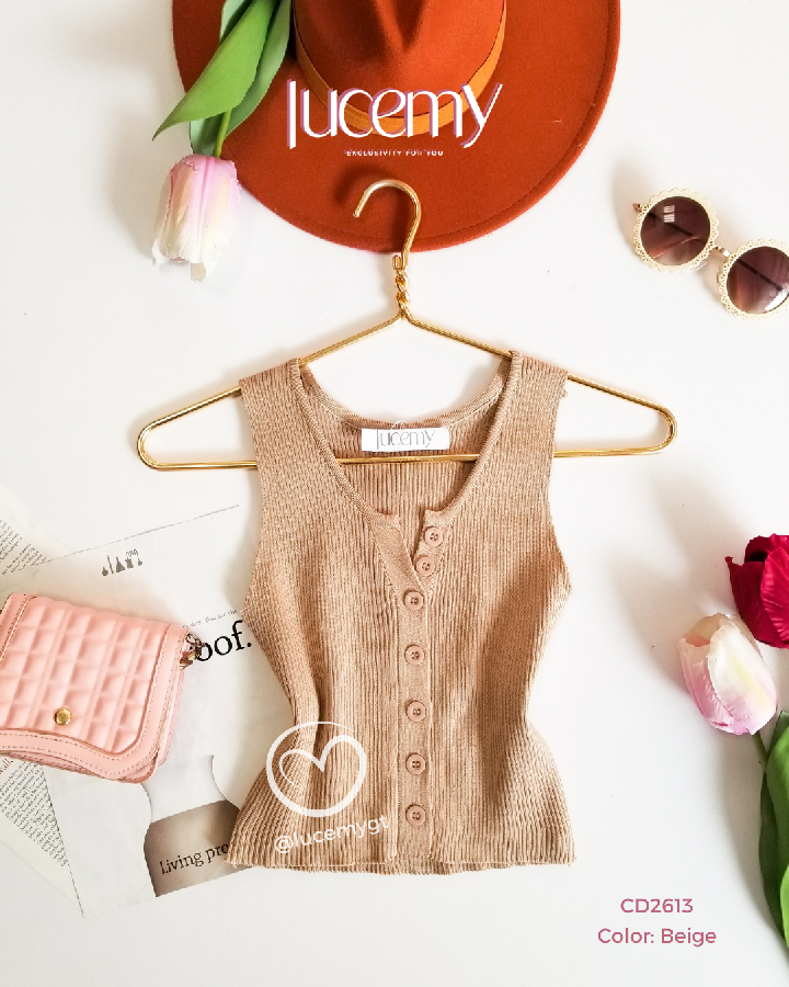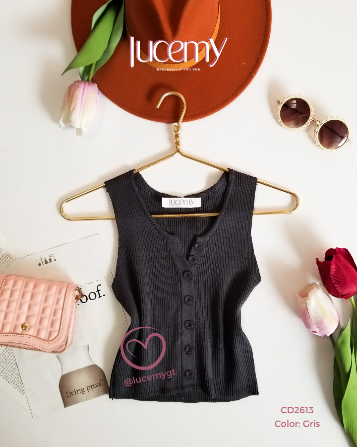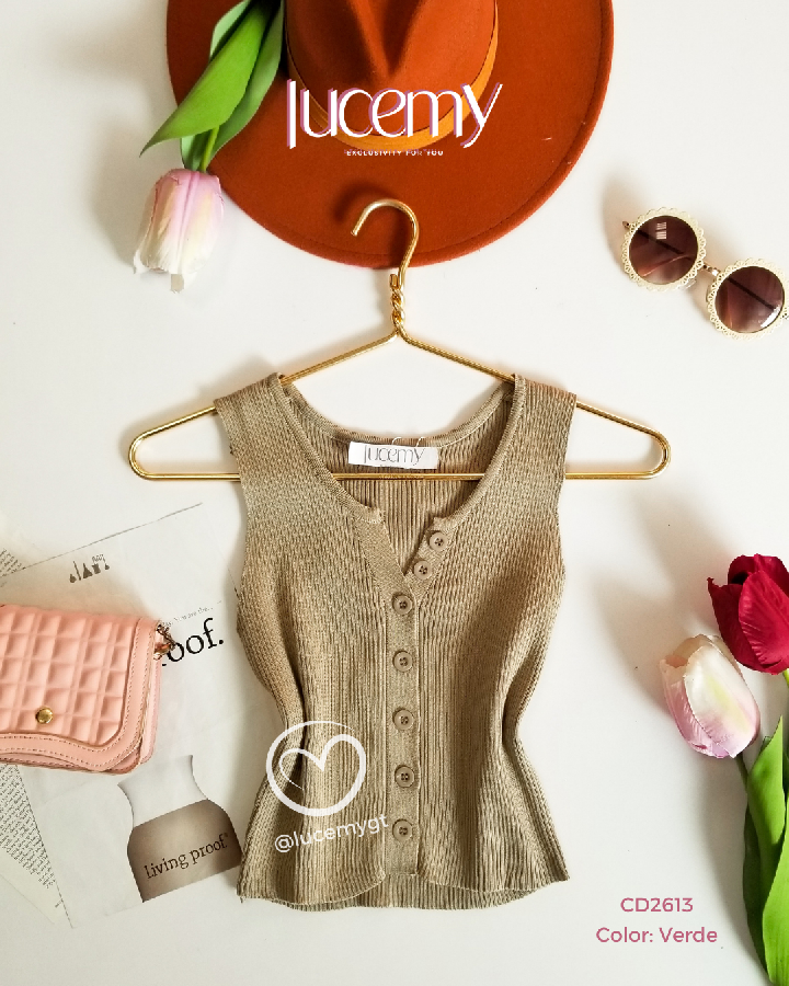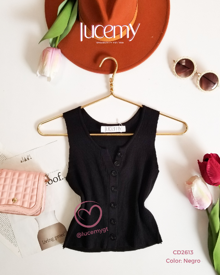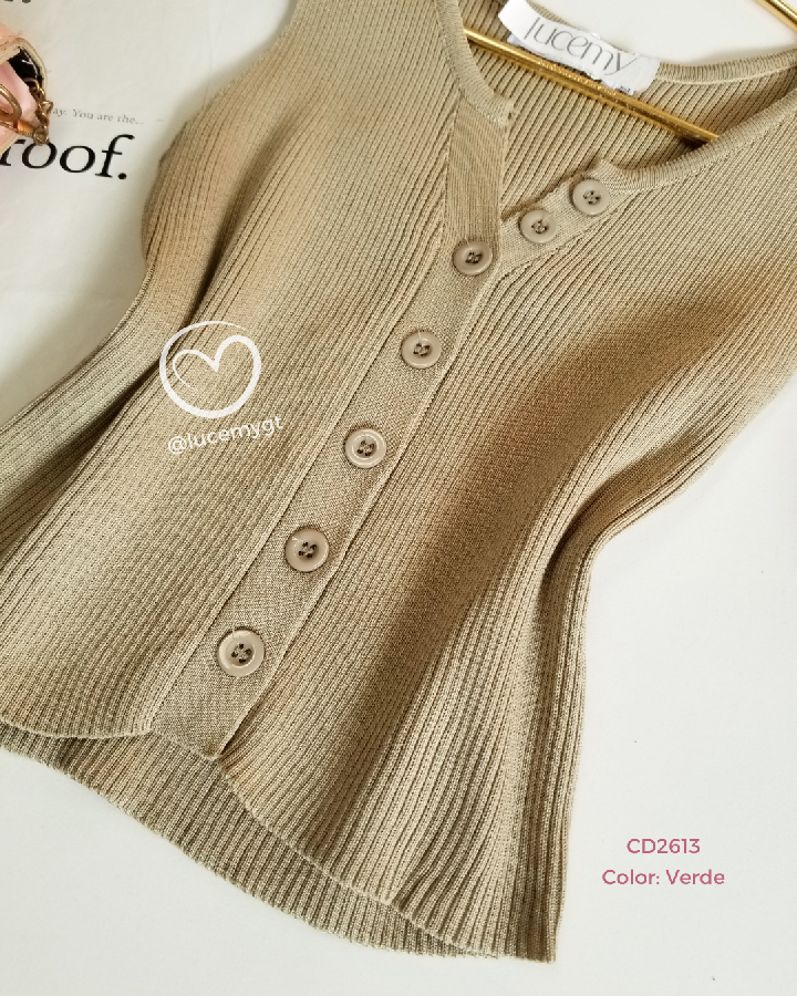 Descripción: Blusa Canalada, sin mangas, escote V, con botones en la parte de enfrente.