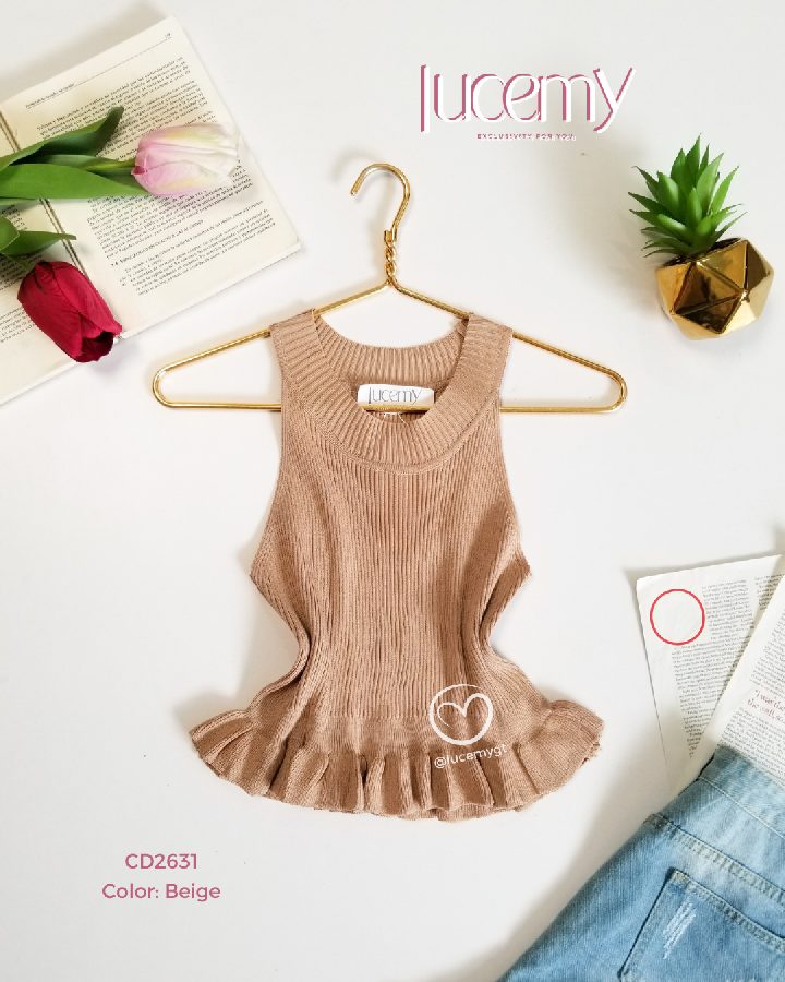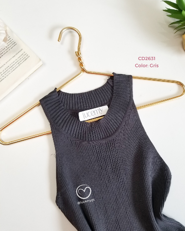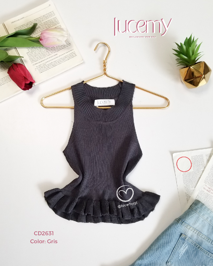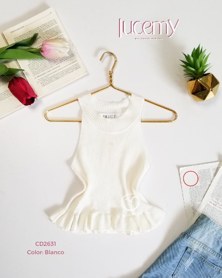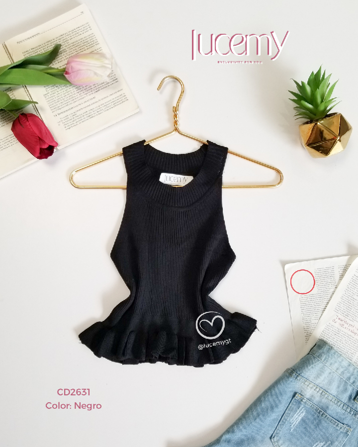 Descripción: Blusa canalada, sin mangas cuello redondo, vuelitos en la parte de abajo