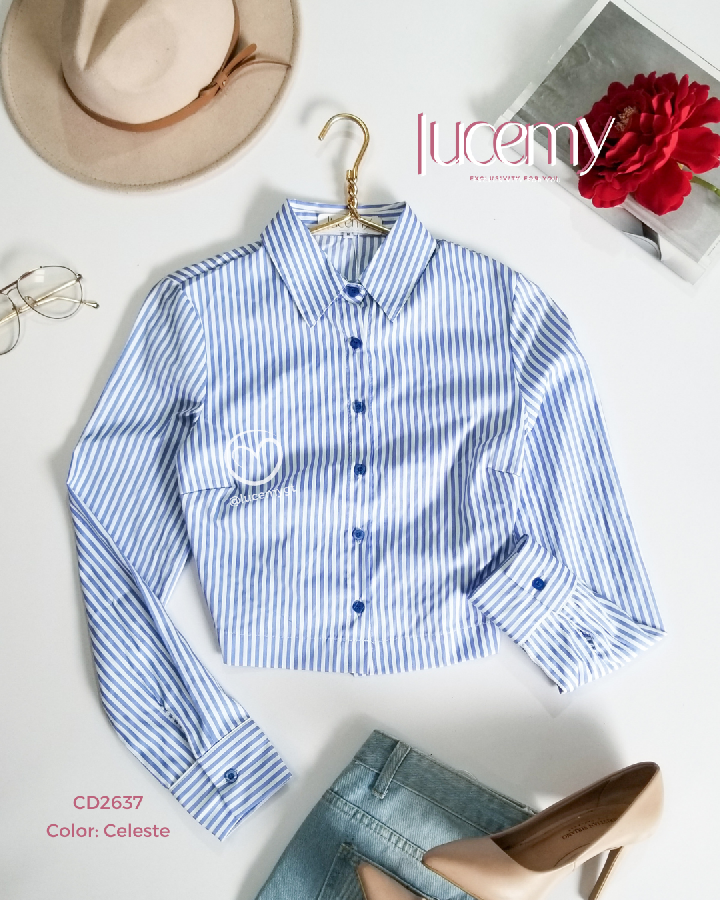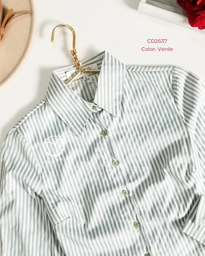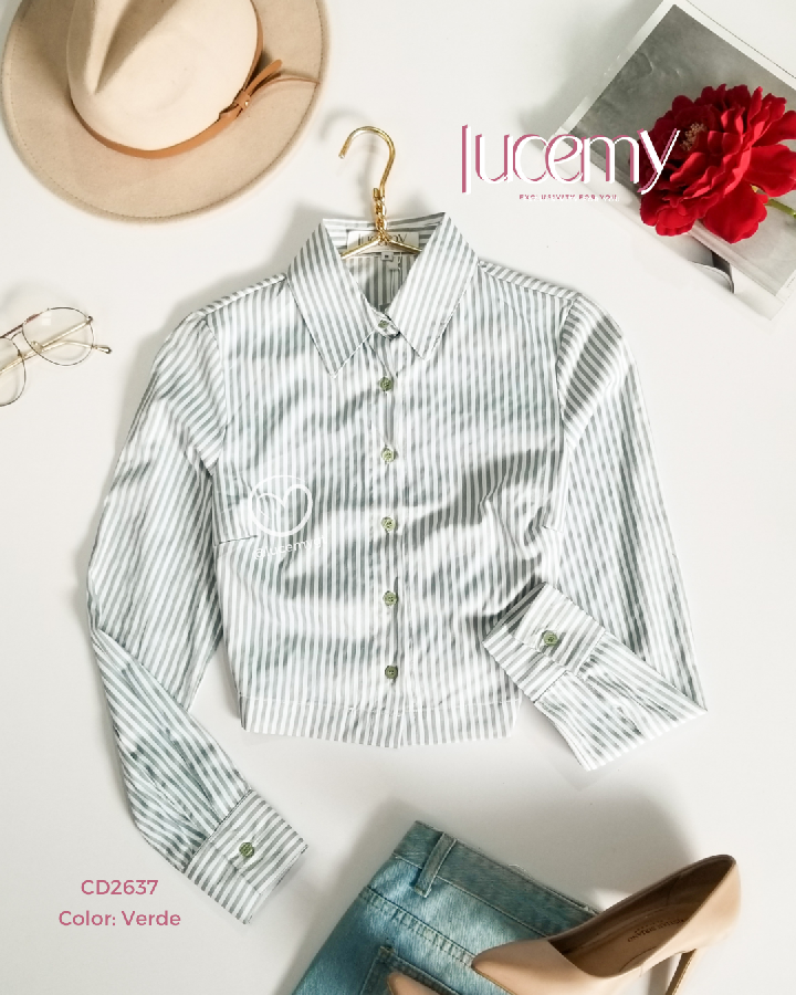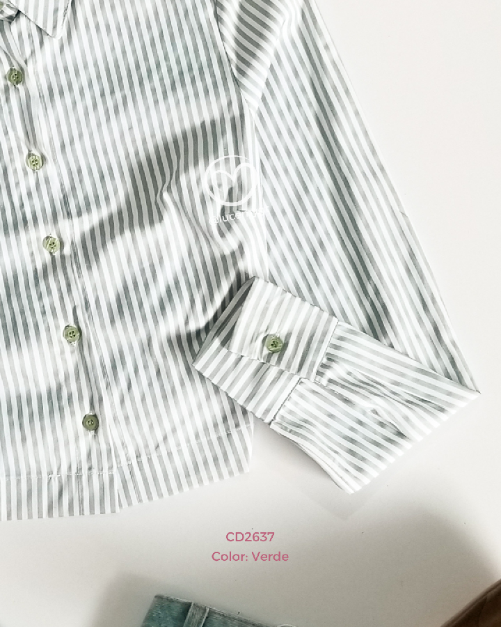 Descripción: Blusa de líneas, cuello camisero, botones en la parte de enfrente, manga larga, tiene elástico en la parte de atrás