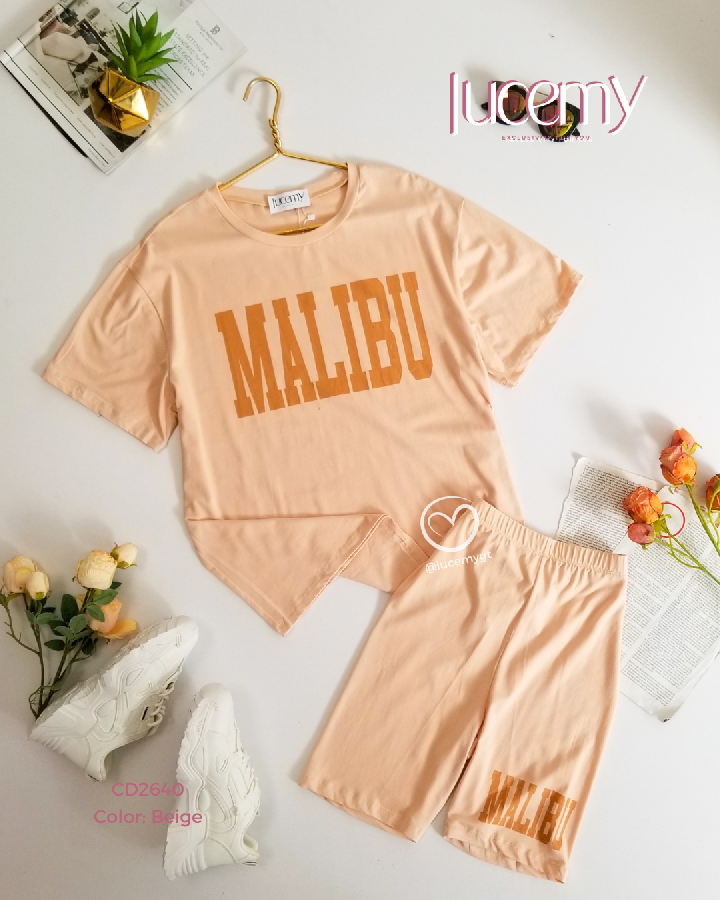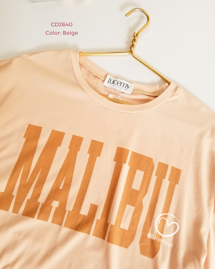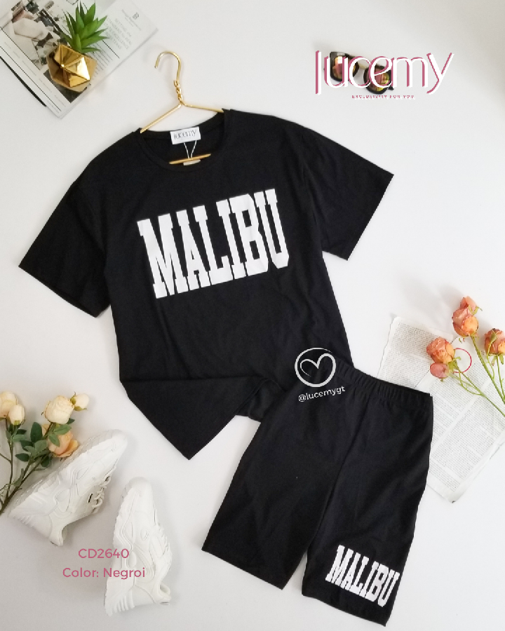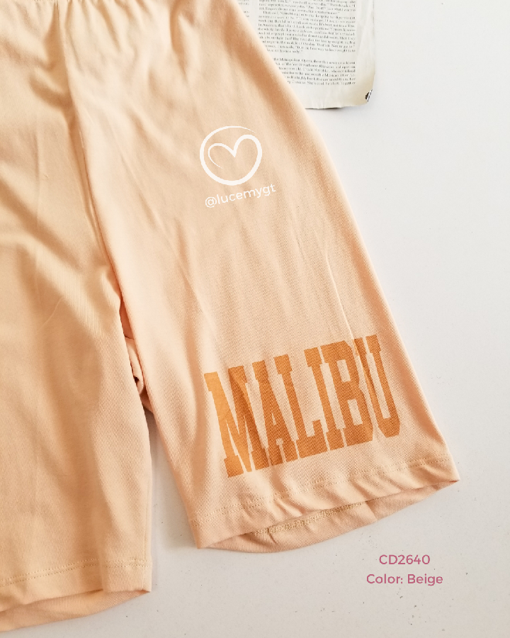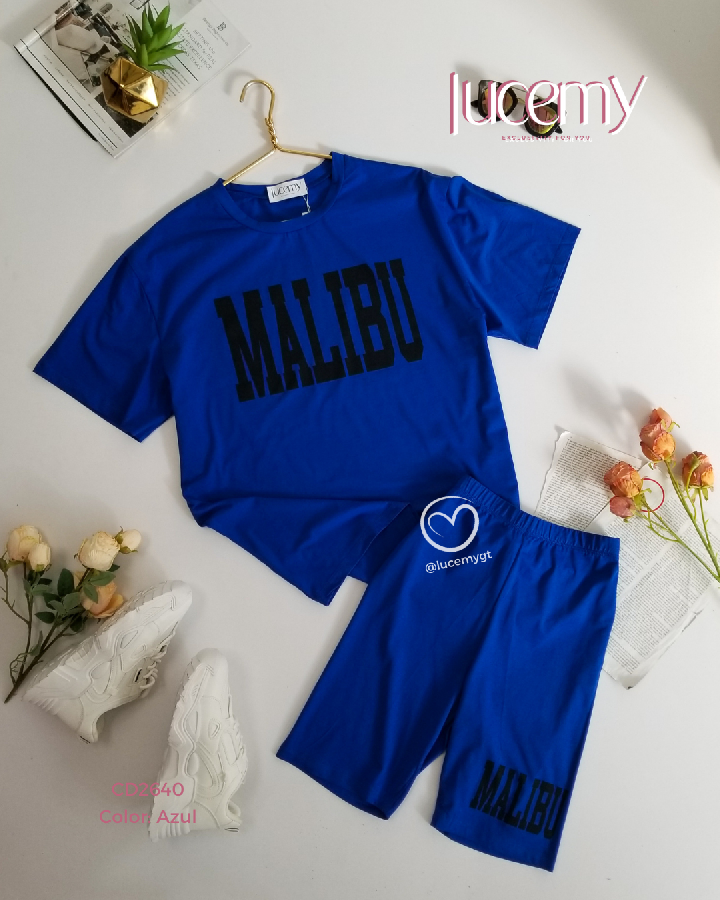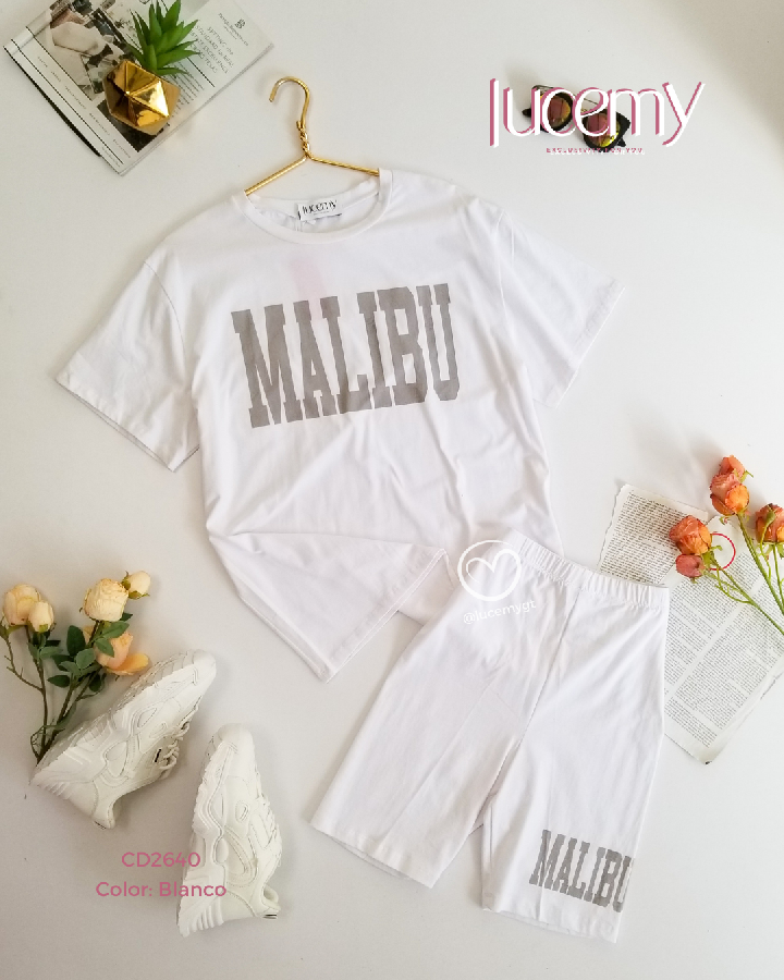 Descripción: Conjunto Malibu, playera cuello rendo, manga corta, short de cintura alta