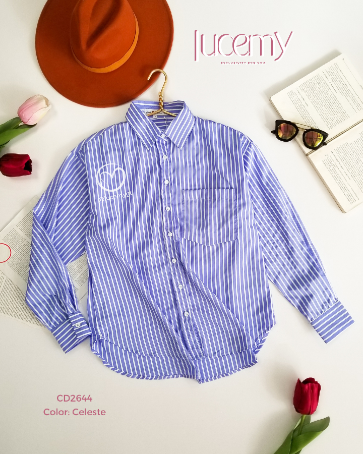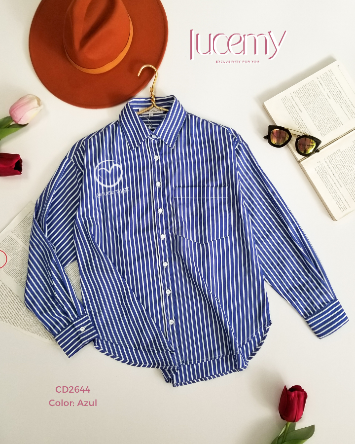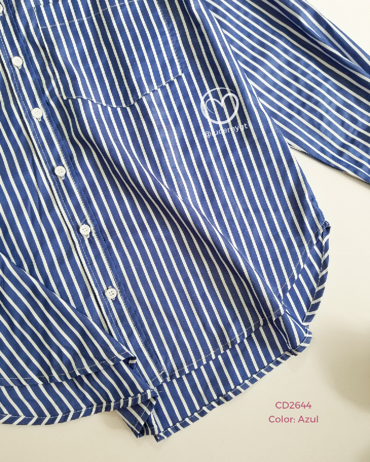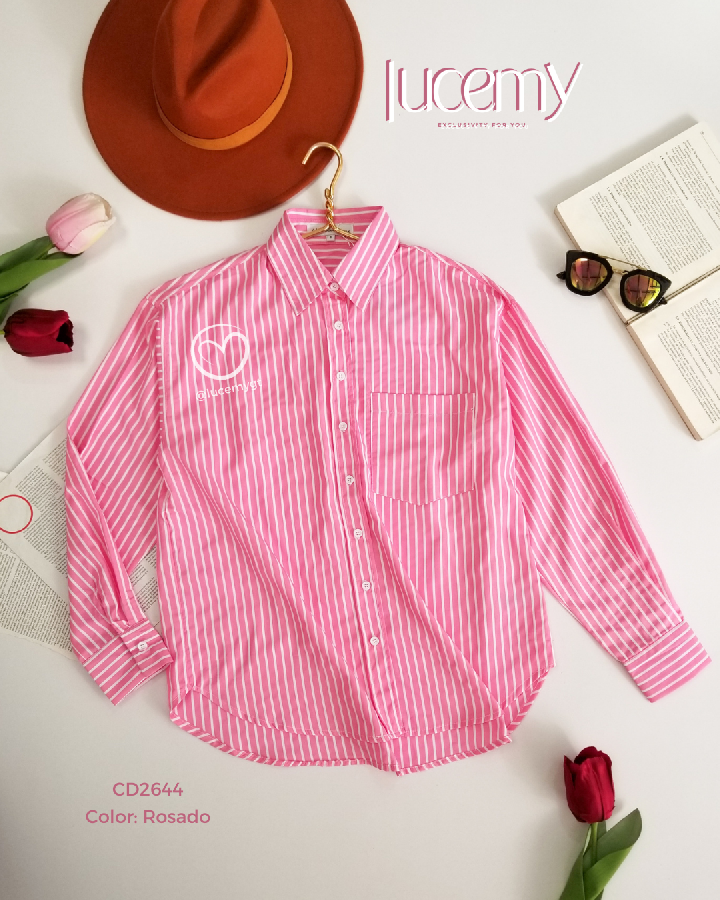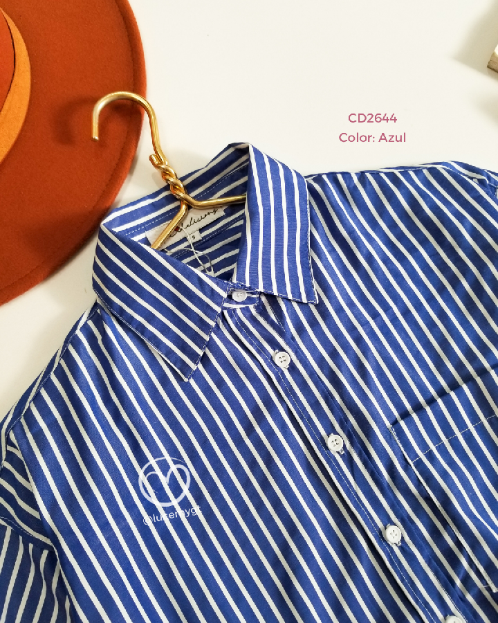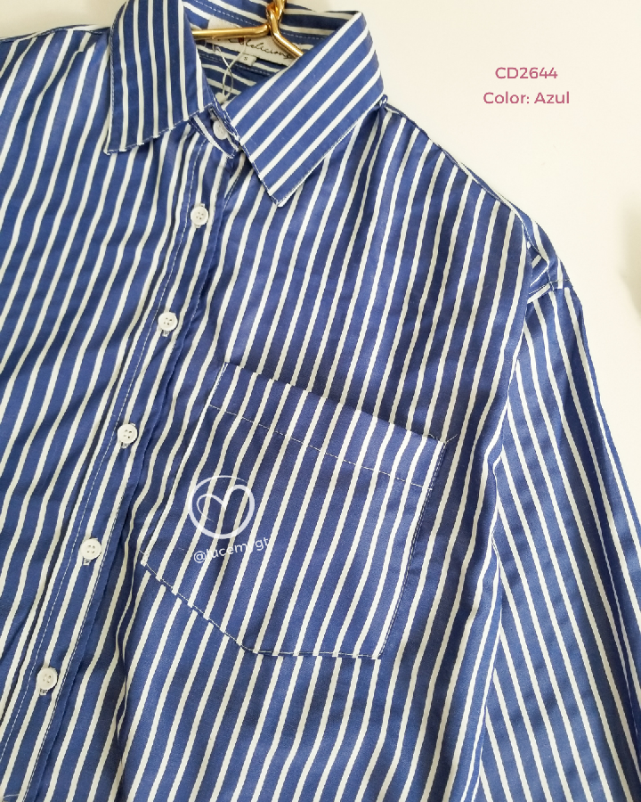 Descripción: Blusa Líneas, cuello camisero, botones en la parte de enfrente, bolsillo a lado.