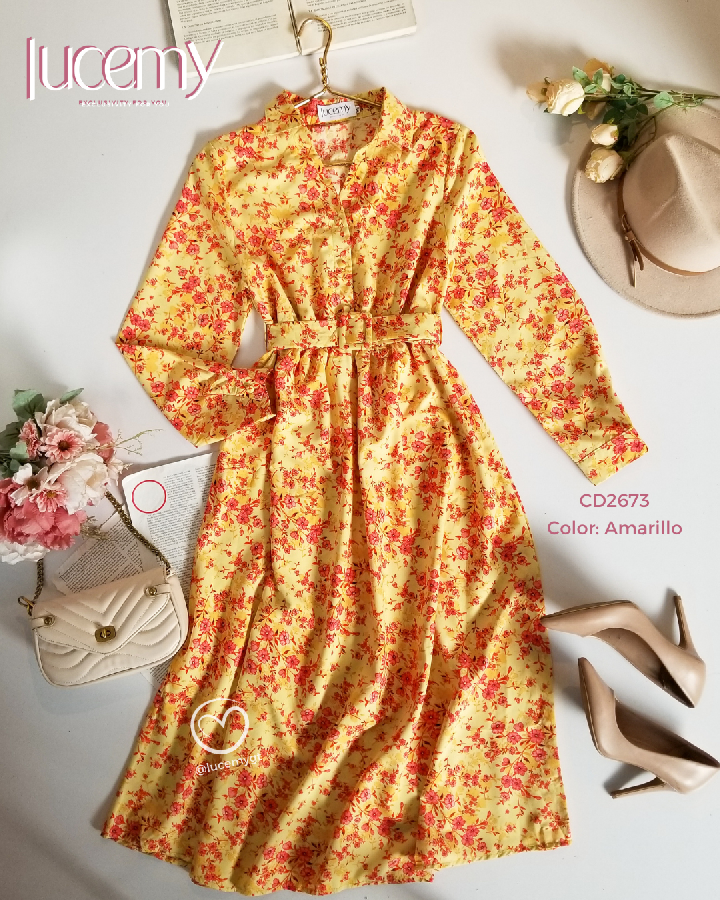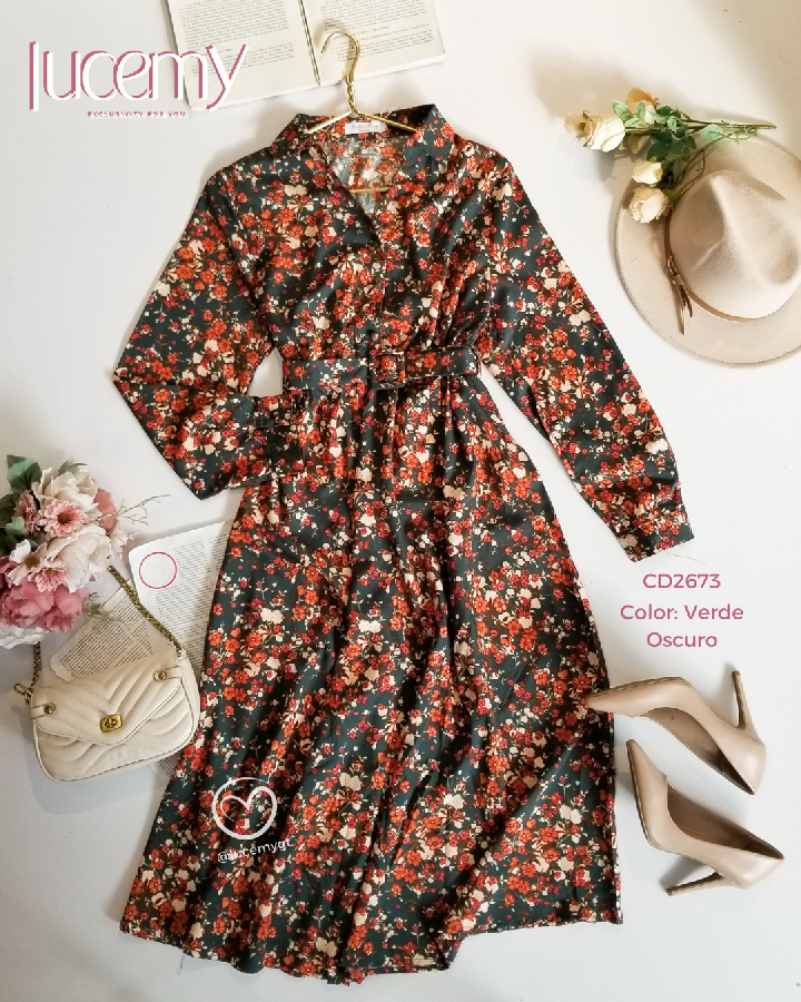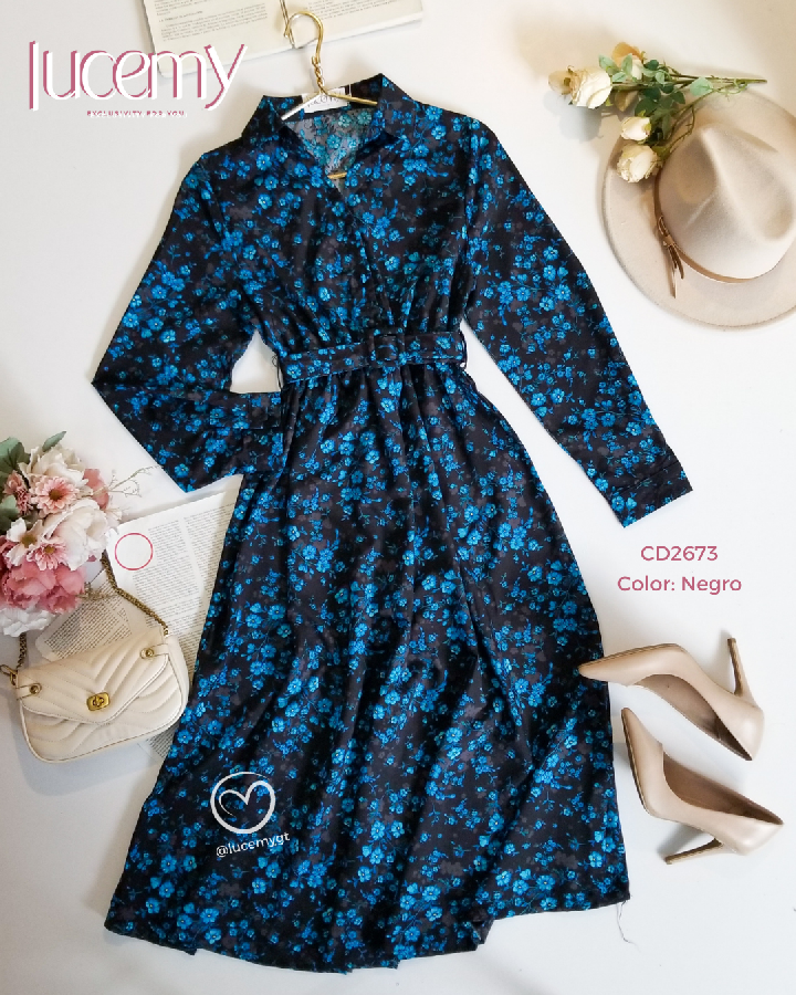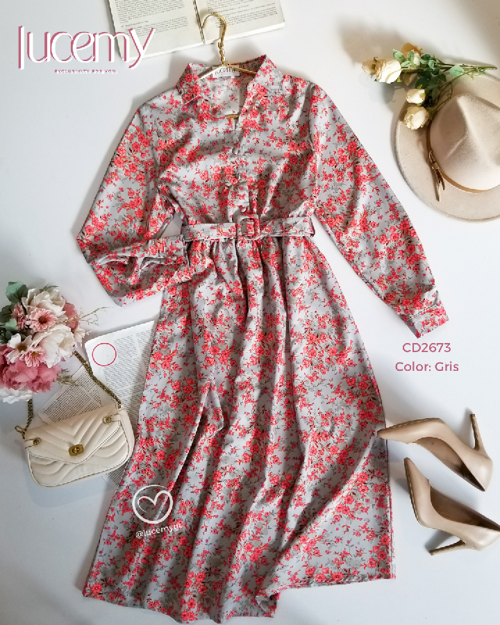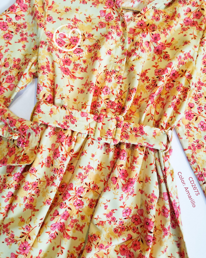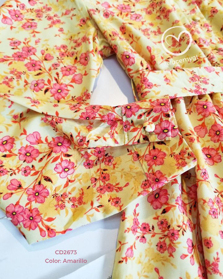 Descripción: Vestido Flores, botones en la parte de enfrente, elástico en la cintura cinta ajustable de la misma tela.