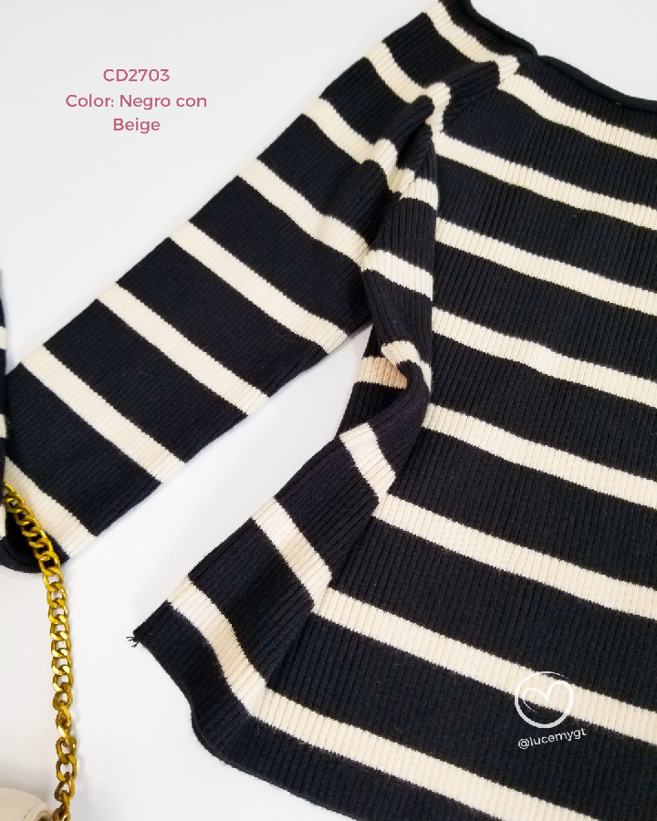 Descripción: Blusa de líneas, off shoulder, manga larga, textura acanalada. Promoción si llevas dos blusas a solo Q185.00