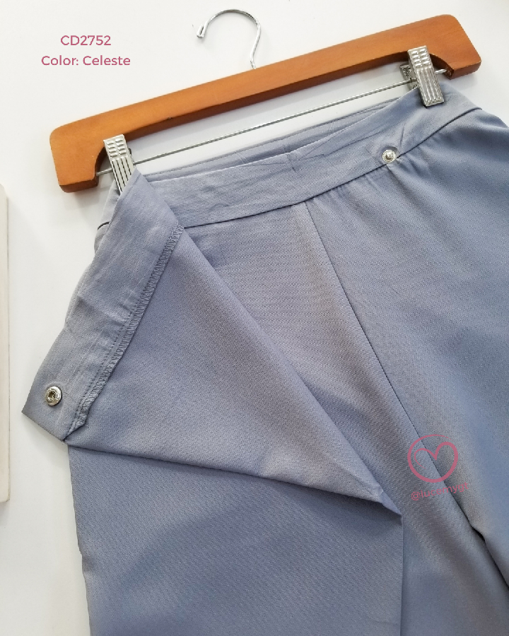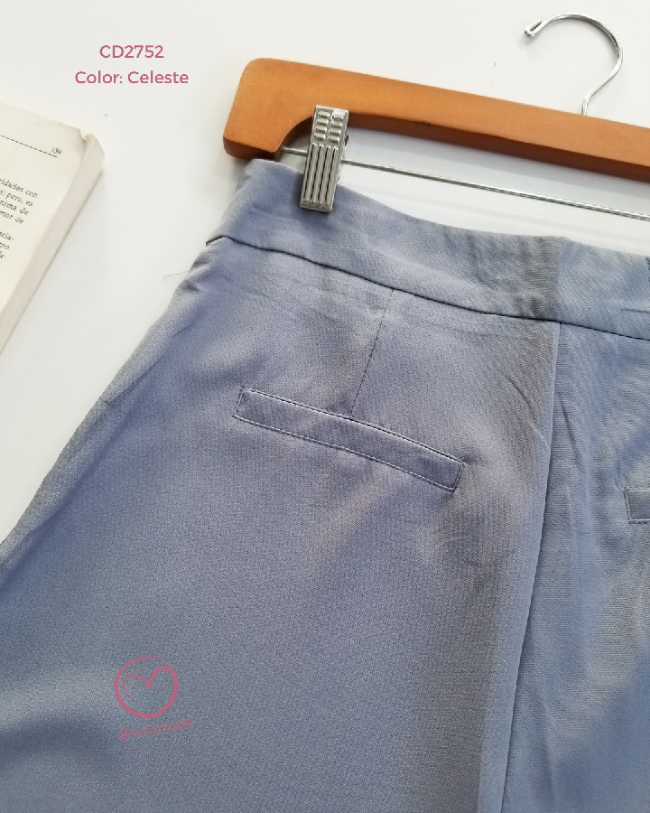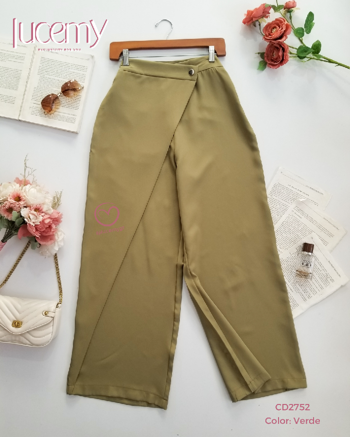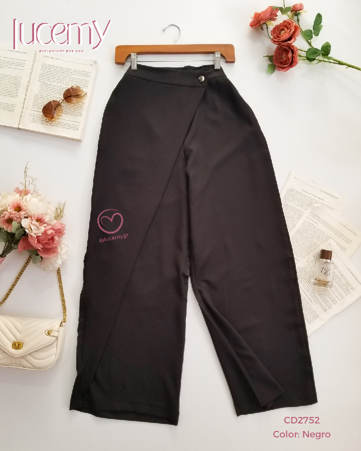 Descripción: Pantalón casual, cintura alta, botón traslapado, cremallera de lado.