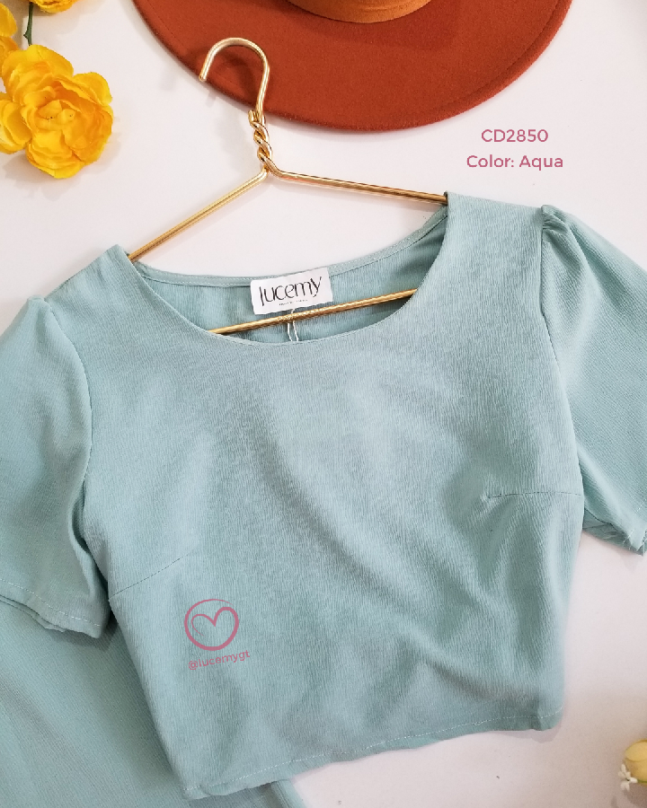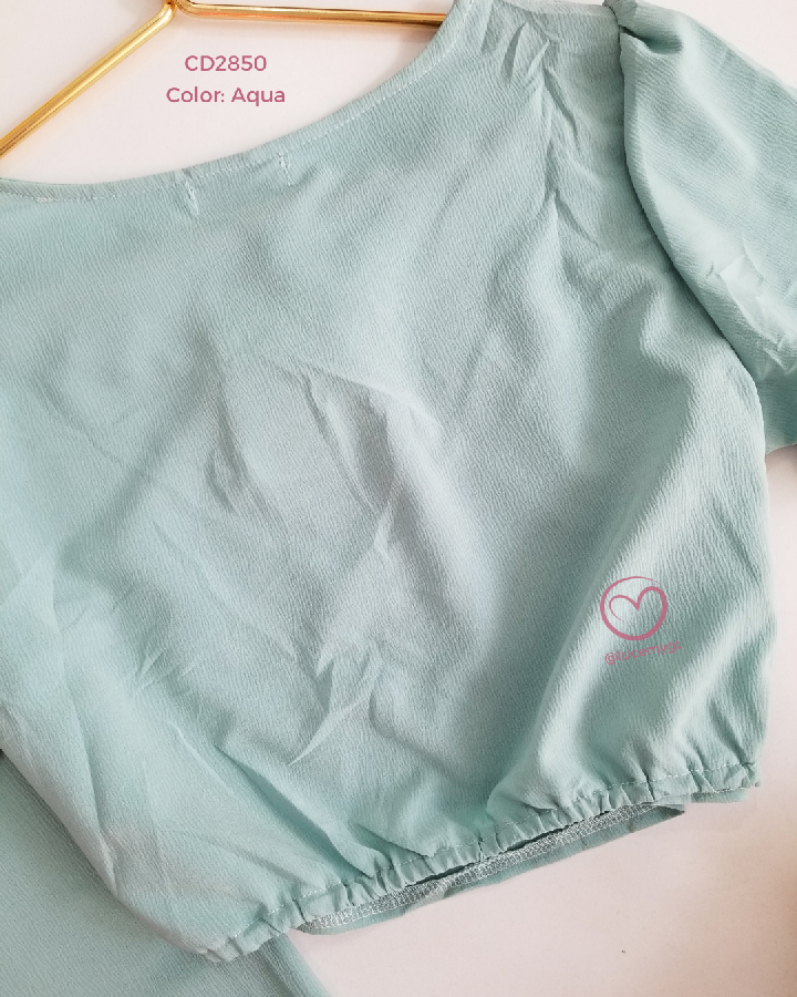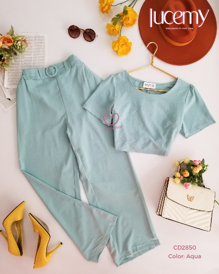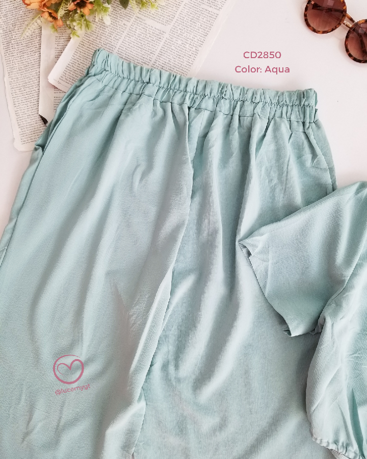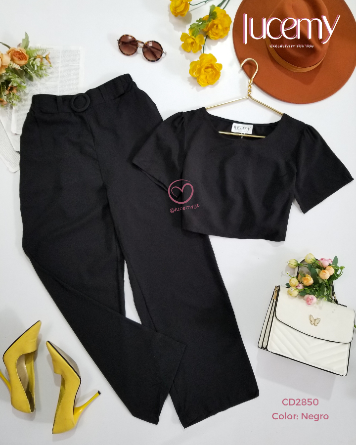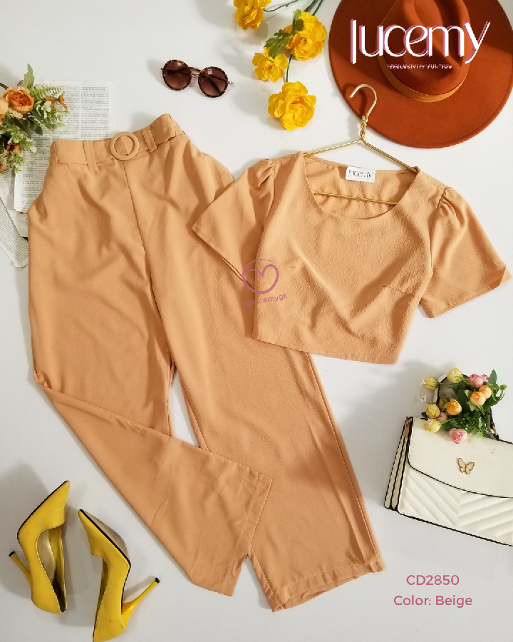 Descripción: Bello conjunto de dos piezas de blusa cuello redondo, manga corta, pantalón con elástico en la parte de atrás.