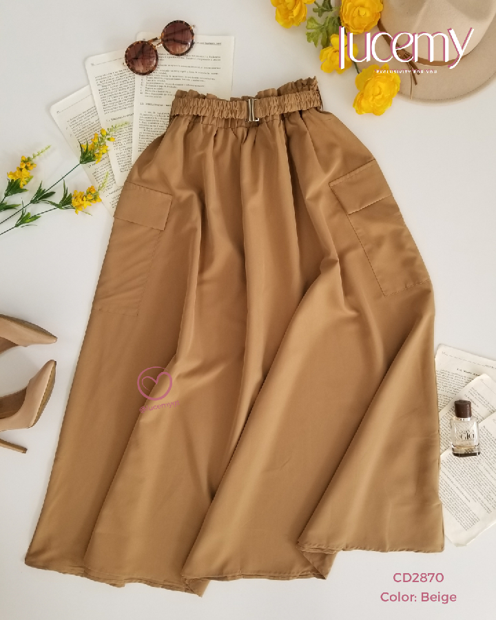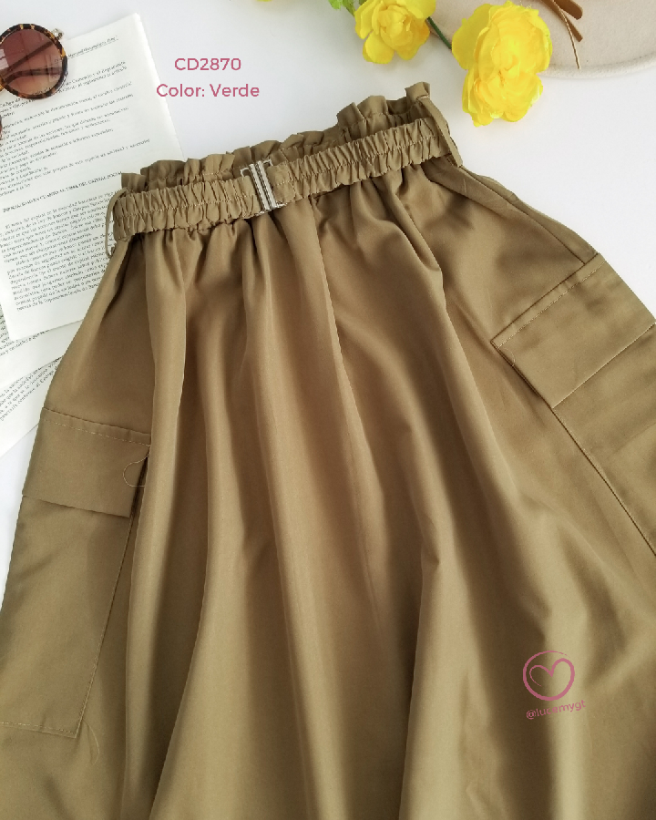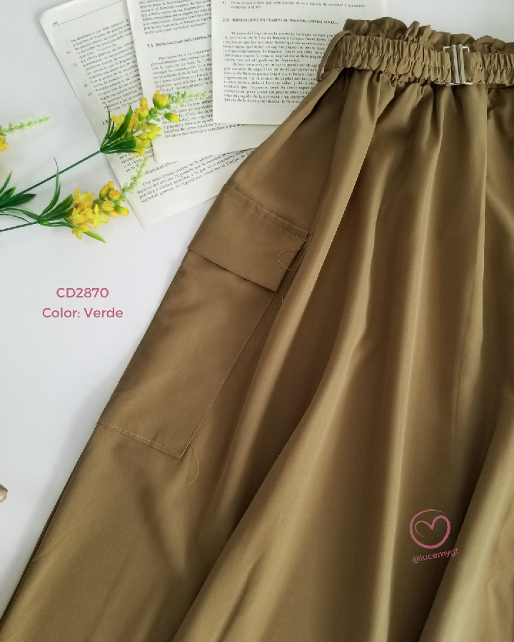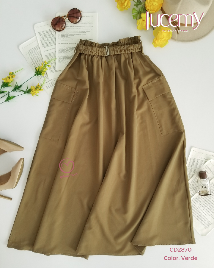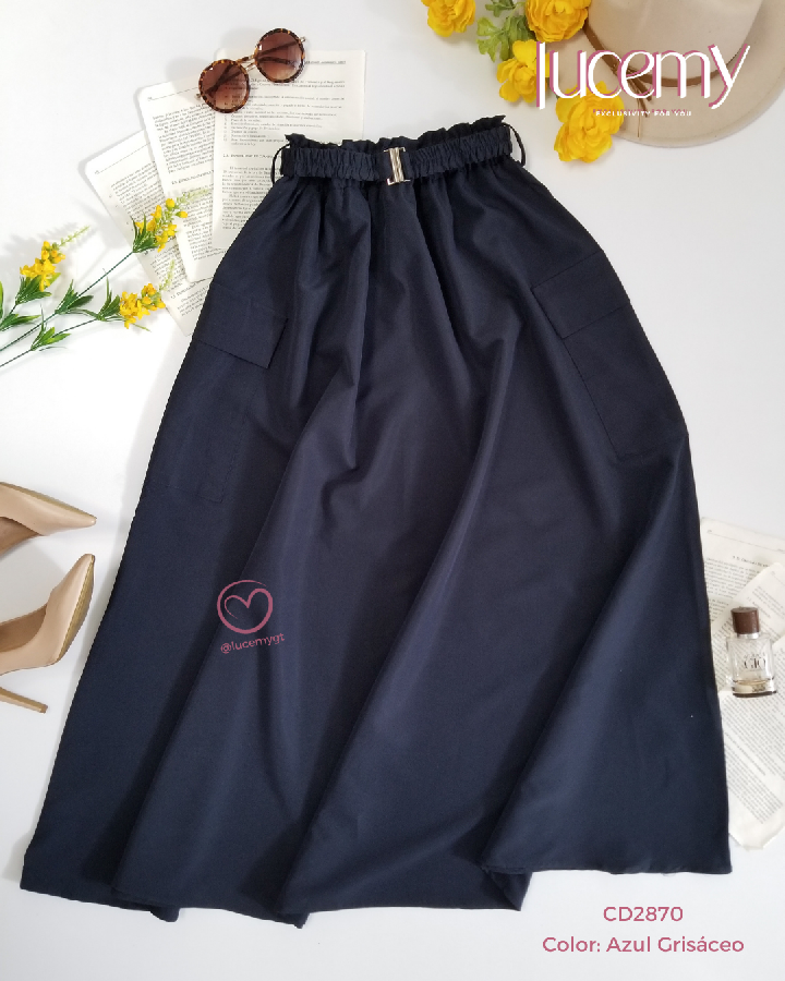 Descripción: Falda Maxi, cintura elástica, con bolsas a los lados, cincho elástico de la mimas tela.