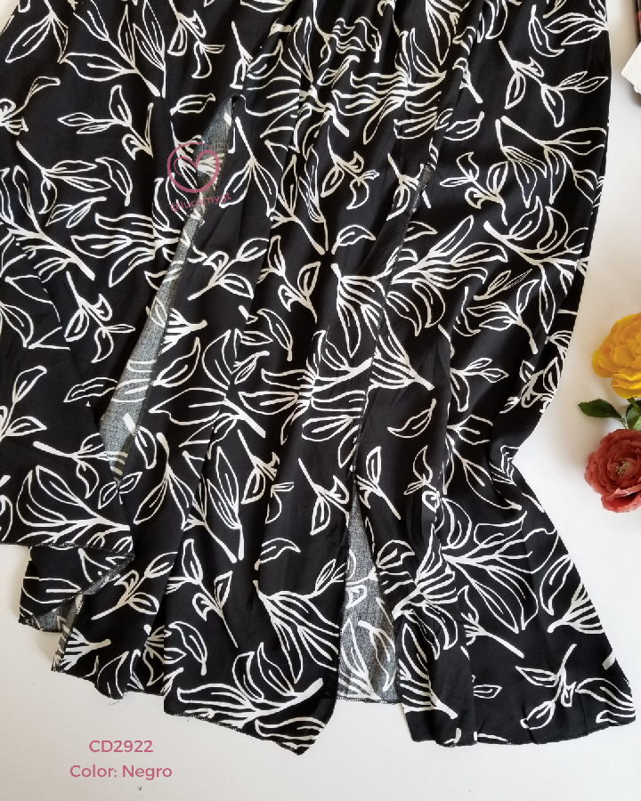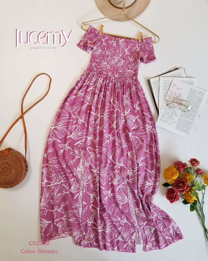 Descripción: Vestido Fruncido, floral manga corta, doble abertura en la parte de abajo