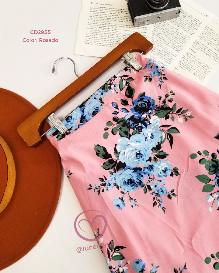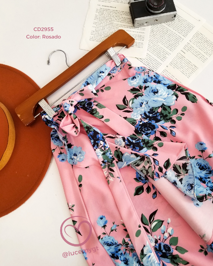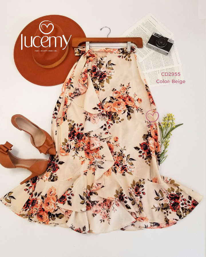 Descripción: Falda de flores con un estilo único asimétrica, traslapada.