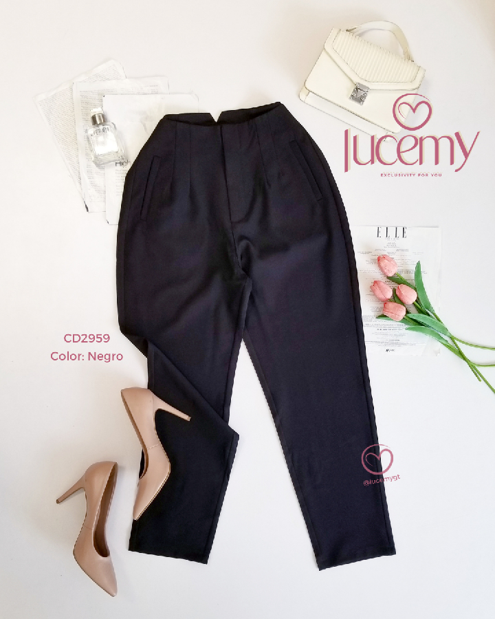 Descripción: Pantalón Pinzas, cremallera, bolsillos a los lados, muy versátil, es un básico de básicos