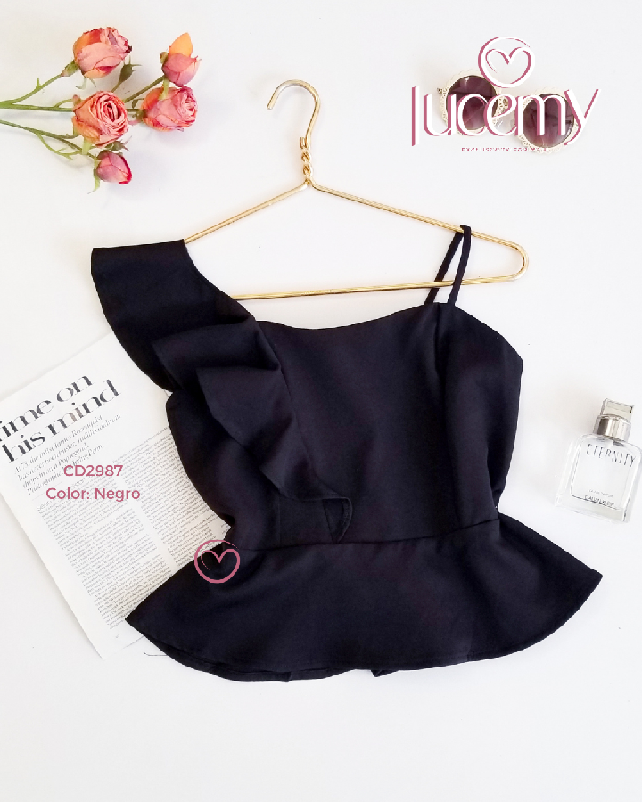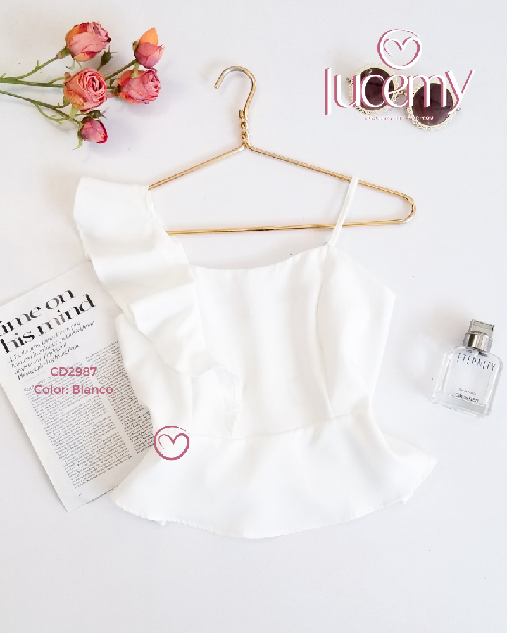 Descripción: Blusa Asimétrica casual, de tirantes ajustables, fruncido en la parte de atrás