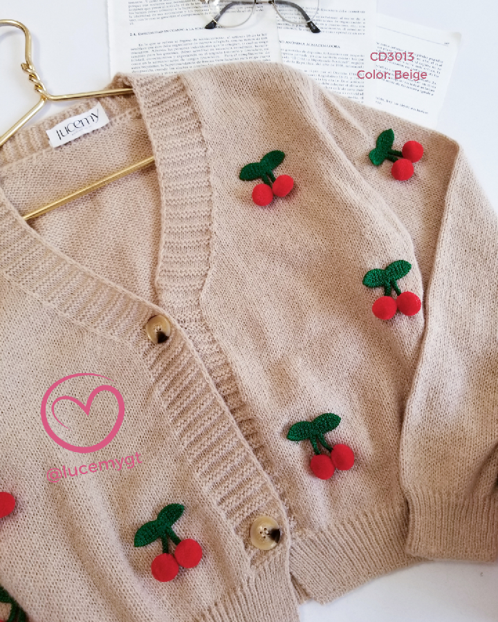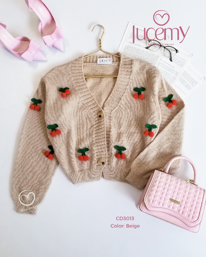 Descripción: Un suéter cereza mientras que el cuello de V y los botones en la parte delantera le dan un toque clásico y refinado. La manga larga agrega un toque de comodidad y calidez. puede agregar un toque de elegancia y sofisticación a cualquier outfit