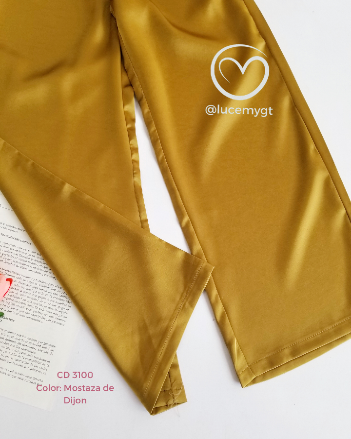 Descripción: El satín le da un toque de lujo, mientras que el elástico en la cintura y los bolsillos a los lados lo hacen práctico y cómodo. El estilo palazzo es perfecto para agregar un toque de estilo y fluidez. Promo 2xQ155.00