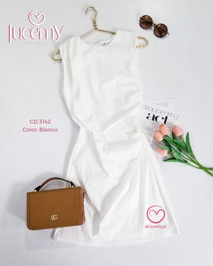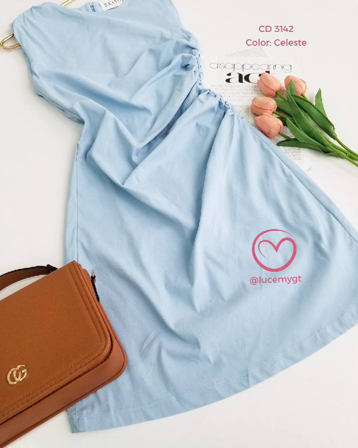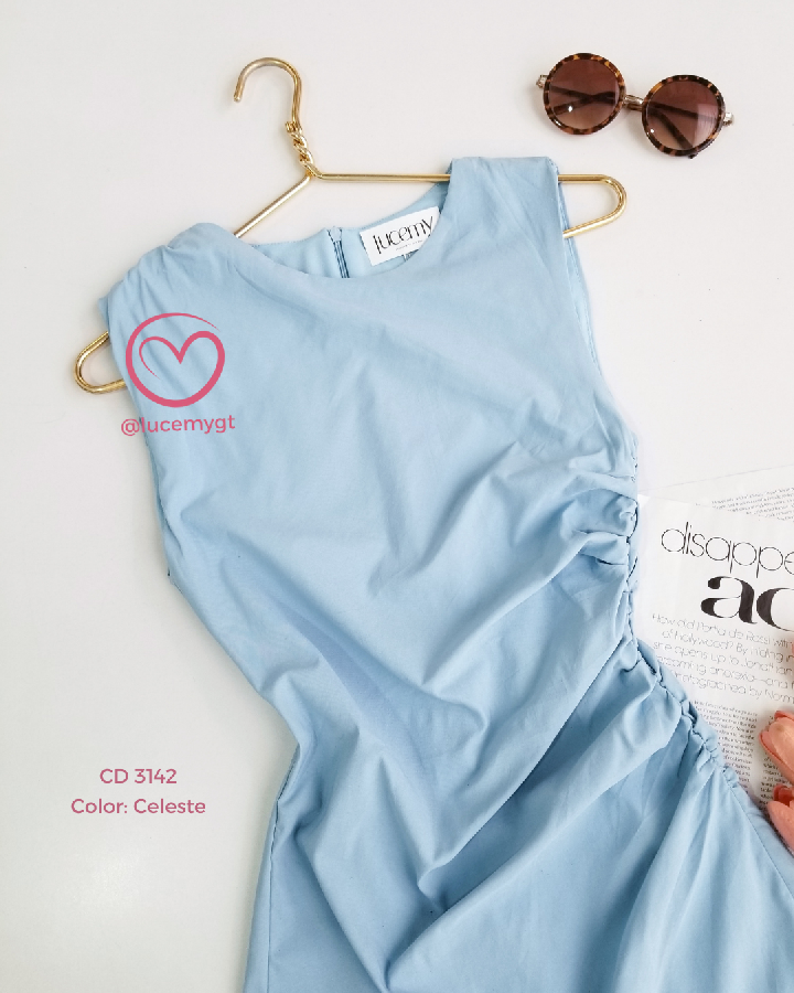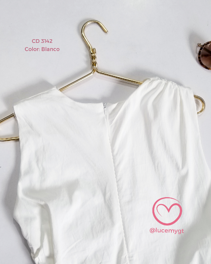 Descripción: Vestido moderno y femenino, diseñado con un elegante fruncido en un costado de la cintura que estiliza la silueta. Presenta un detalle de fruncido en una de las mangas, aportando un toque asimétrico y original. Su diseño es sin mangas, con cremallera invisible en la parte trasera que asegura un acabado limpio y sofisticado. Además, cuenta con forro interno en la parte inferior, garantizando comodi