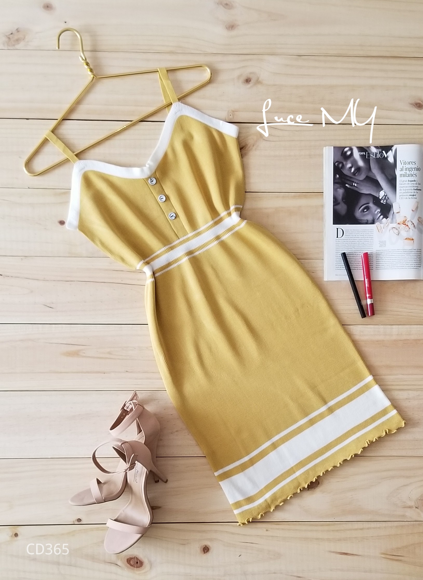 Descripción: Vestido Spaghetti, tirantes no ajustables,tiene botones al frente material 65% algodón y 35% poliéster.