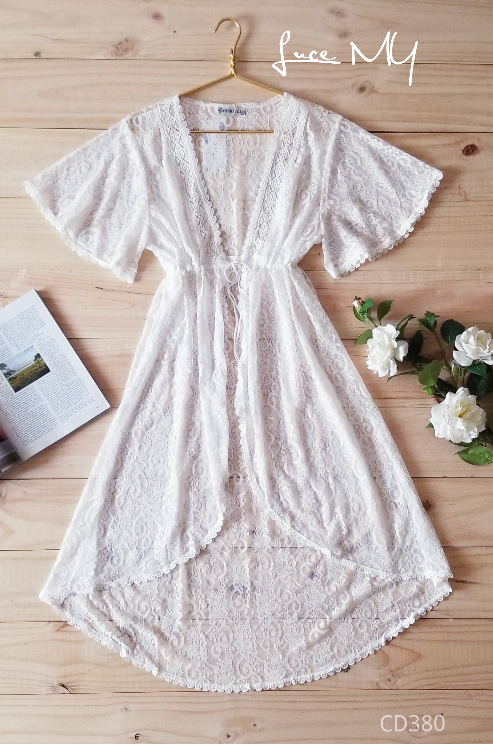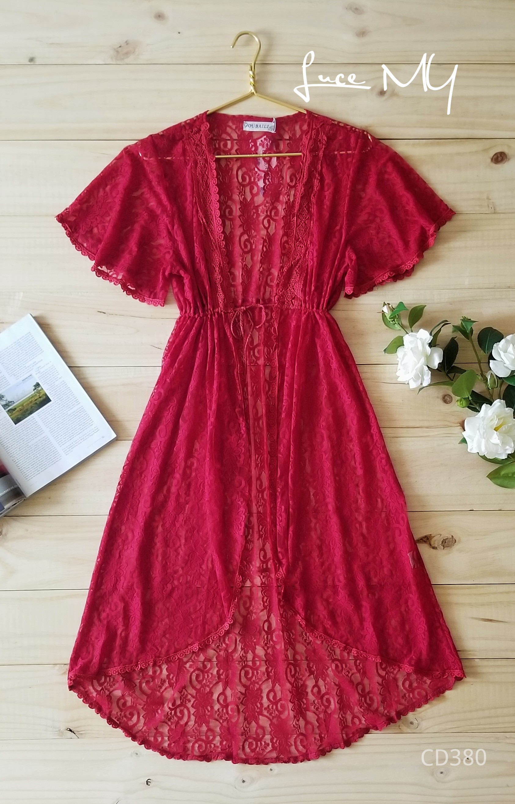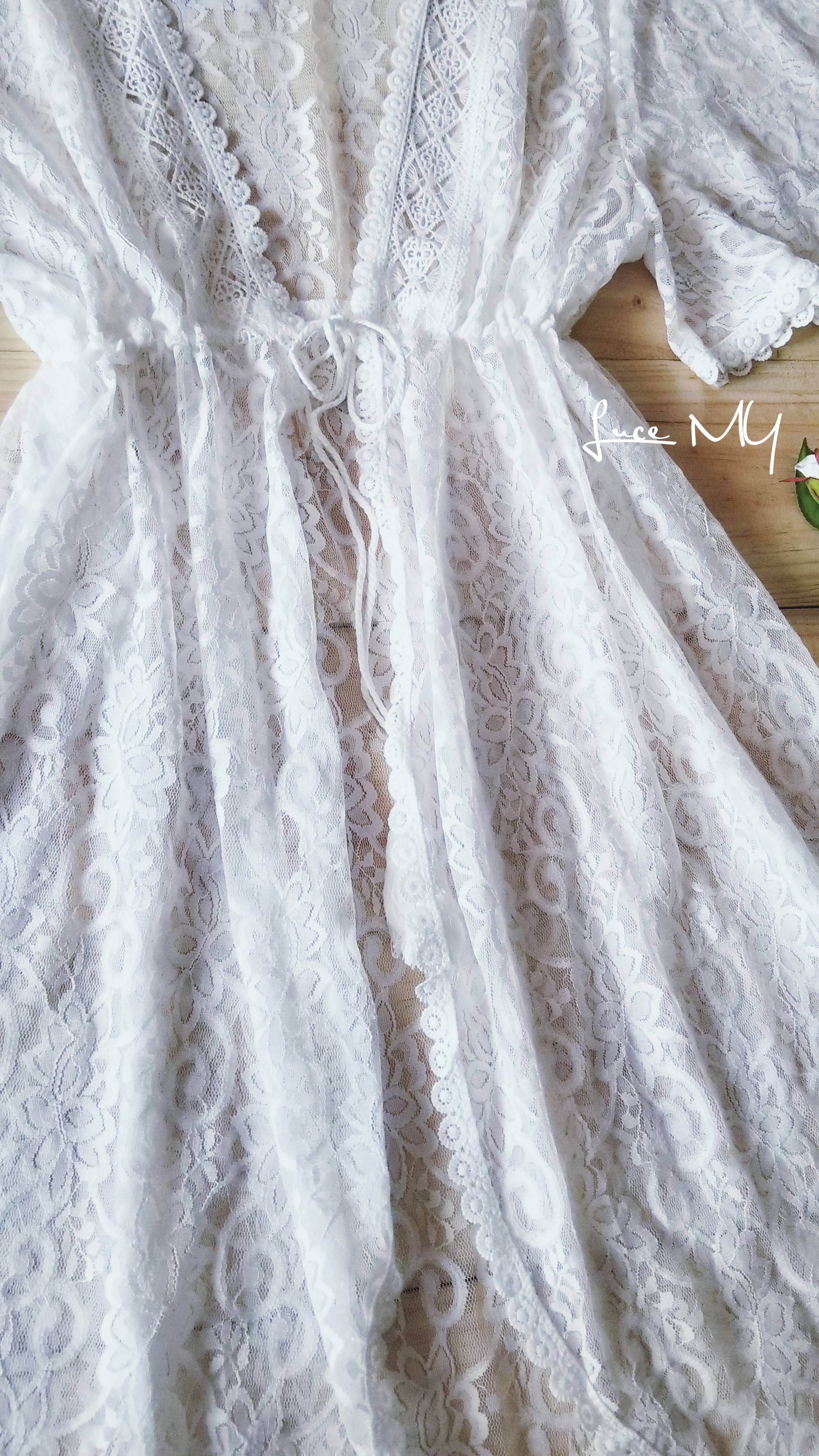 Descripción: Kimono de encaje,es ajustable en la cintura, manga corta material 65% cotton y 35% poliéster. Promoción Si llevas dos kimonos por Q185.00